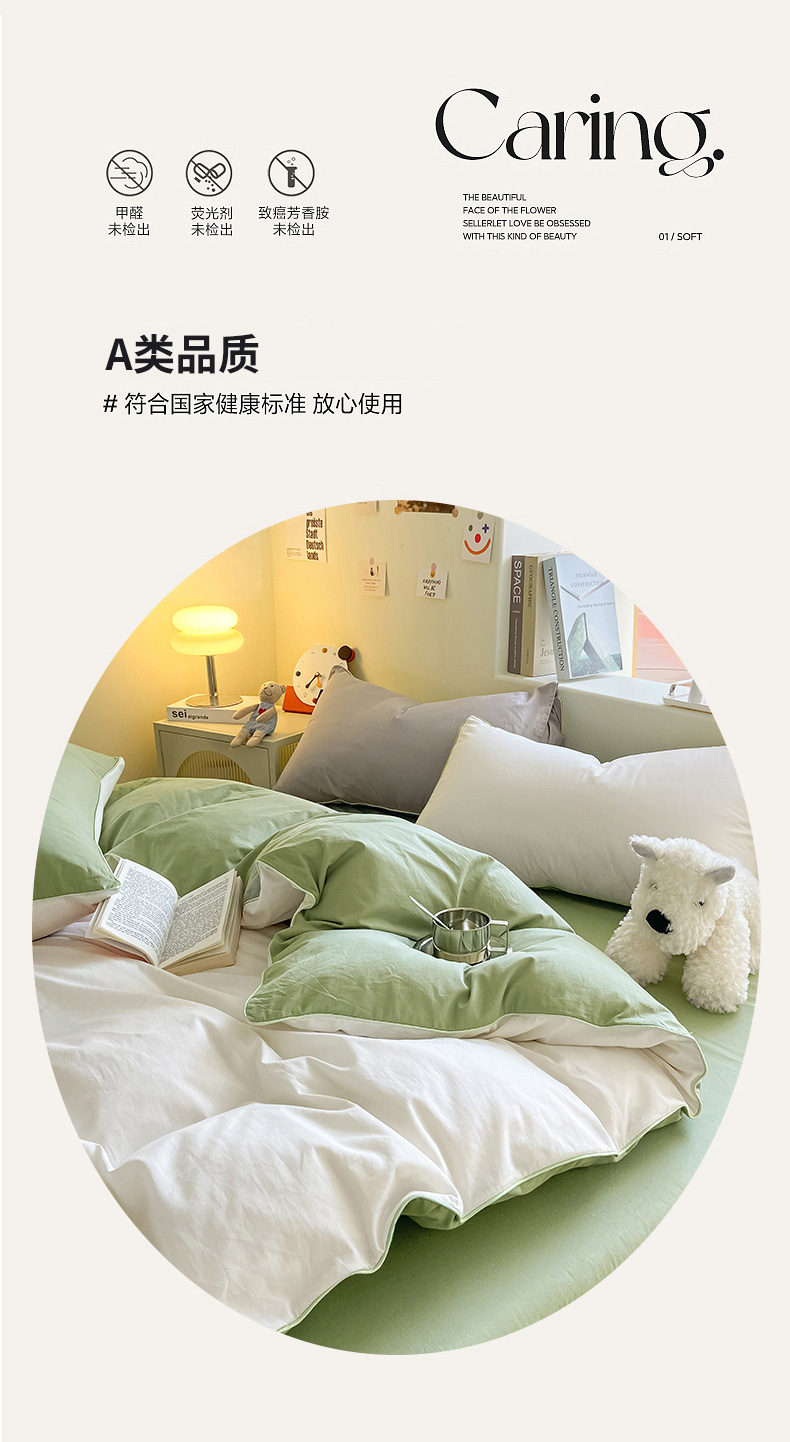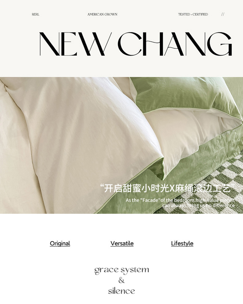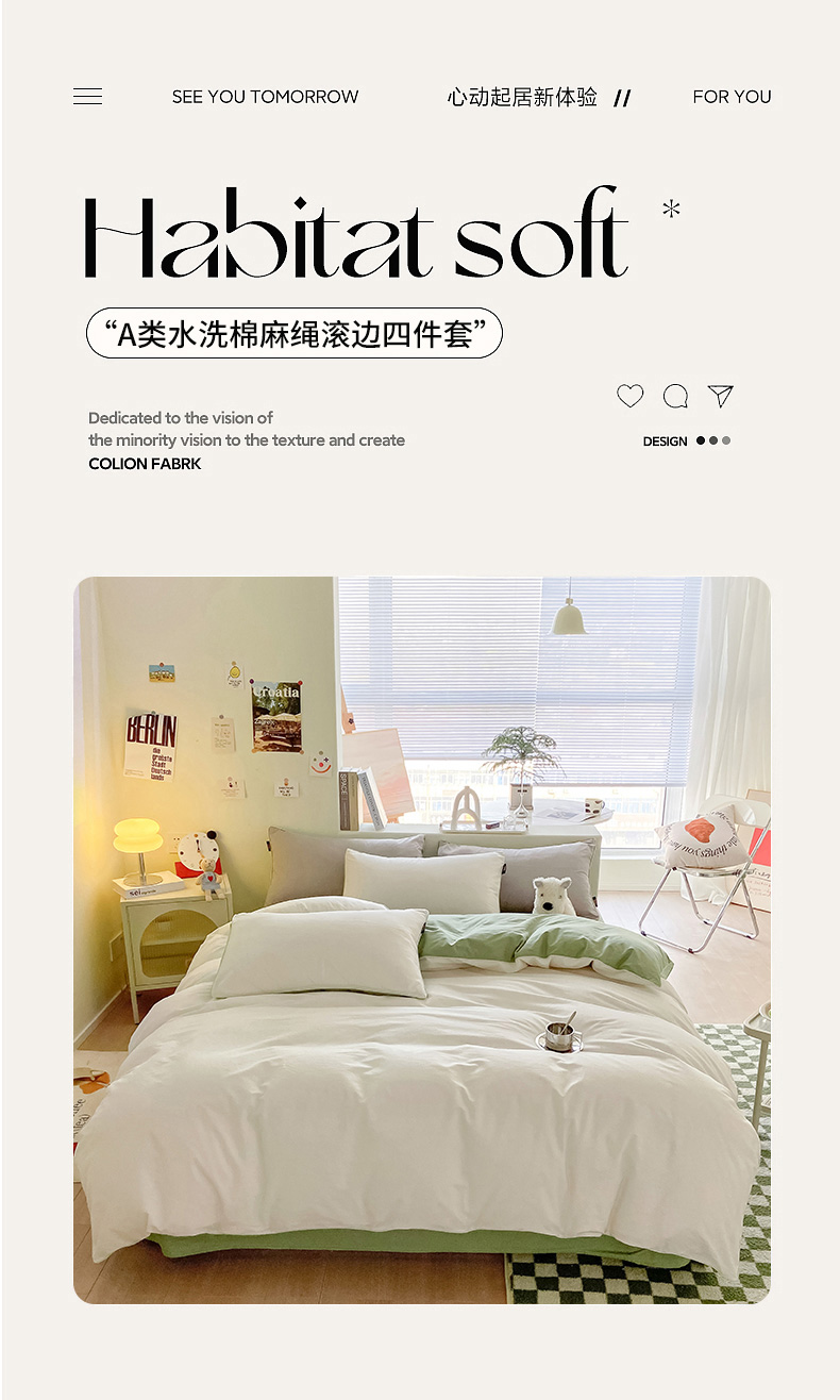 当前位置: 91家纺网 > 商品网购 > 床品套件 > 四件套 > 水洗棉四件套 > 眠帛家居 2023新款A类芝士系列水洗棉麻绳滚边四件套 芝士奶昔白果绿