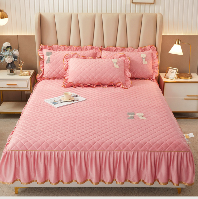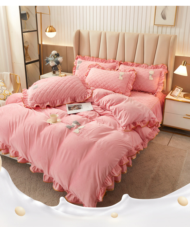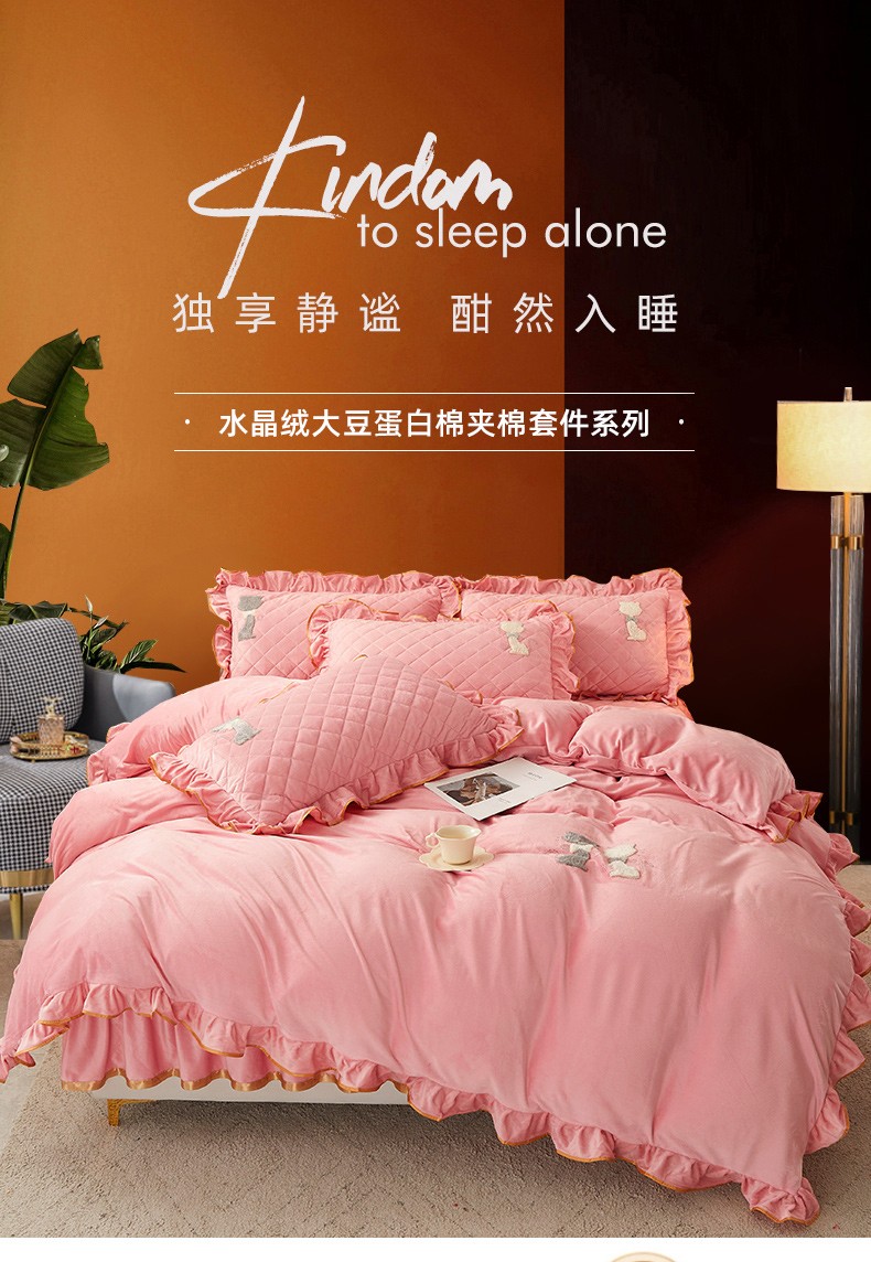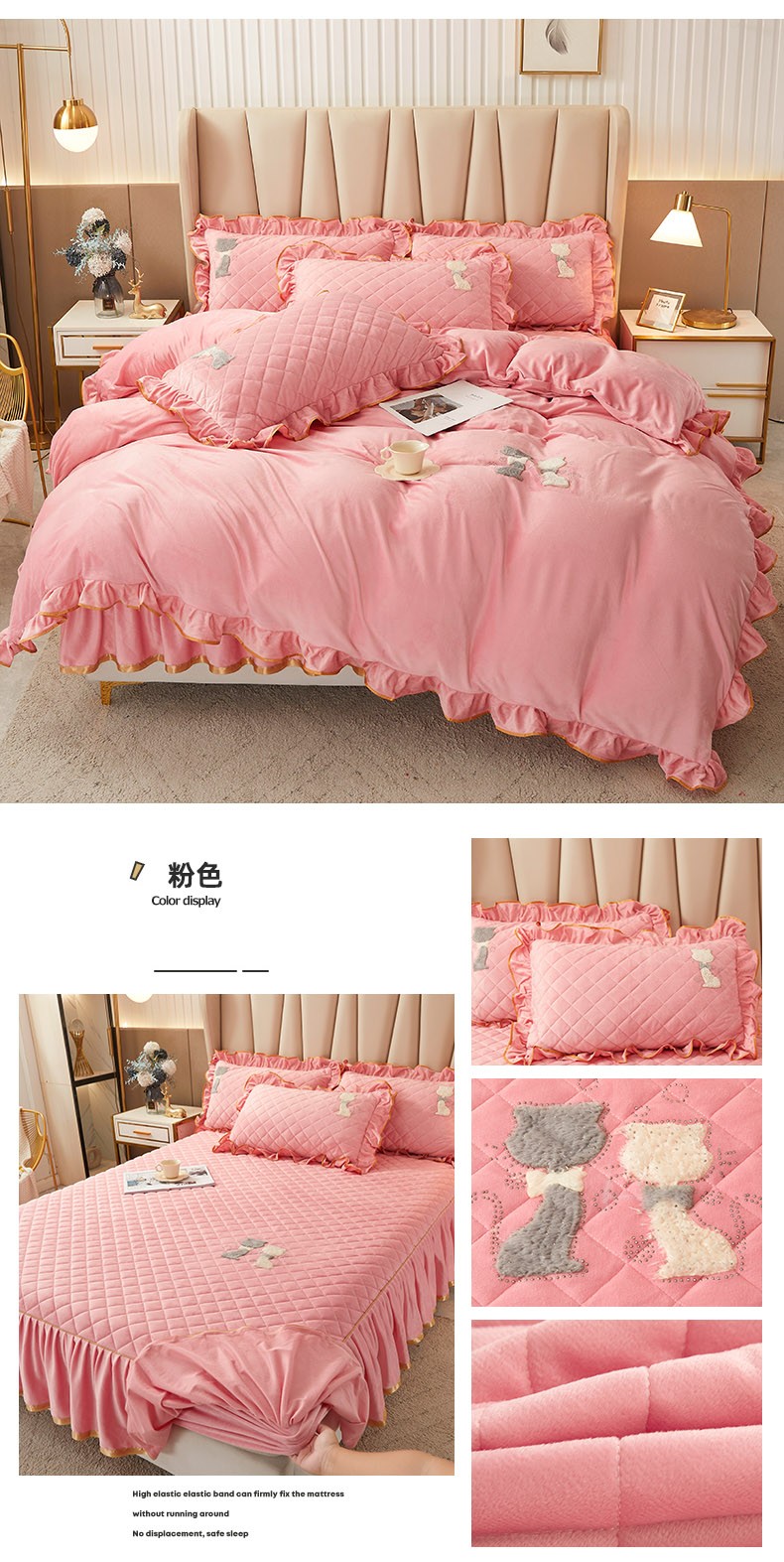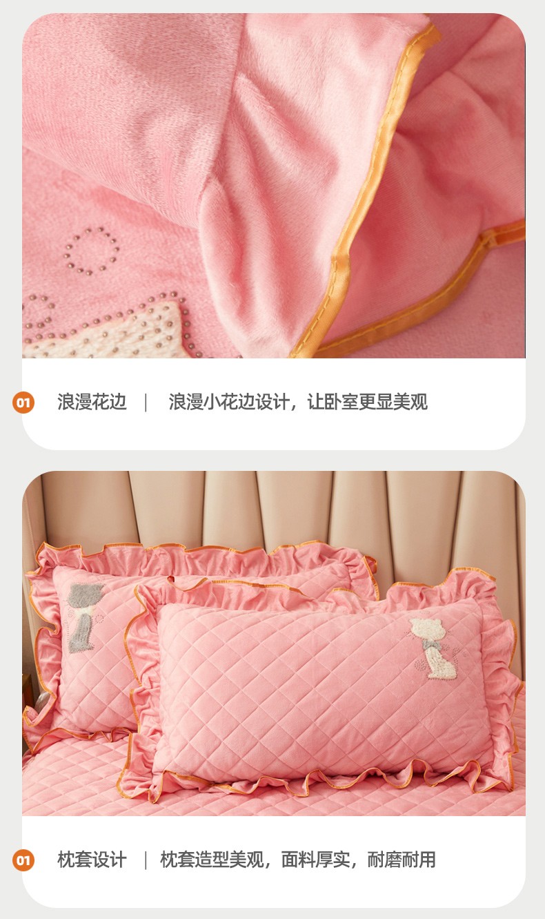 当前位置: 91家纺网 > 商品网购 > 床品套件 > 四件套 > 水晶绒四件套 > 恋尚 2023新款水晶绒夹棉床裙床笠四件套-KT猫系列 粉色