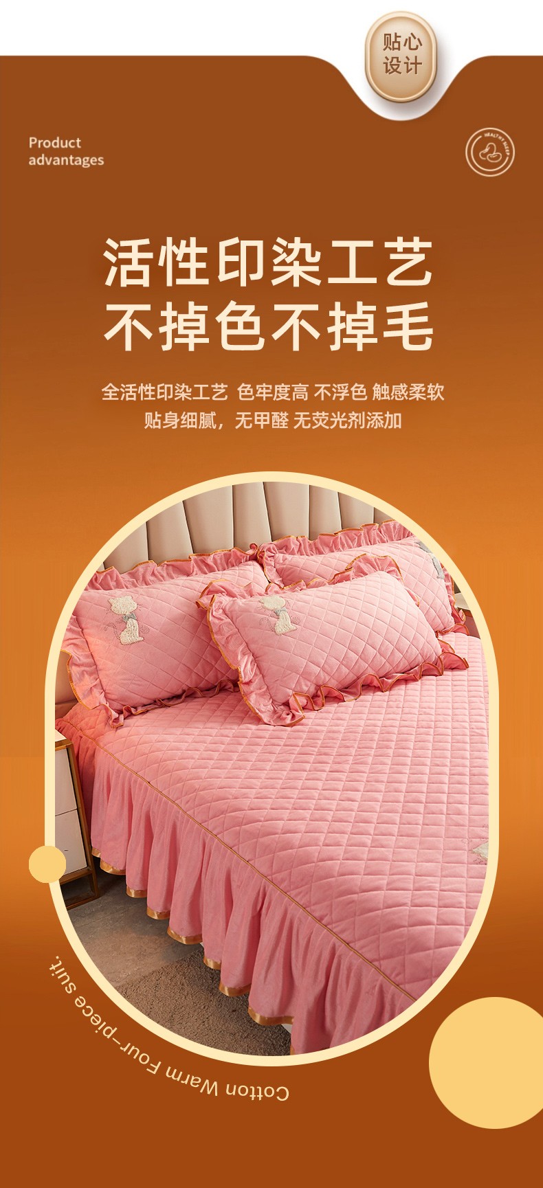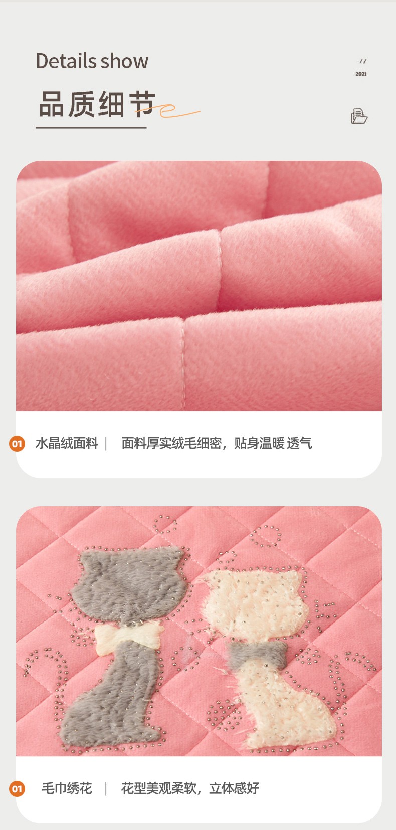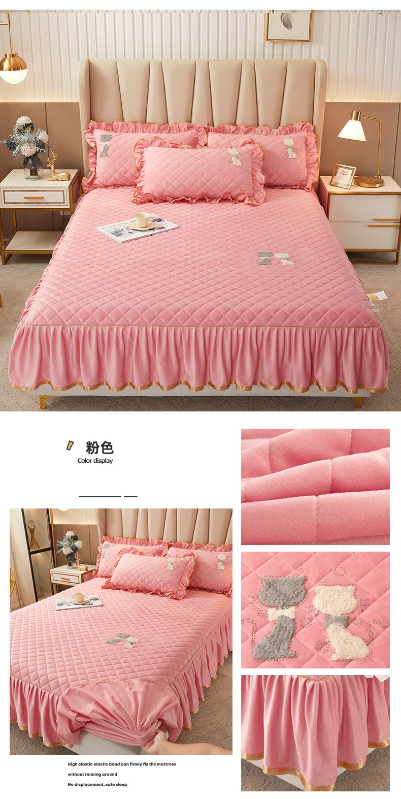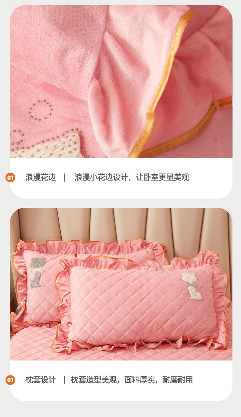 • 91家纺网 家纺一手货源 找家纺 恋尚 2023新款水晶绒夹棉床裙床笠四件套-KT猫系列 粉色