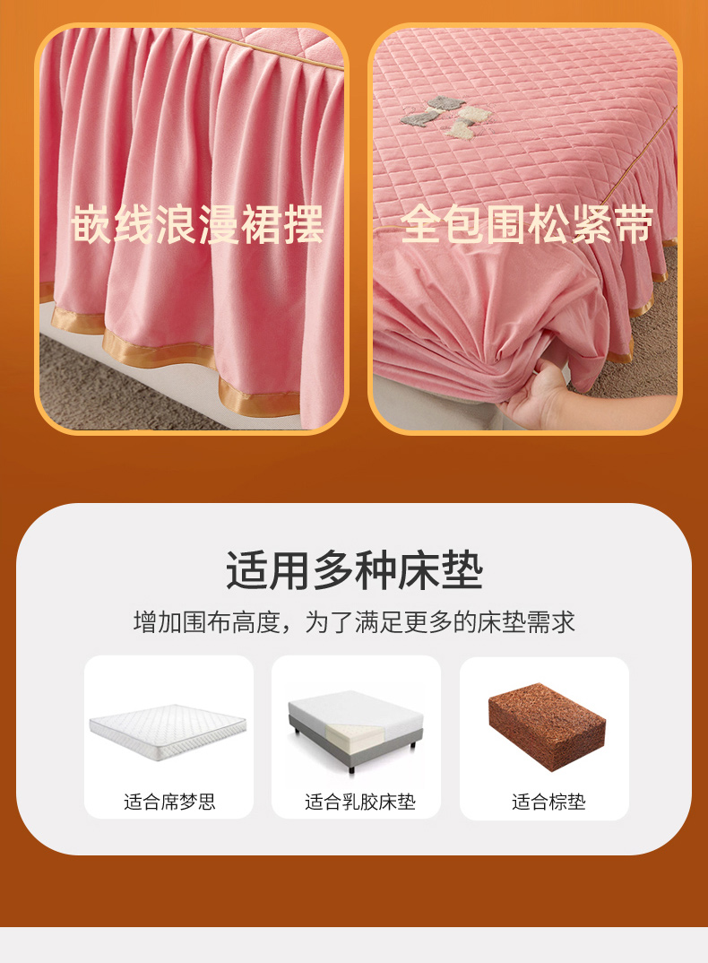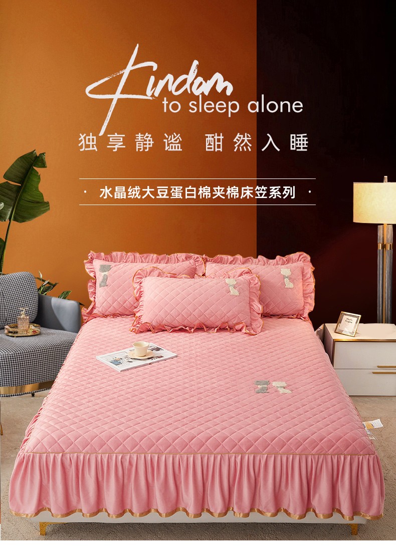 (总)恋尚 2025新款加厚牛奶绒保暖床笠式床裙单品床裙床裙单件-莫奈花园(床裙控价130起),莫奈花园-蜜桃粉,莫奈花园-奶油白,莫奈花园-清新粉,莫奈花园-香芋紫,莫奈花园-椰蓉灰