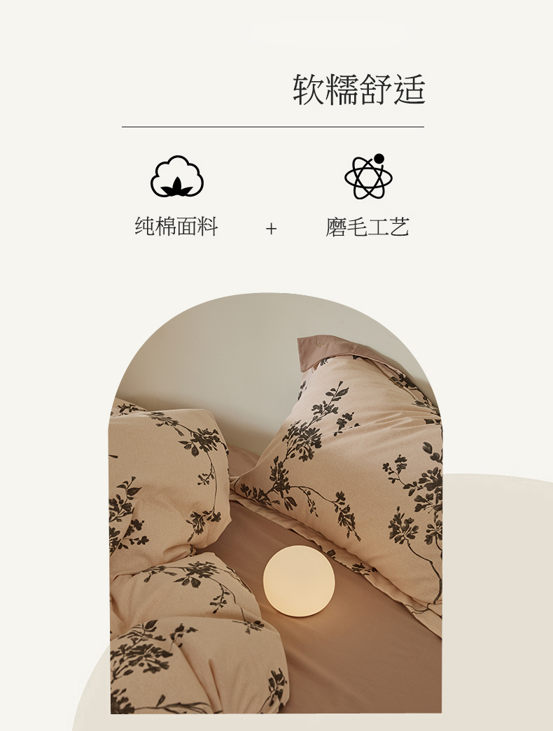 商品名称:柠馨 2023新款全棉3221磨毛印花四件套 墨兮