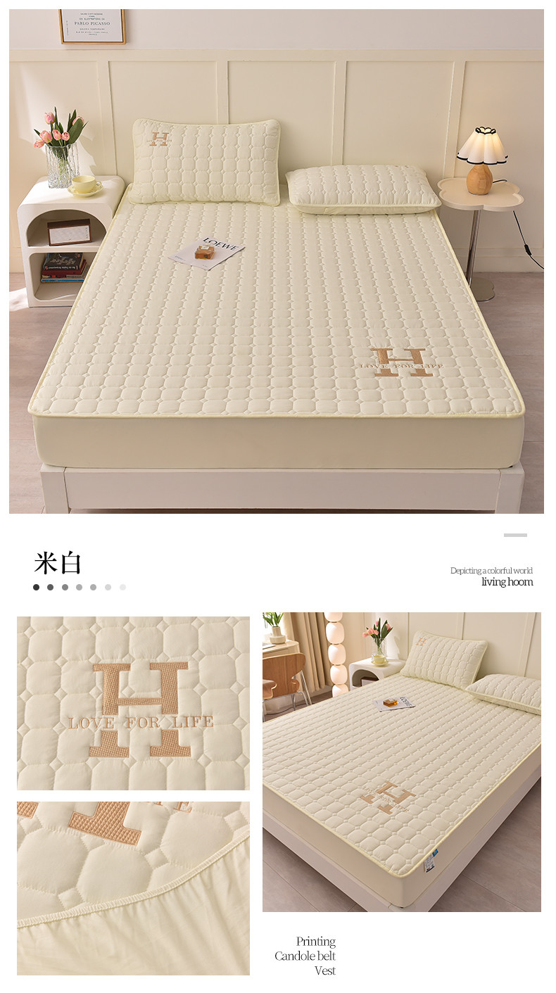 富威堡家纺 2023新款原棉H标刺绣棉花床笠 刺绣-米白