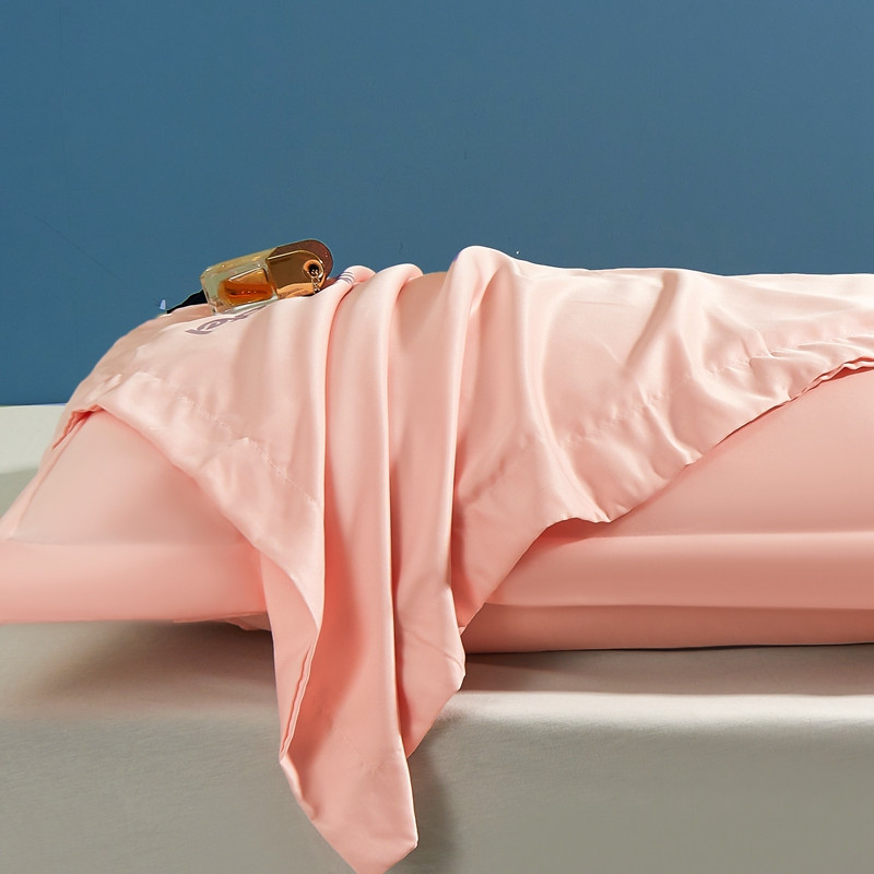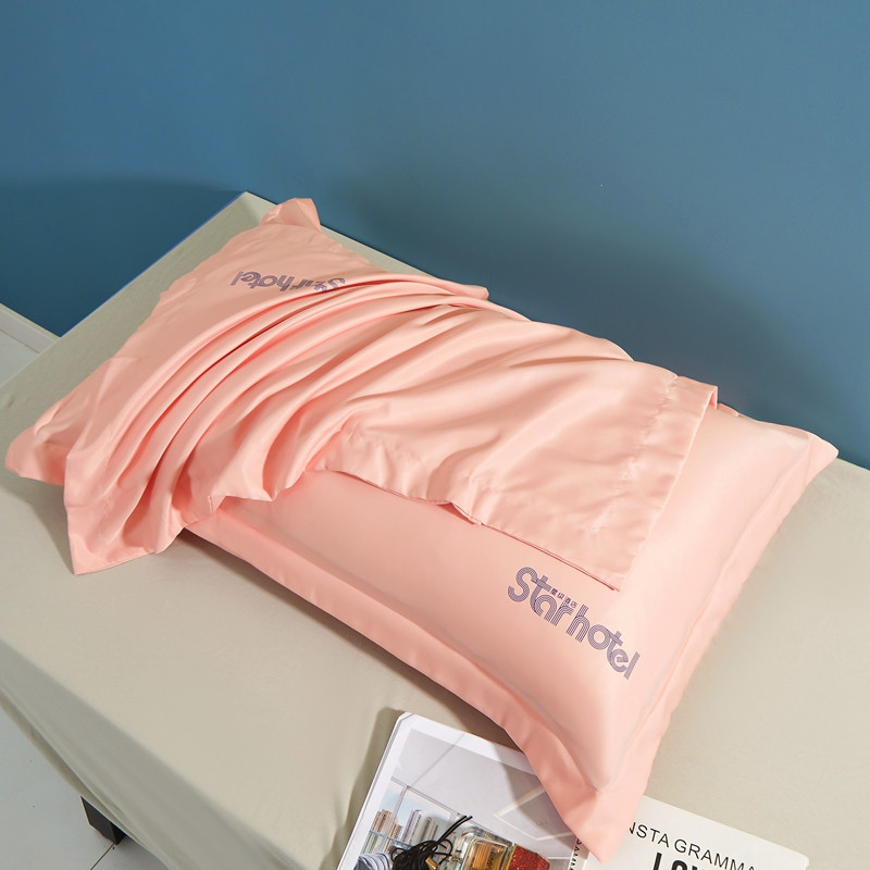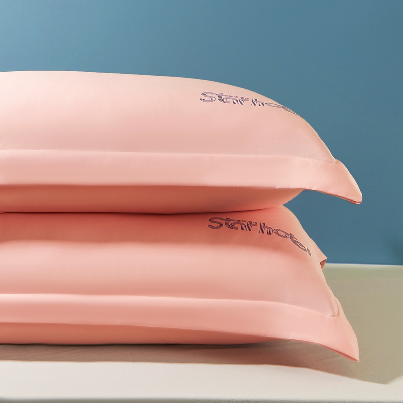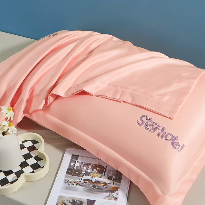 蓝冰家纺 2023新款水洗真丝印花宽边枕套 粉