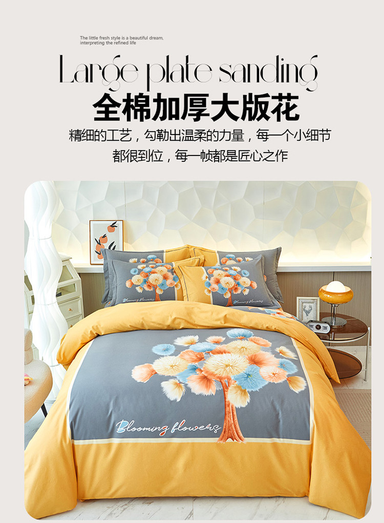 雲归梦 2023年新款加厚全棉生态磨毛大版四件套 飞舞花絮