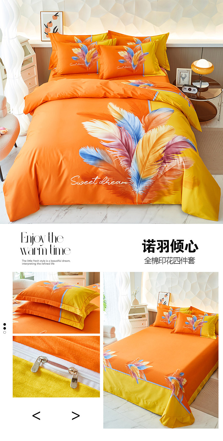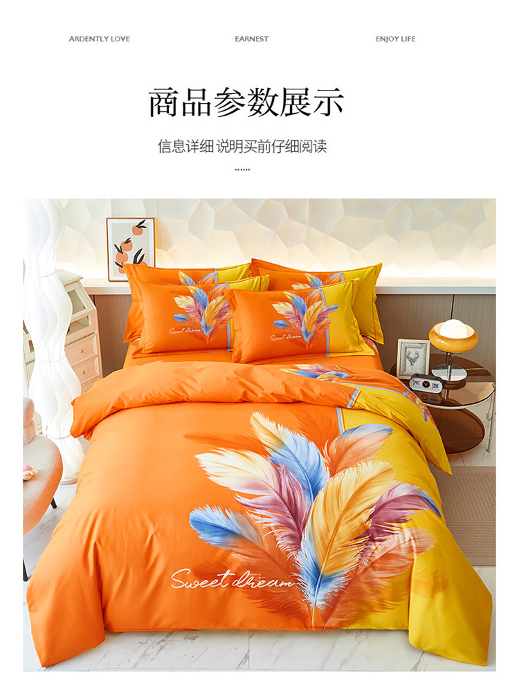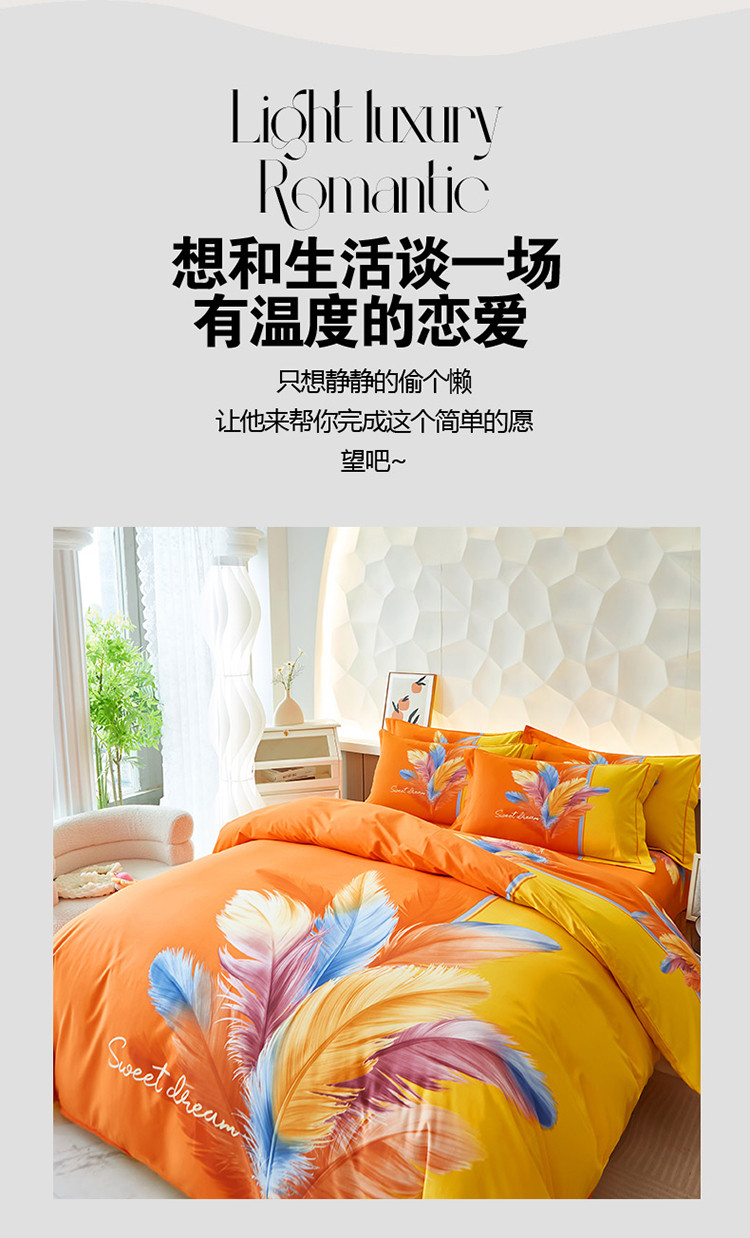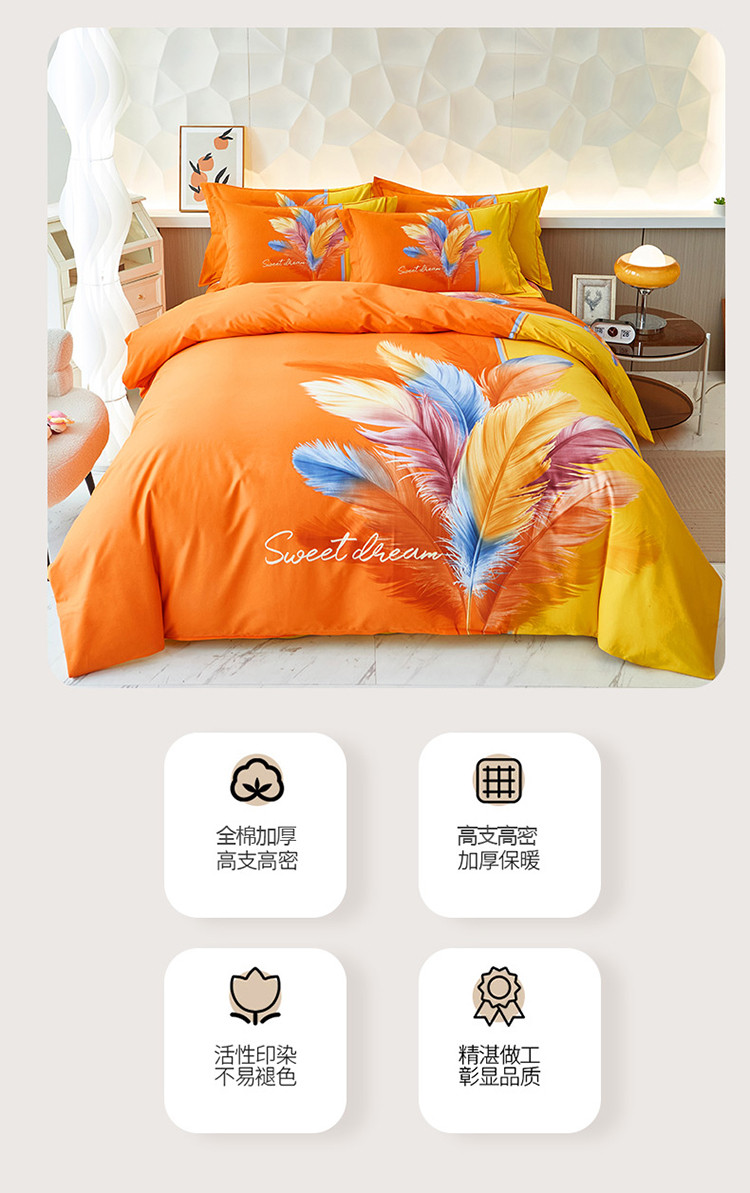 (总)雲归梦 2021新款全棉生态磨毛刺绣四件套,慕思-橙色,慕思-粉紫,慕思-灰,慕思-米黄,慕思-青绿,慕思-天蓝