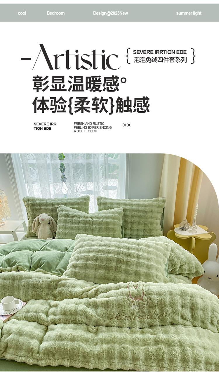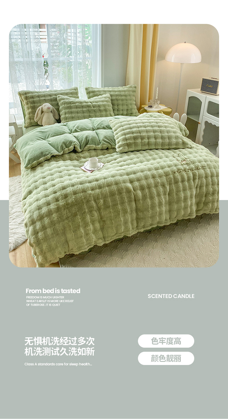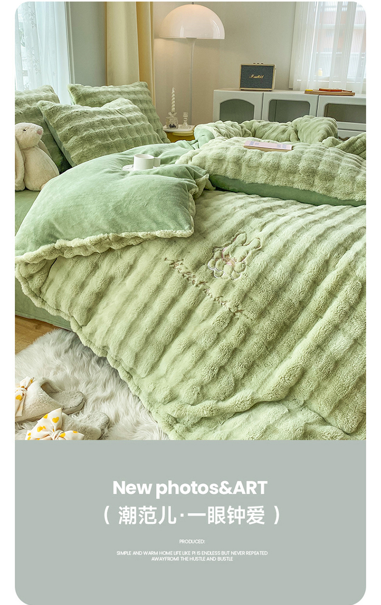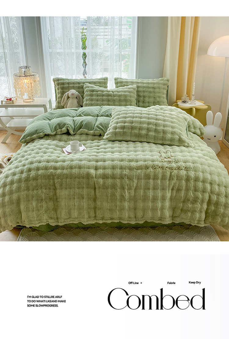商品名称:2025新款小米兔泡泡兔绒保暖四件套 米兔绿