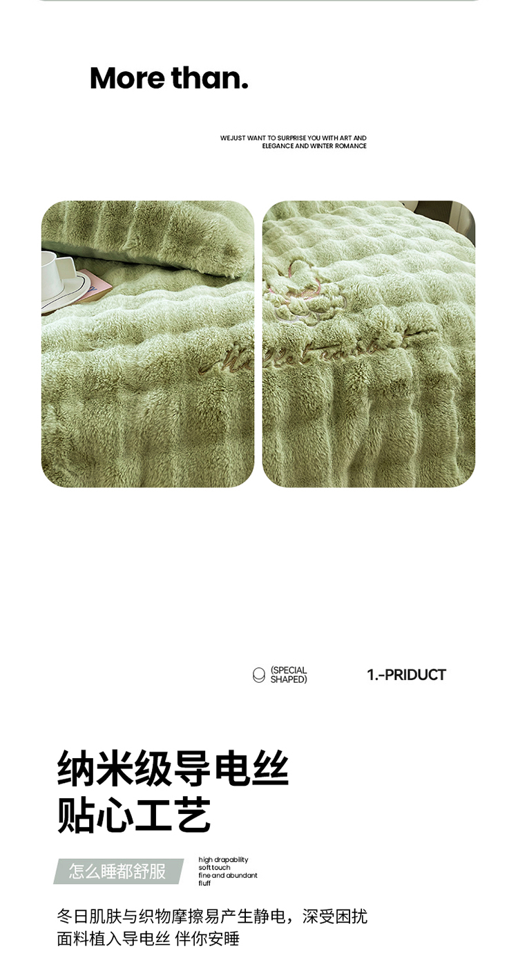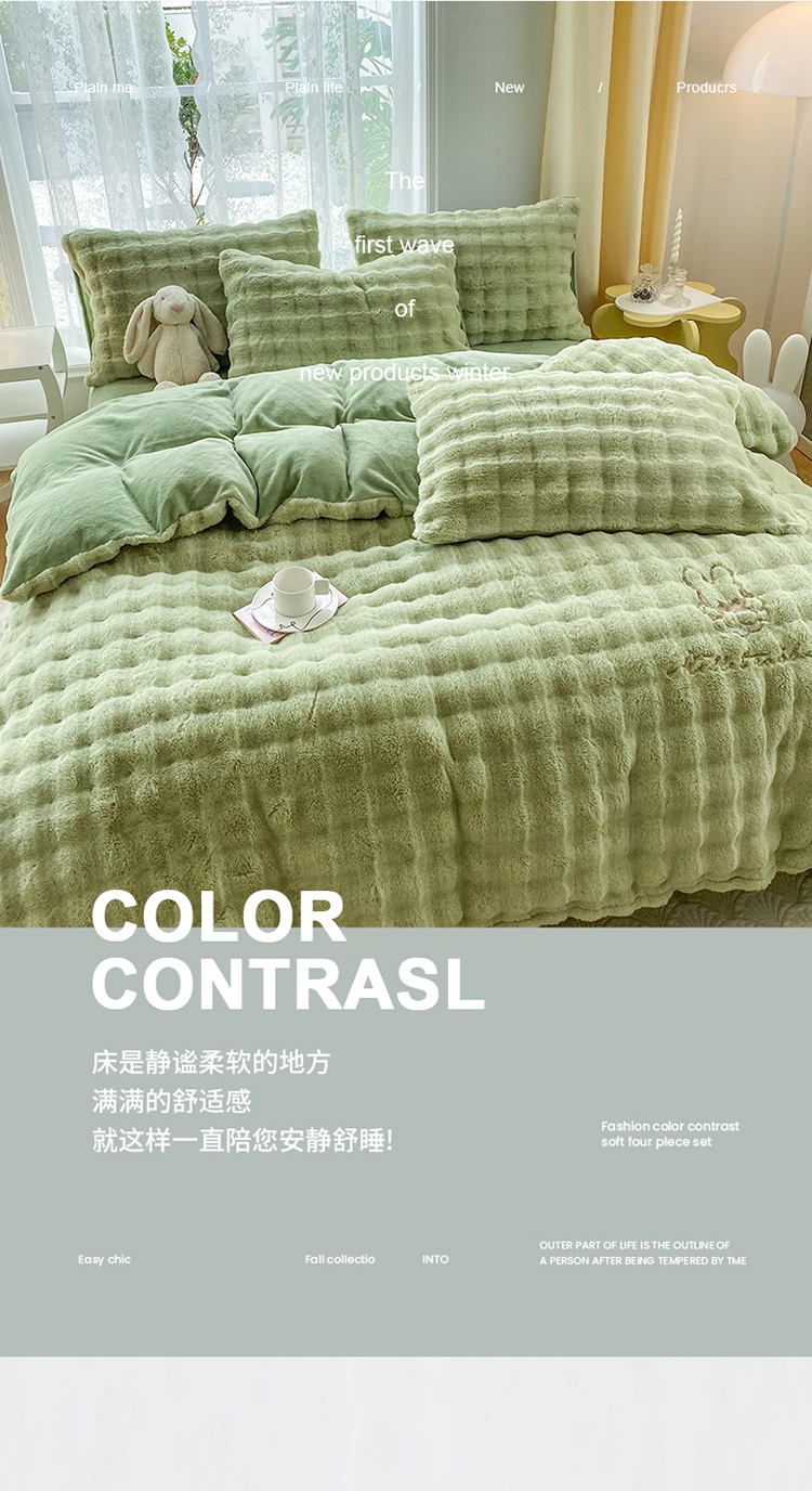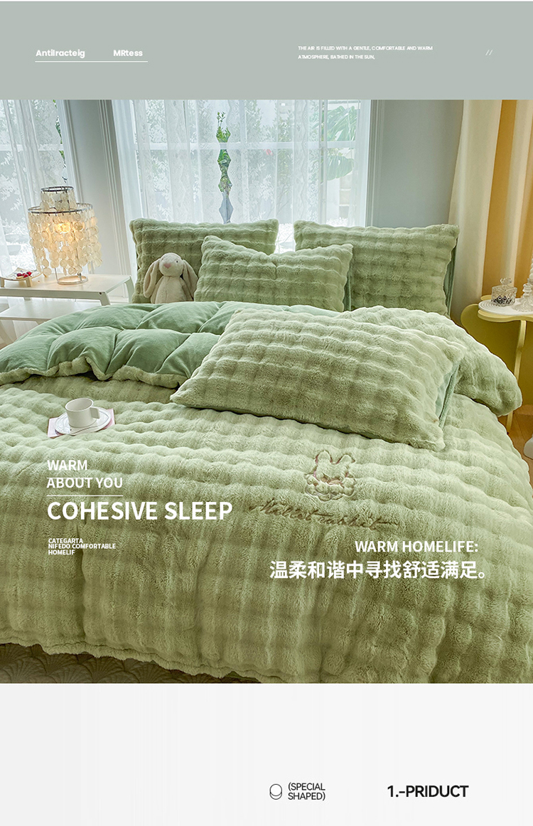 商品名称:2025新款小米兔泡泡兔绒保暖四件套 米兔绿