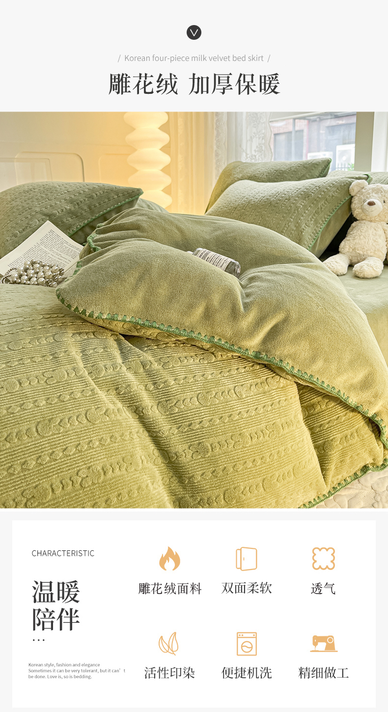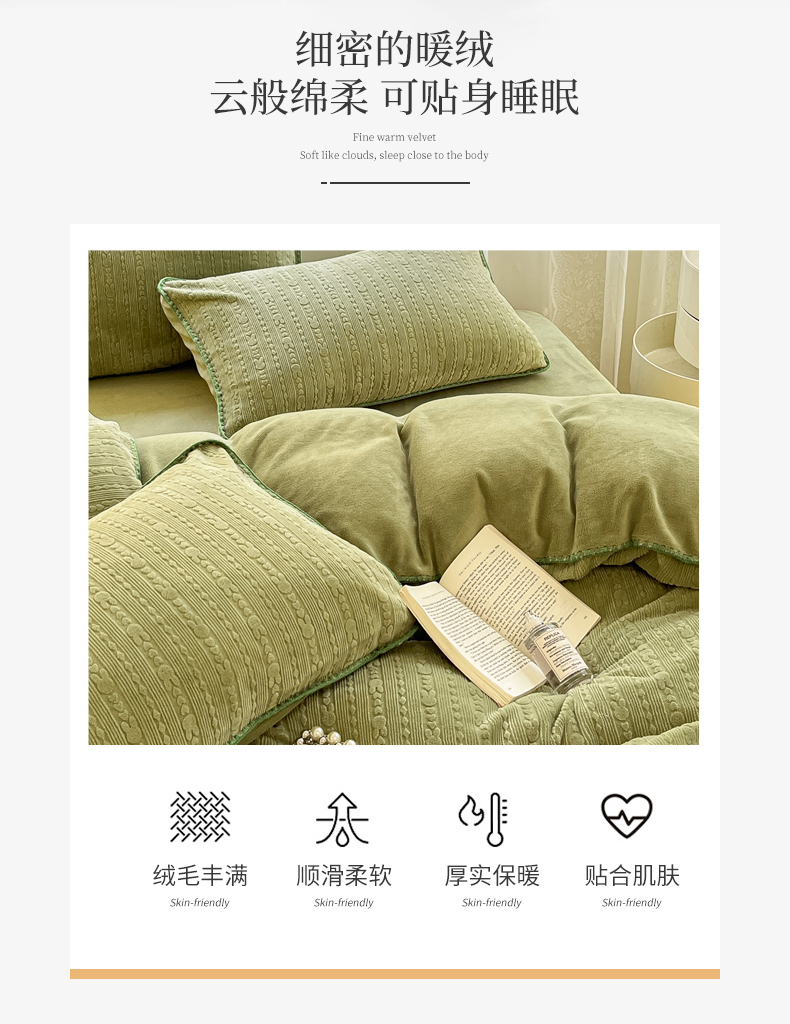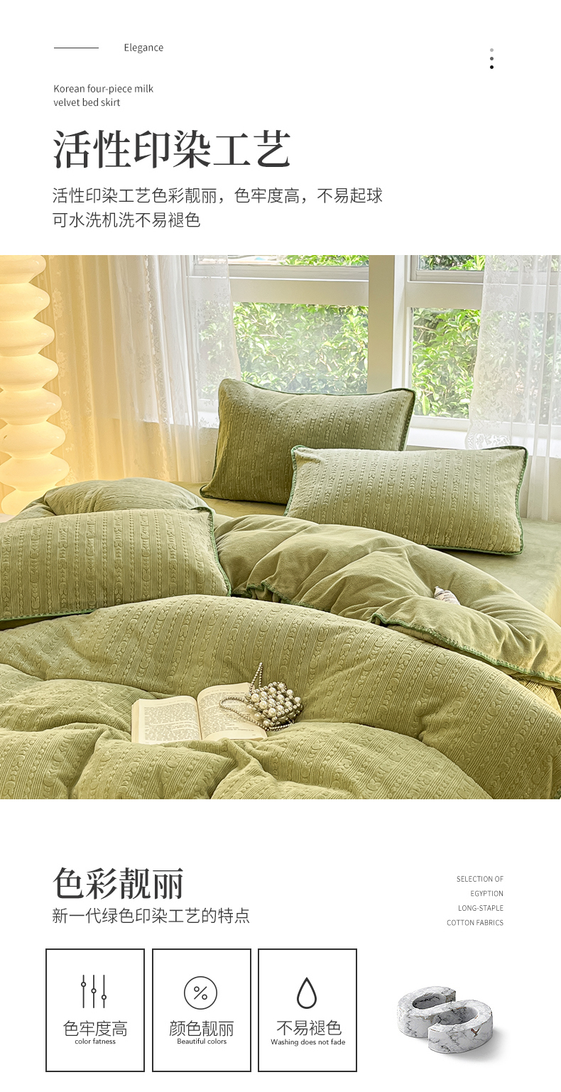 当前位置: 91家纺网 > 商品网购 > 床品套件 > 四件套 > 牛奶绒四件套 > 金爱家 2023新款半消光牛奶绒立体雕花牛奶绒四件套 迷你兔-绿果