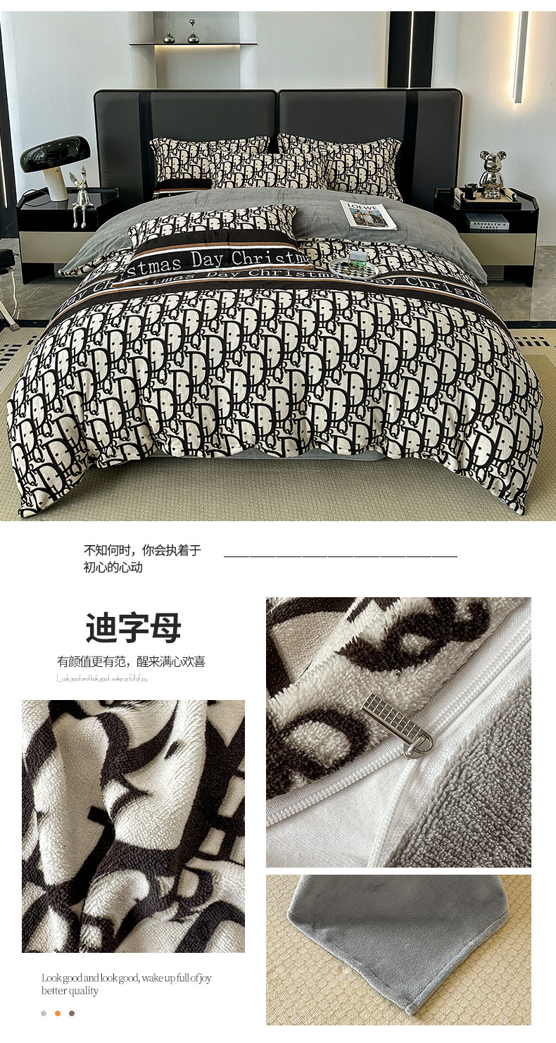 耀达 2024新款轻奢加厚牛奶绒四件套 迪字母