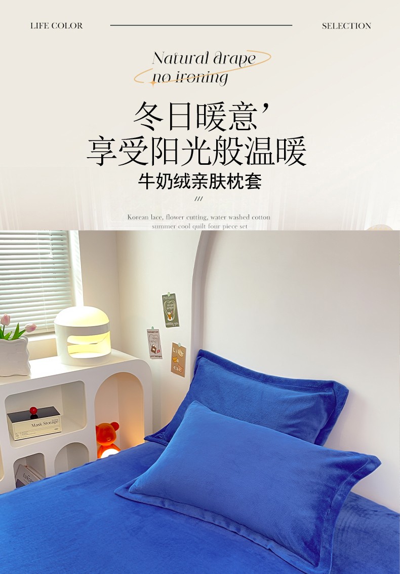 商品名称:新款冬季牛奶绒枕套加厚加绒亲肤柔软枕芯套 深海蓝