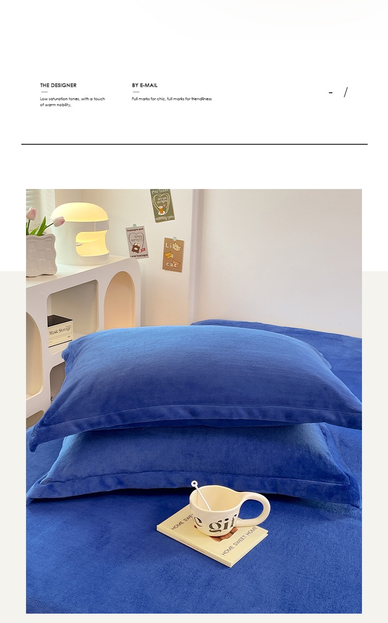 新款冬季牛奶绒枕套加厚加绒亲肤柔软枕芯套 深海蓝