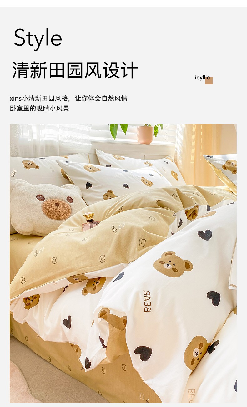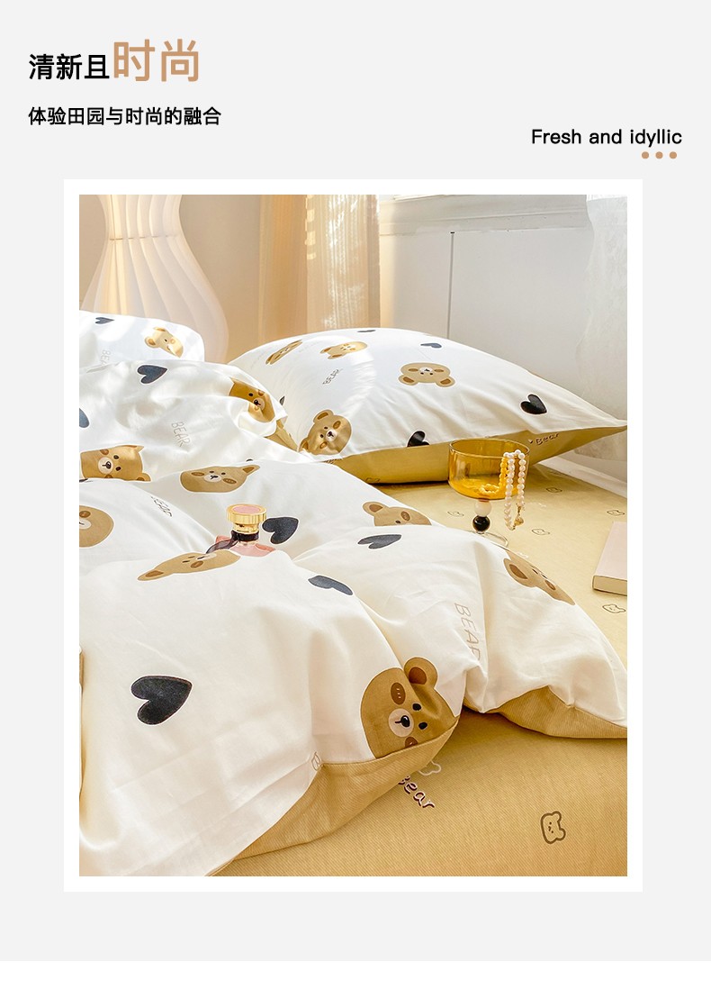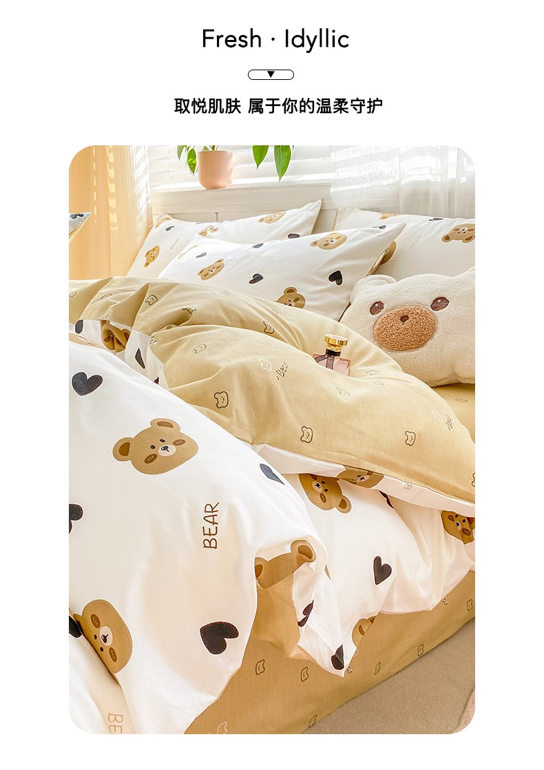 当前位置: 91家纺网 > 商品网购 > 床品套件 > 四件套 > 全棉普通四件套 > 黑马家居 2025新款全棉喷气13070印花四件套 小熊比尔
