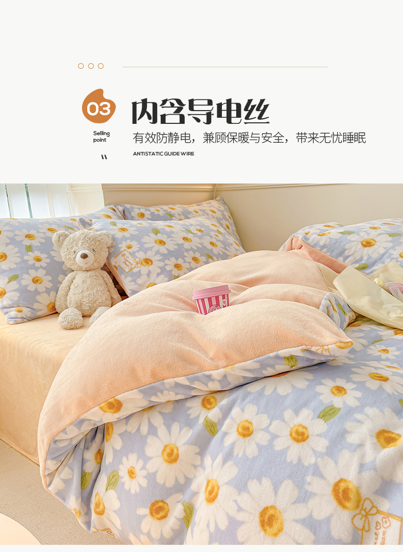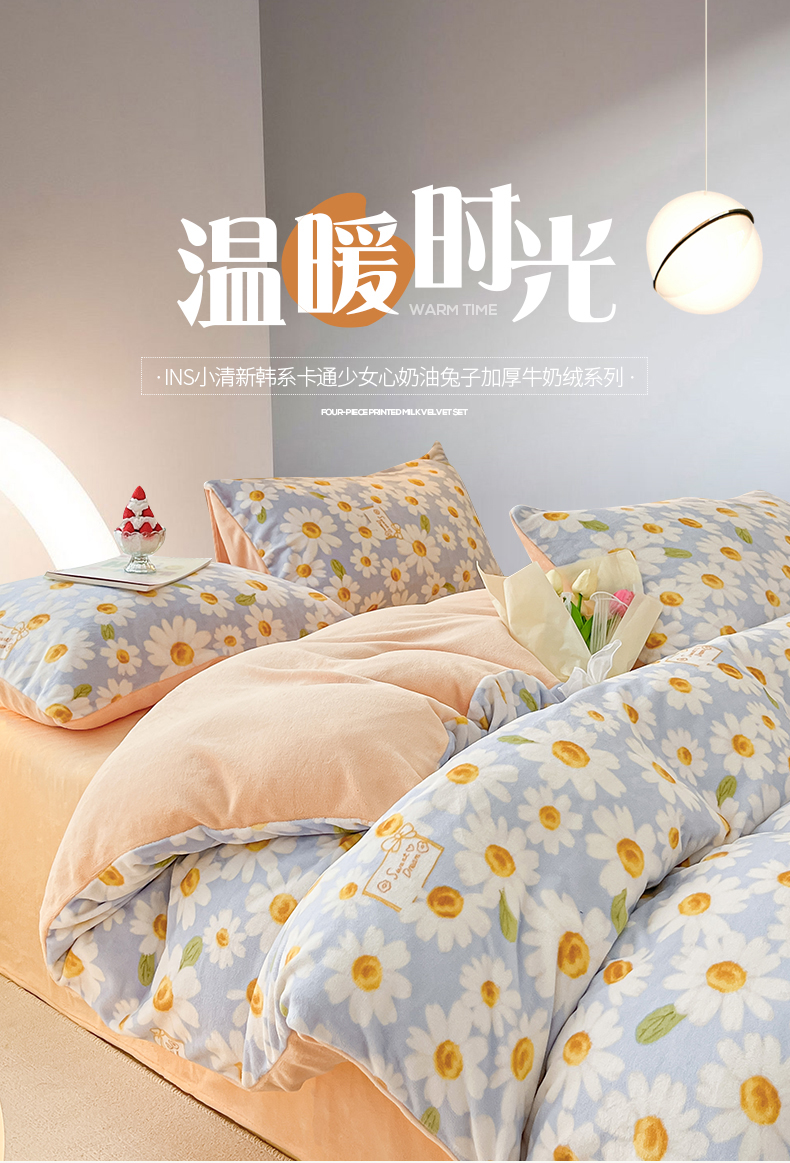商品名称:金爱家 2023新款ins小清新韩系卡通少女心奶油兔子加厚牛奶绒系列四件套 绒-甜甜的梦