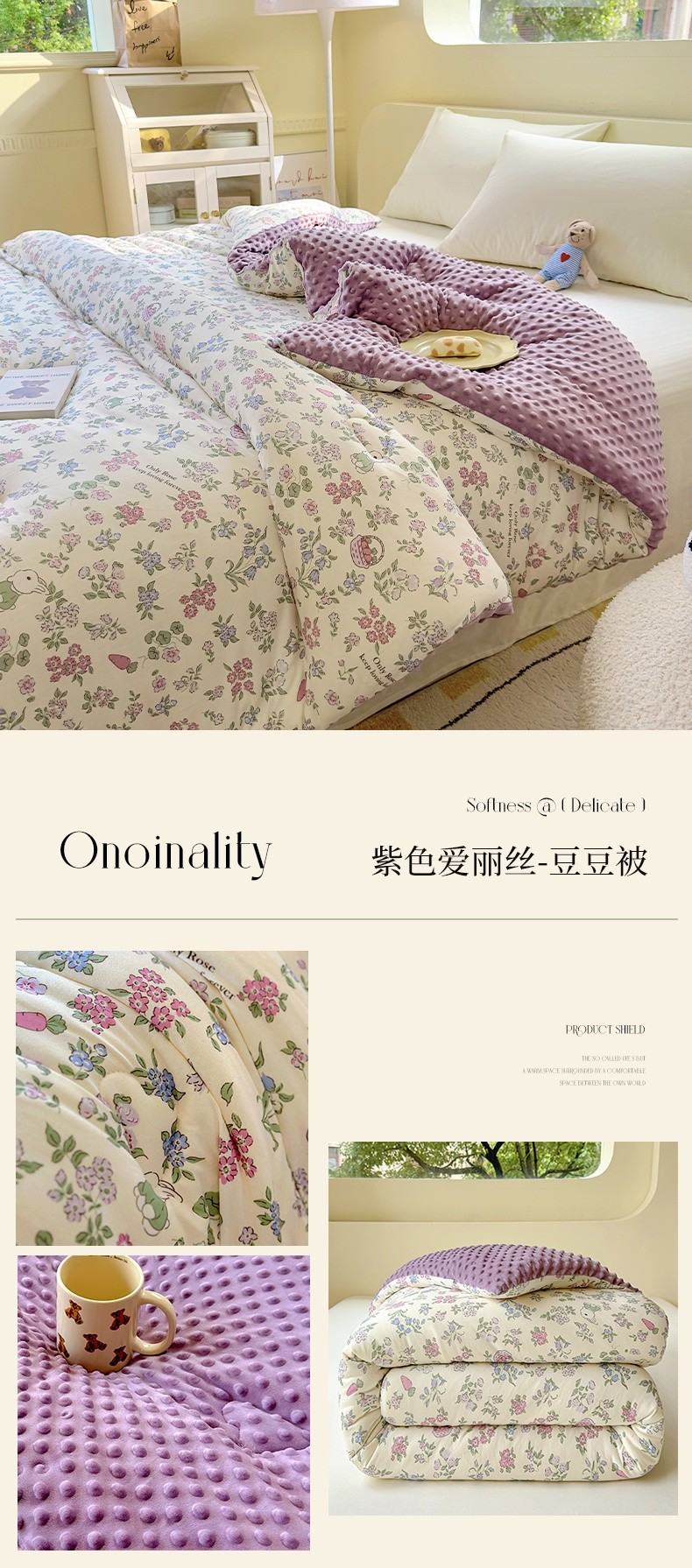 • 91家纺网 家纺一手货源 找家纺 木堇家居 2023新款秋冬针织豆豆大豆四季被 紫色爱丽丝-豆豆被