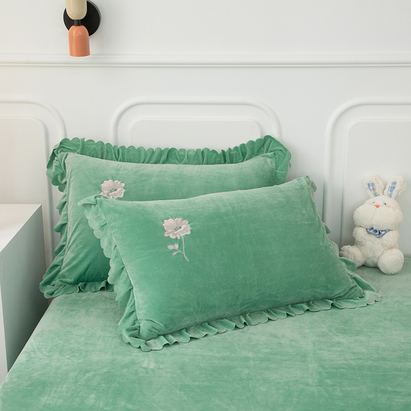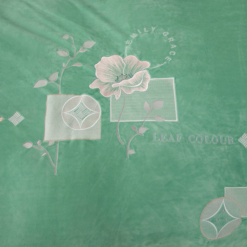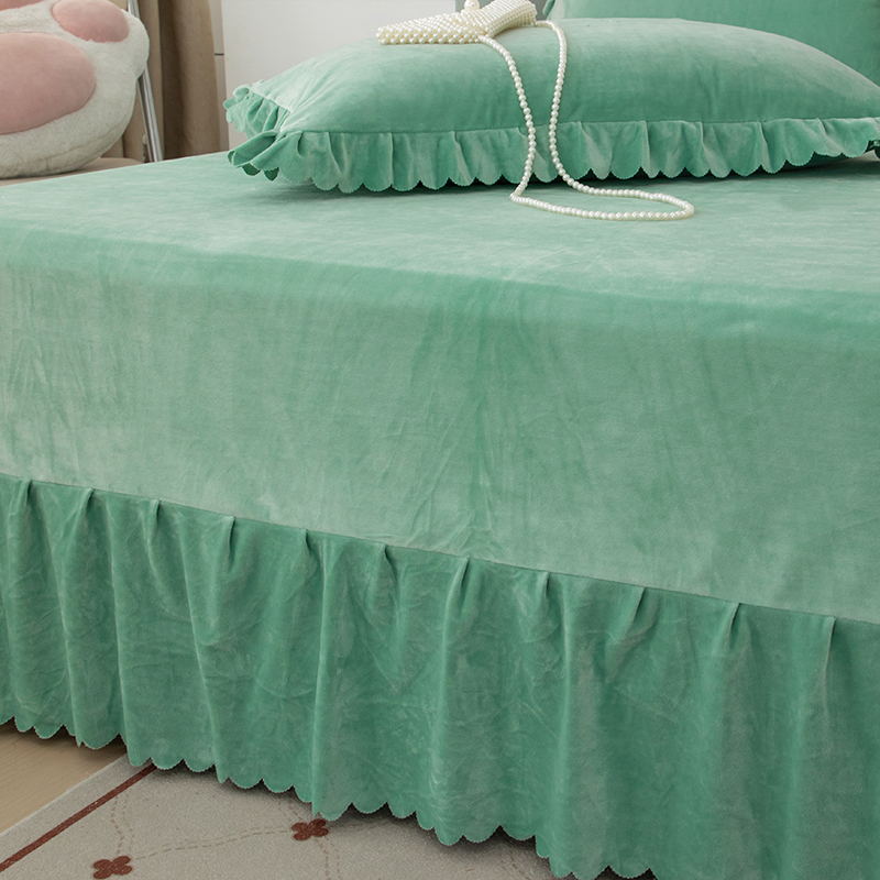 商品名称:优姿家纺 2024新品8.5斤德芙绒韩版床裙绣花保暖四件套 绽放浅绿