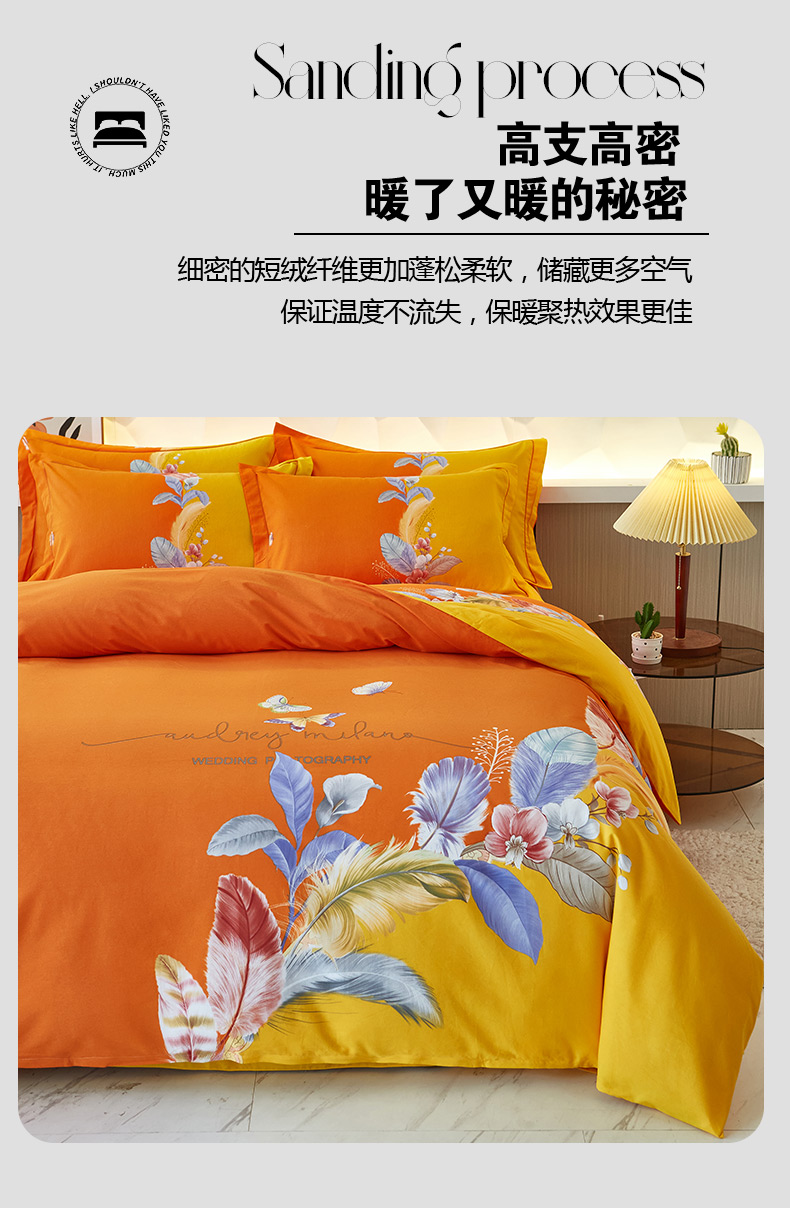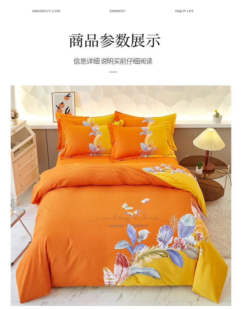 (总)雲归梦 2021新款全棉生态磨毛刺绣四件套,慕思-橙色,慕思-粉紫,慕思-灰,慕思-米黄,慕思-青绿,慕思-天蓝