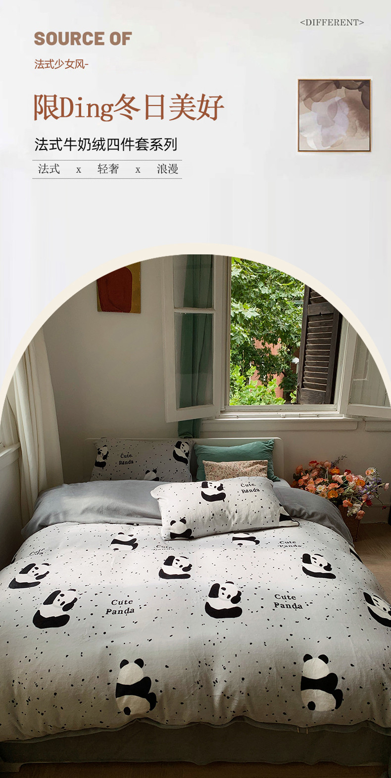 花沐 2023新款冬季复古小法式牛奶绒四件套 花花同学