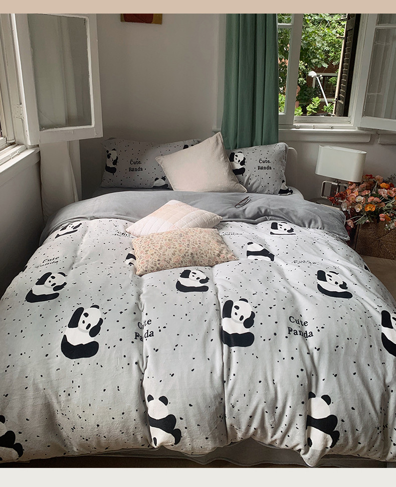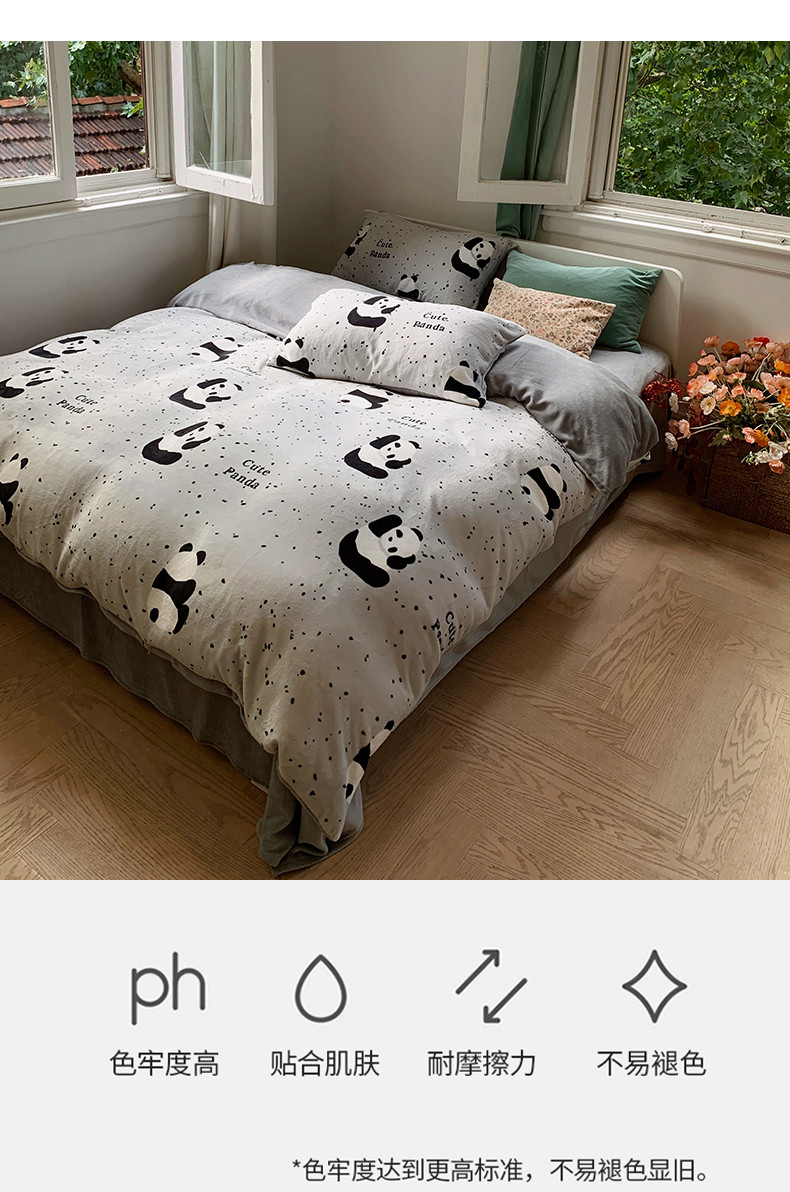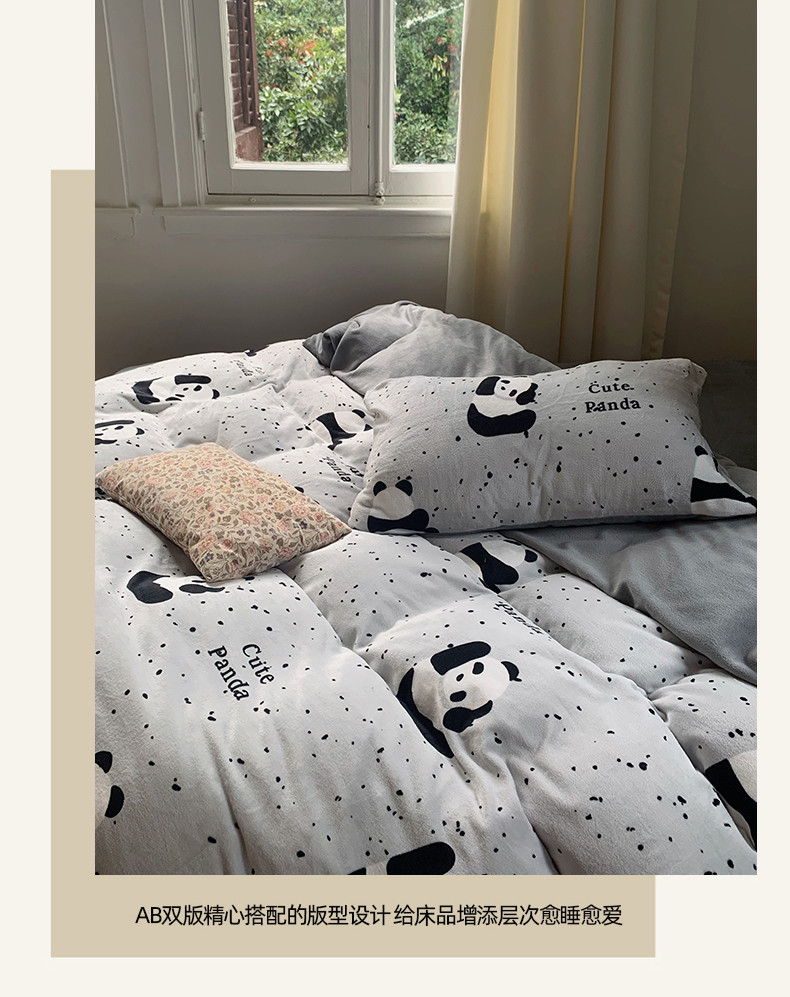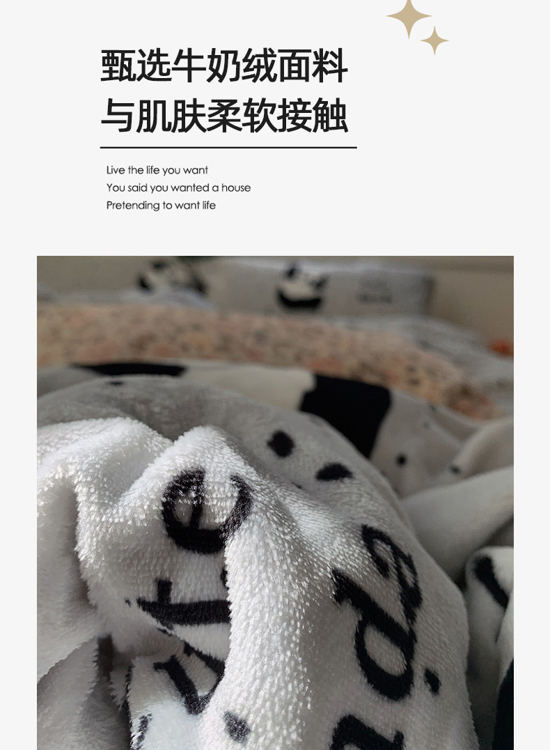 (总)花沐家居 2023新款活性数码印花牛奶绒四件套-场景1,白色字母熊,黑白金范,黑白熊,黑色花朵,渐变熊,条纹,小白熊,小粉熊,小古黑花,小黑熊,小香风字母,字母熊