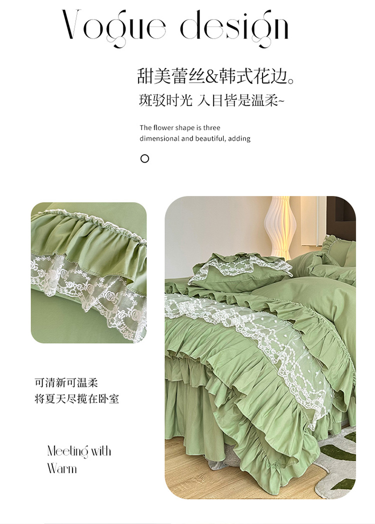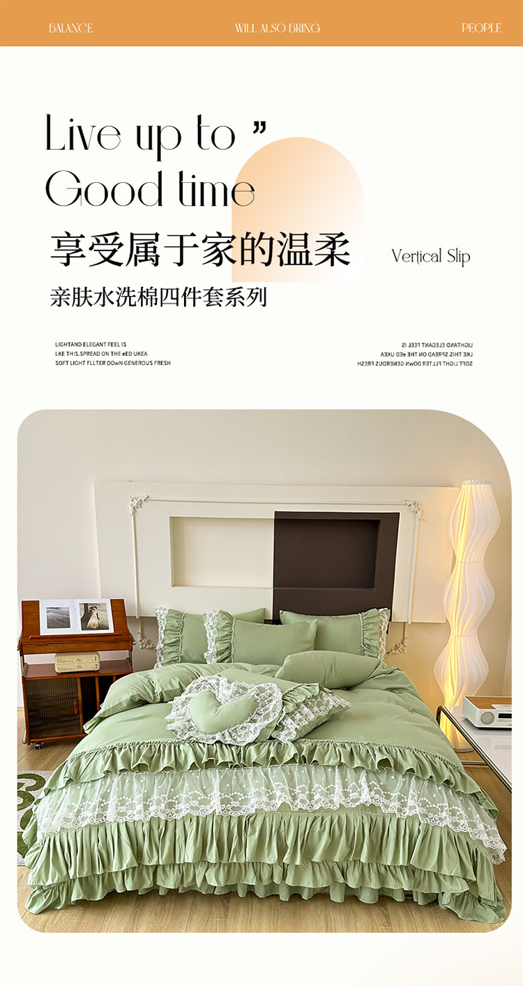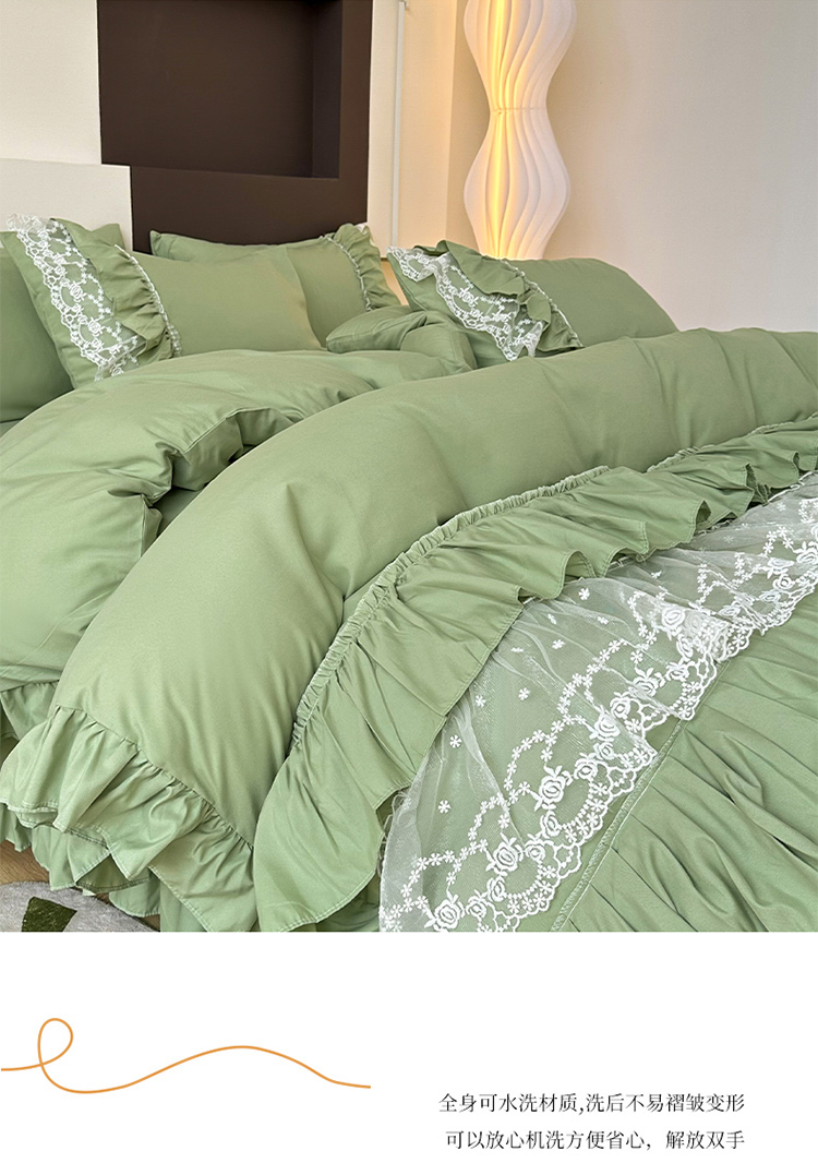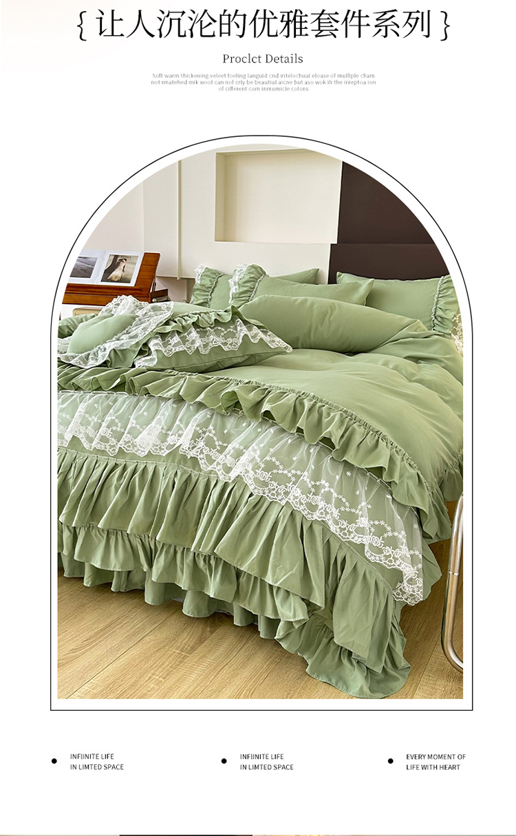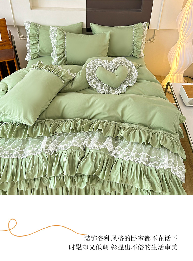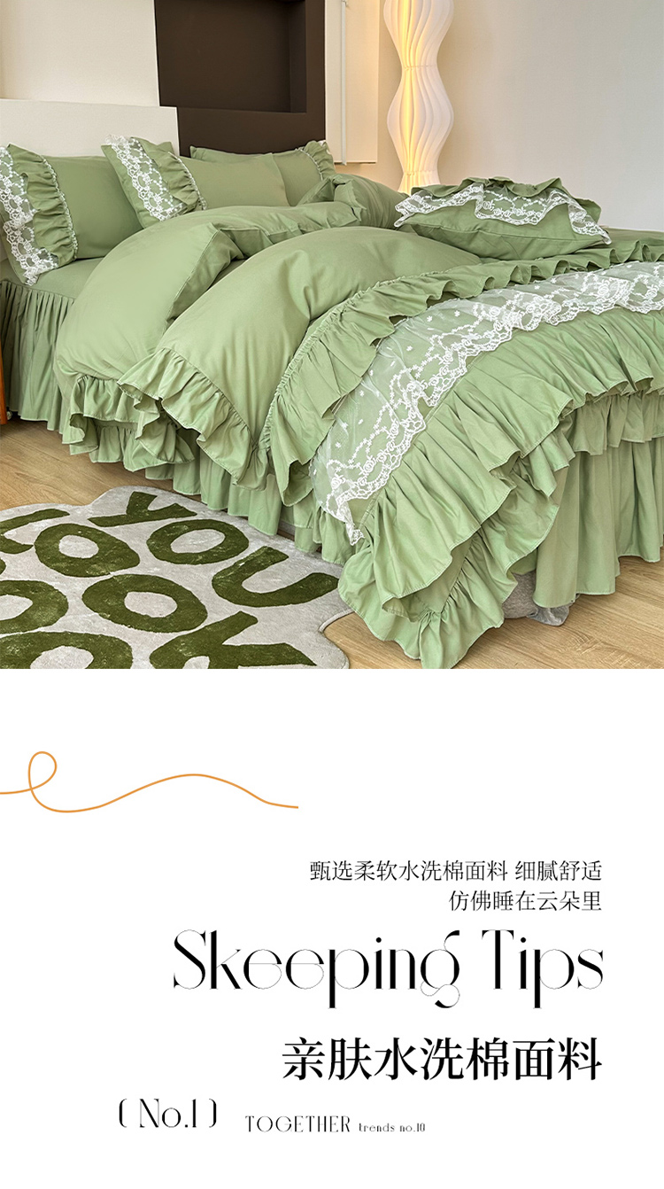 当前位置: 91家纺网 > 商品网购 > 床品套件 > 四件套 > 磨毛活性四件套 > 言熙居 2023新款多巴胺加厚磨毛韩版床裙小清新风四件套 多巴胺-绿