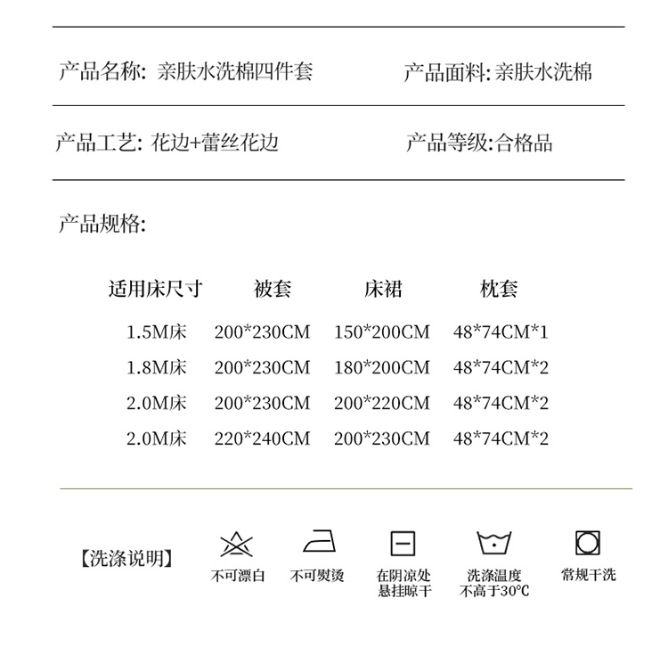 2x2.2米床用床裙款 被套2x2.3米 床裙2x2.2米 枕套两只 | ¥80.00 |
