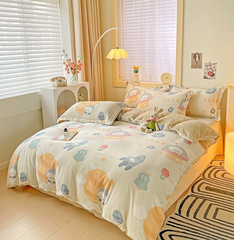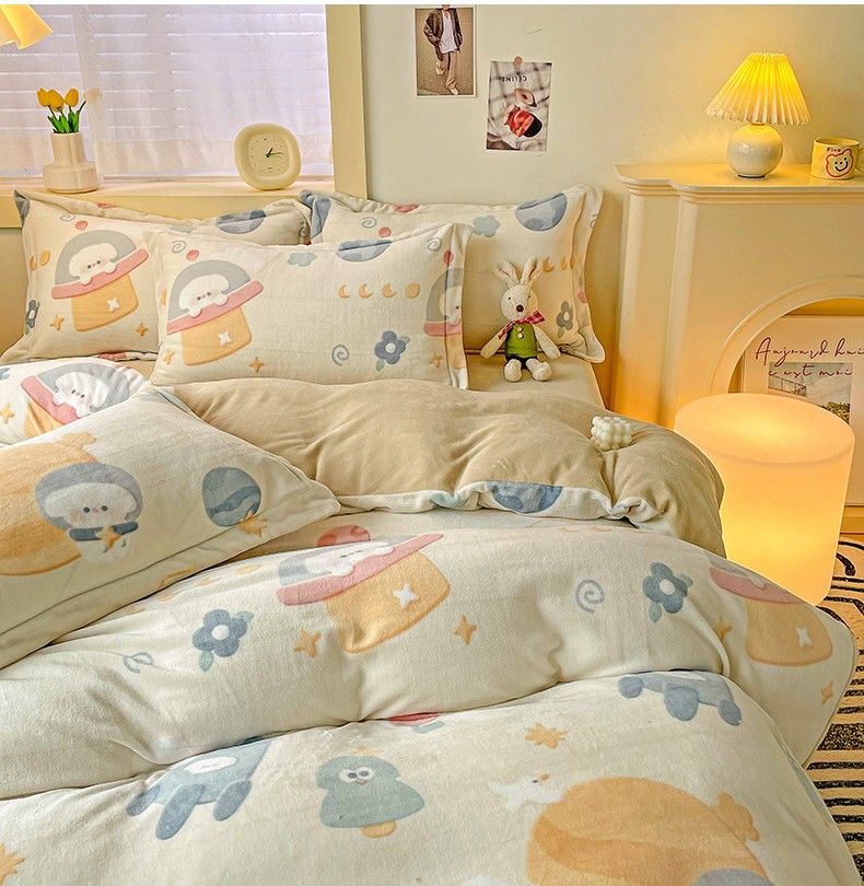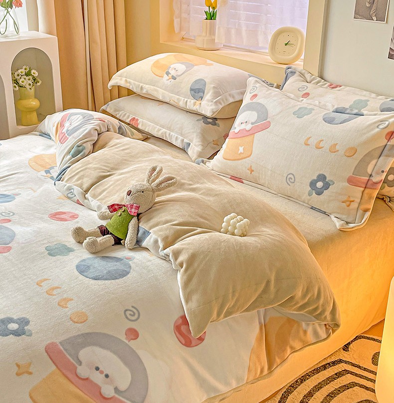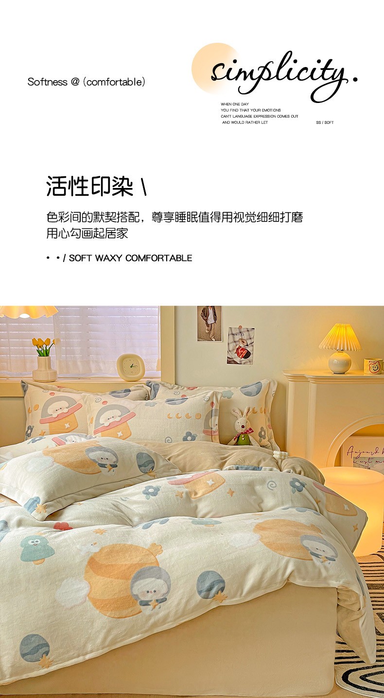 当前位置: 91家纺网 > 商品网购 > 床品套件 > 四件套 > 牛奶绒四件套 > 畅畅家纺 2023新款活性印花小清新AB版加厚高克重法莱绒牛奶绒四件套 太空旅行