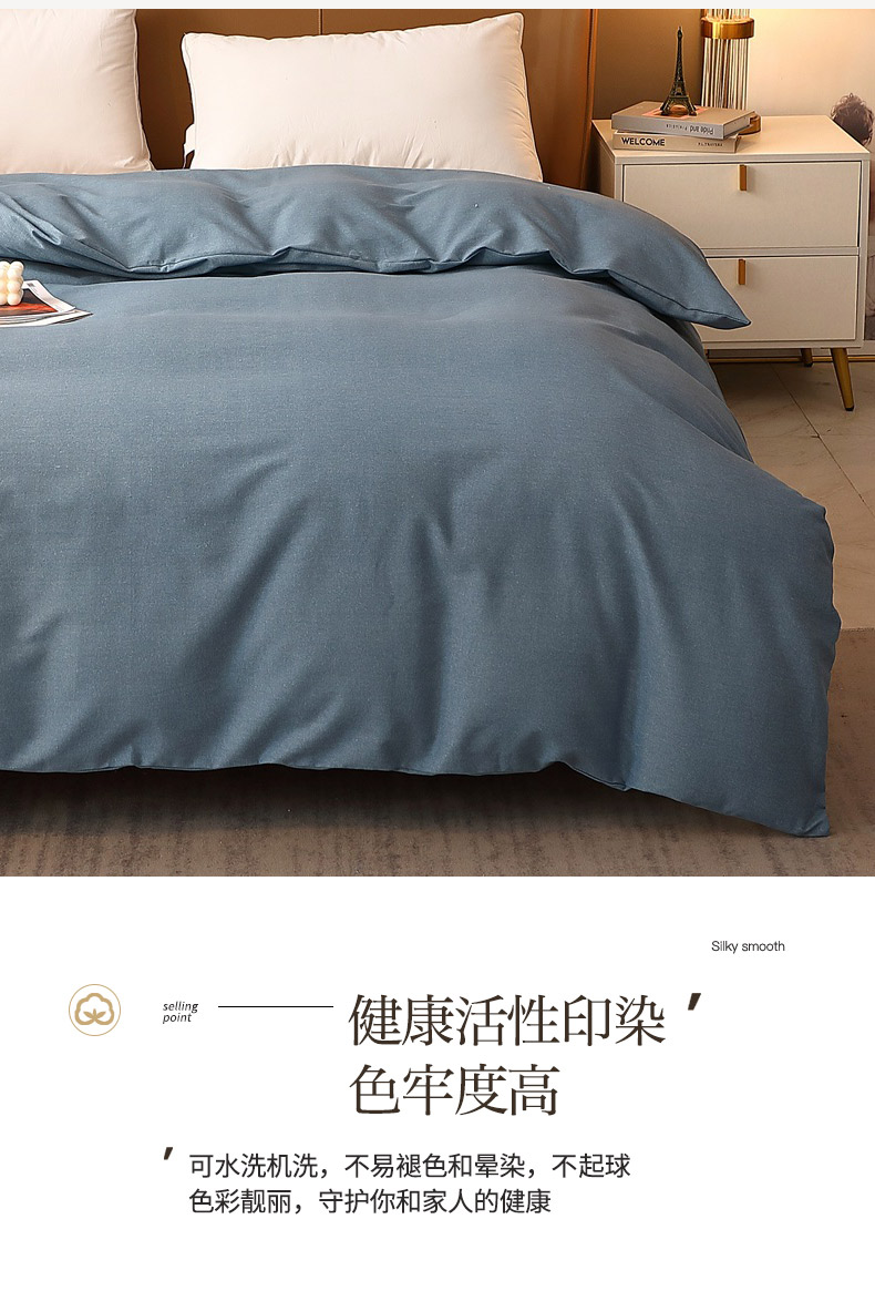 晶缦家纺 2023加厚全棉纯色生态磨毛多规格单品四件套--被套 纯依-蓝灰