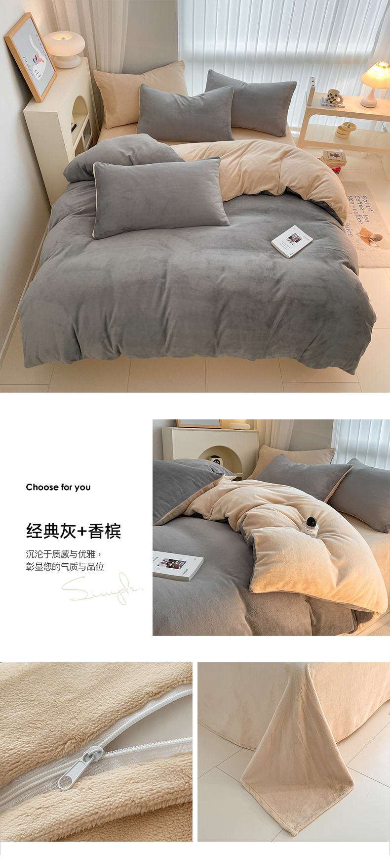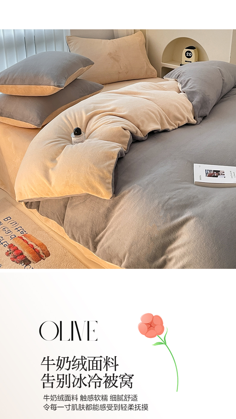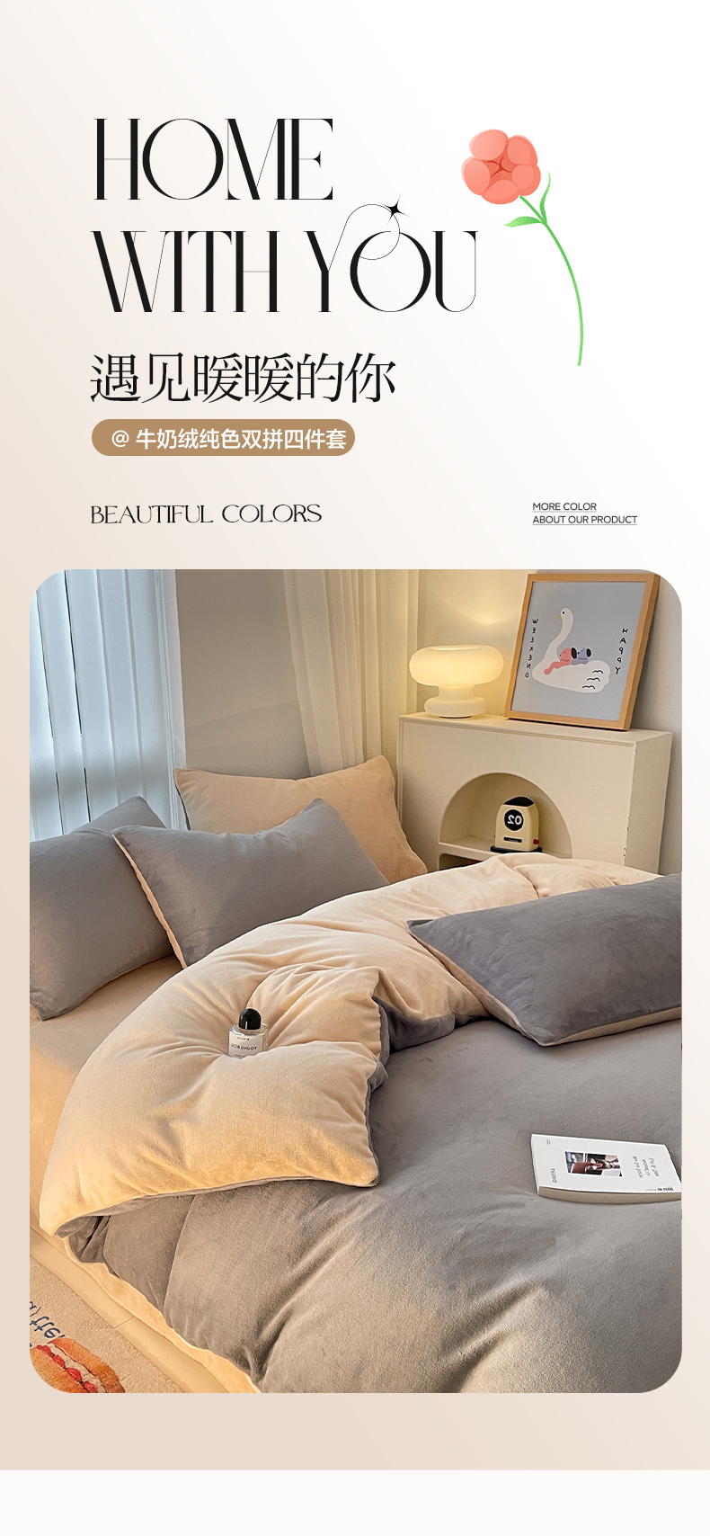 当前位置: 91家纺网 > 商品网购 > 床品套件 > 四件套 > 牛奶绒四件套 > 古吉梦 2023新款牛奶绒纯色双拼(跑量款)四件套 经典灰+香槟