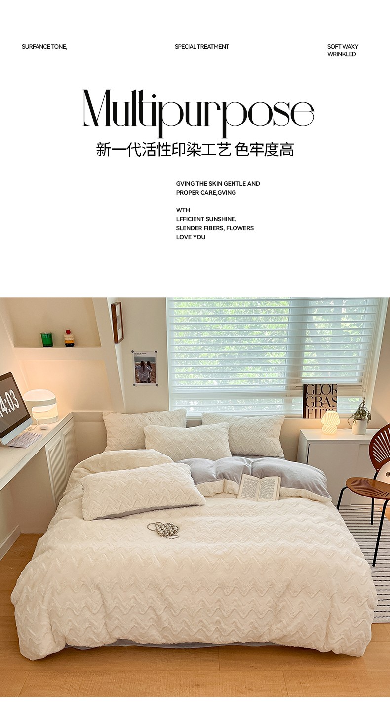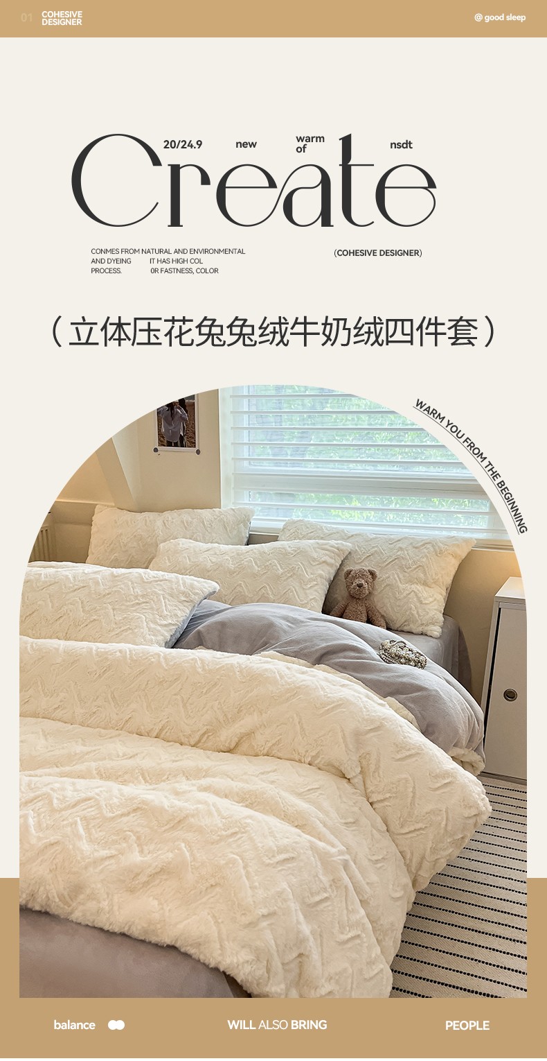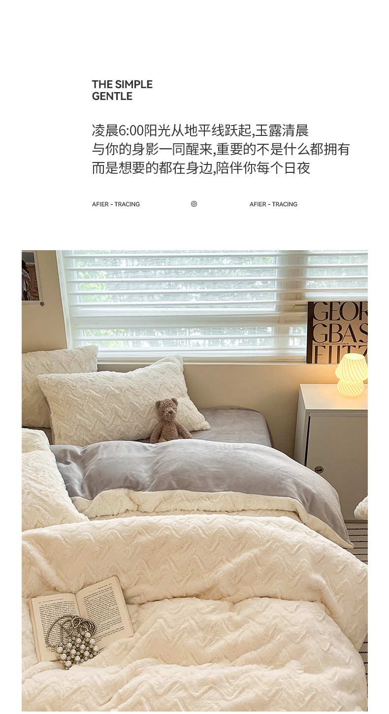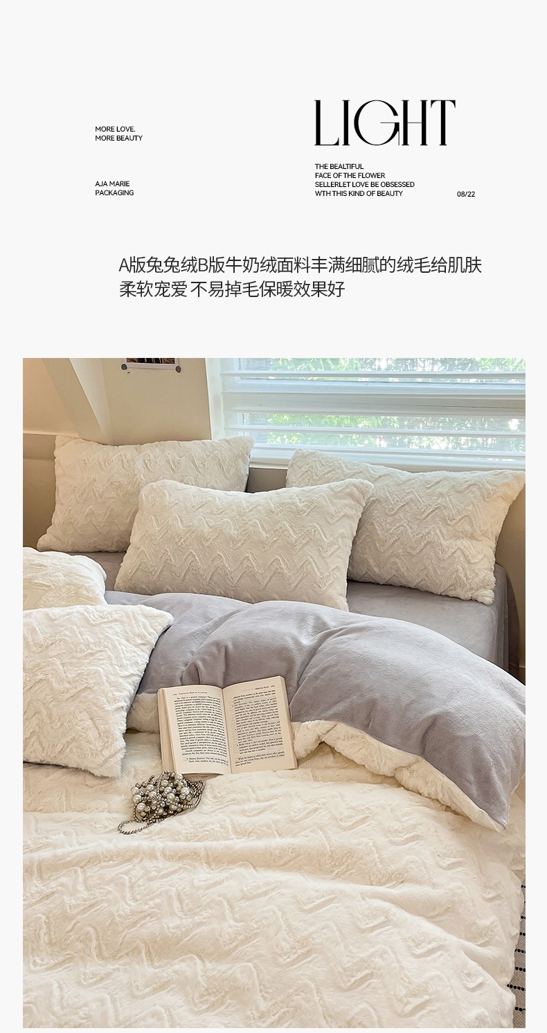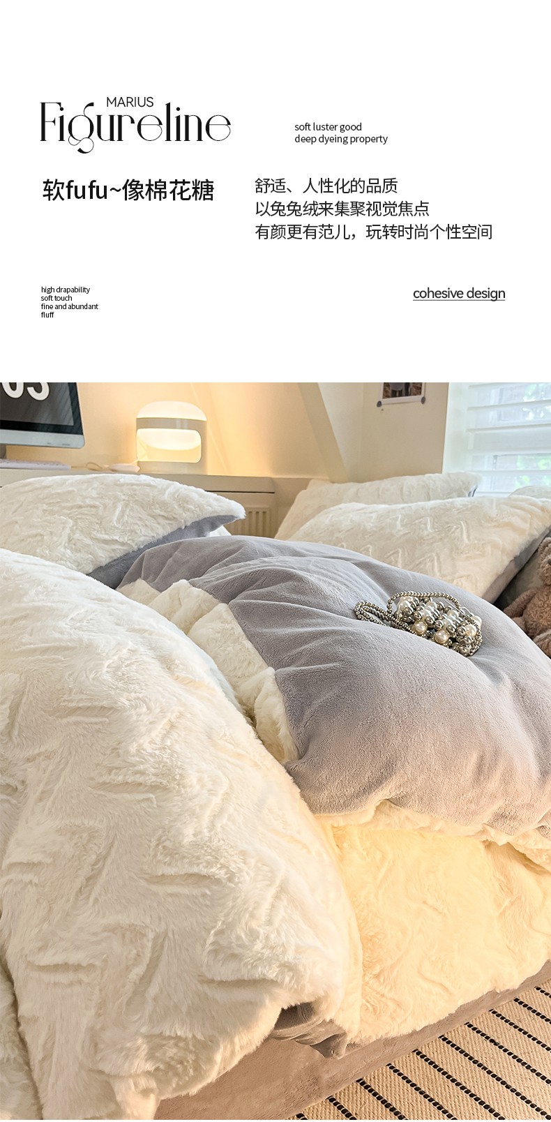 商品名称:澳梵 2023新款立体压花兔兔绒牛奶绒四件套 波浪-灰白