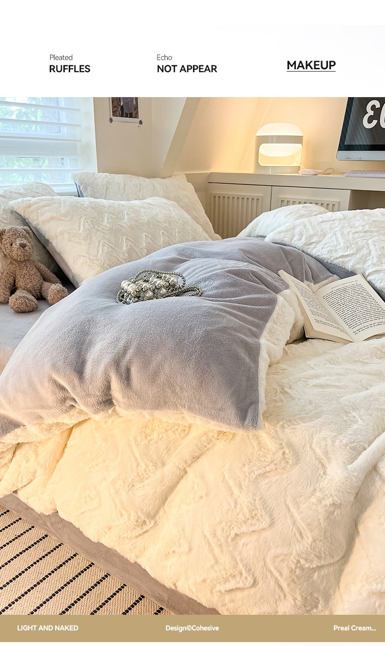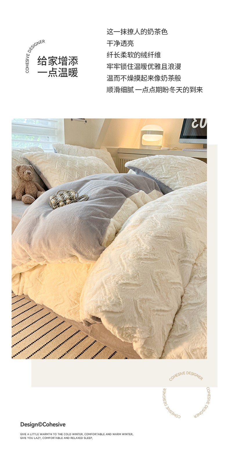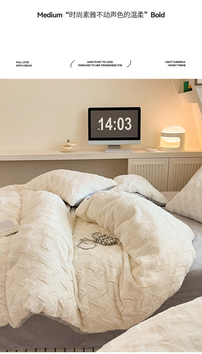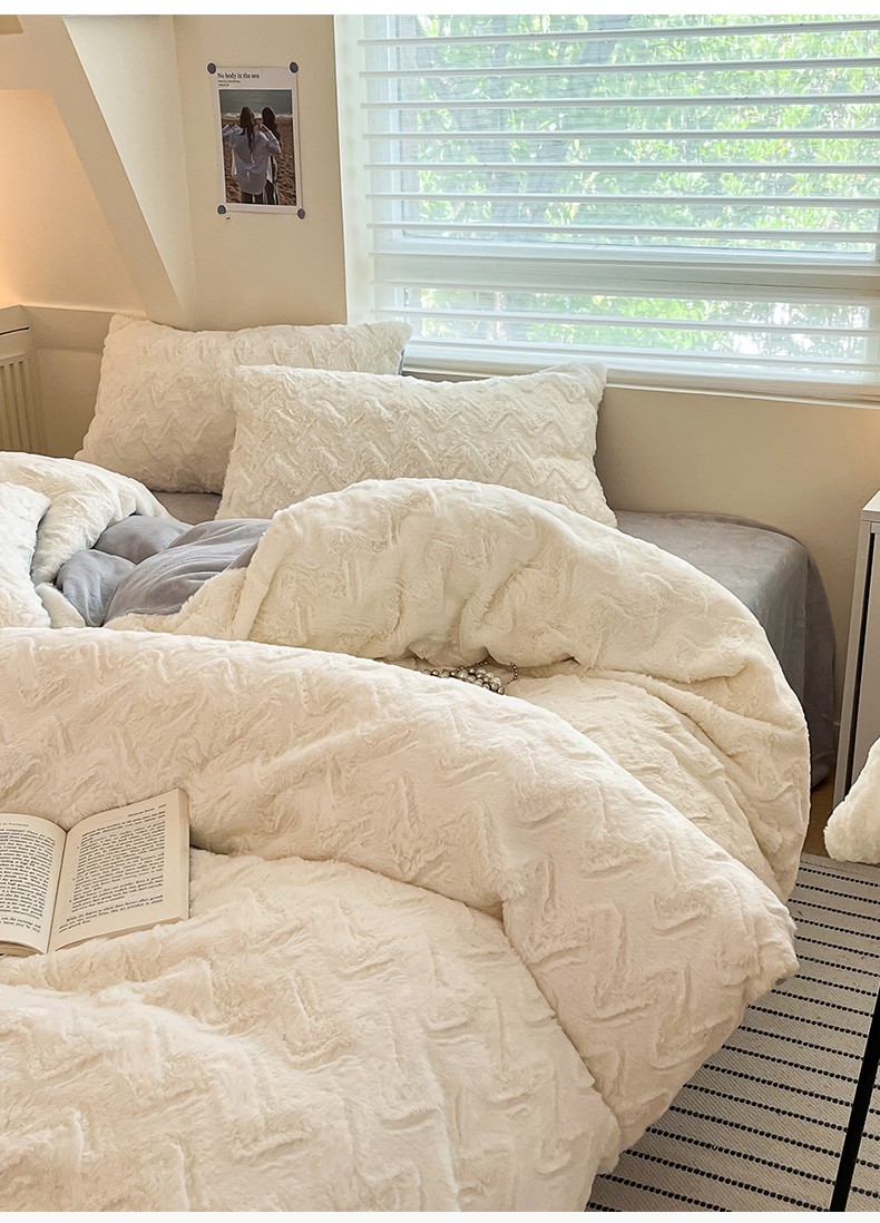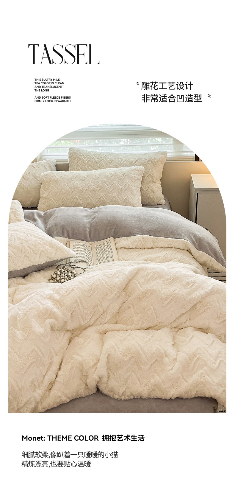 商品名称:澳梵 2023新款立体压花兔兔绒牛奶绒四件套 波浪-灰白
