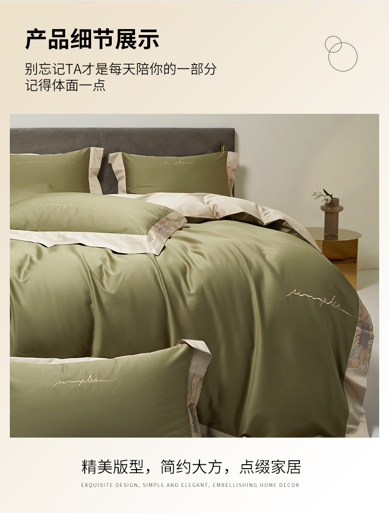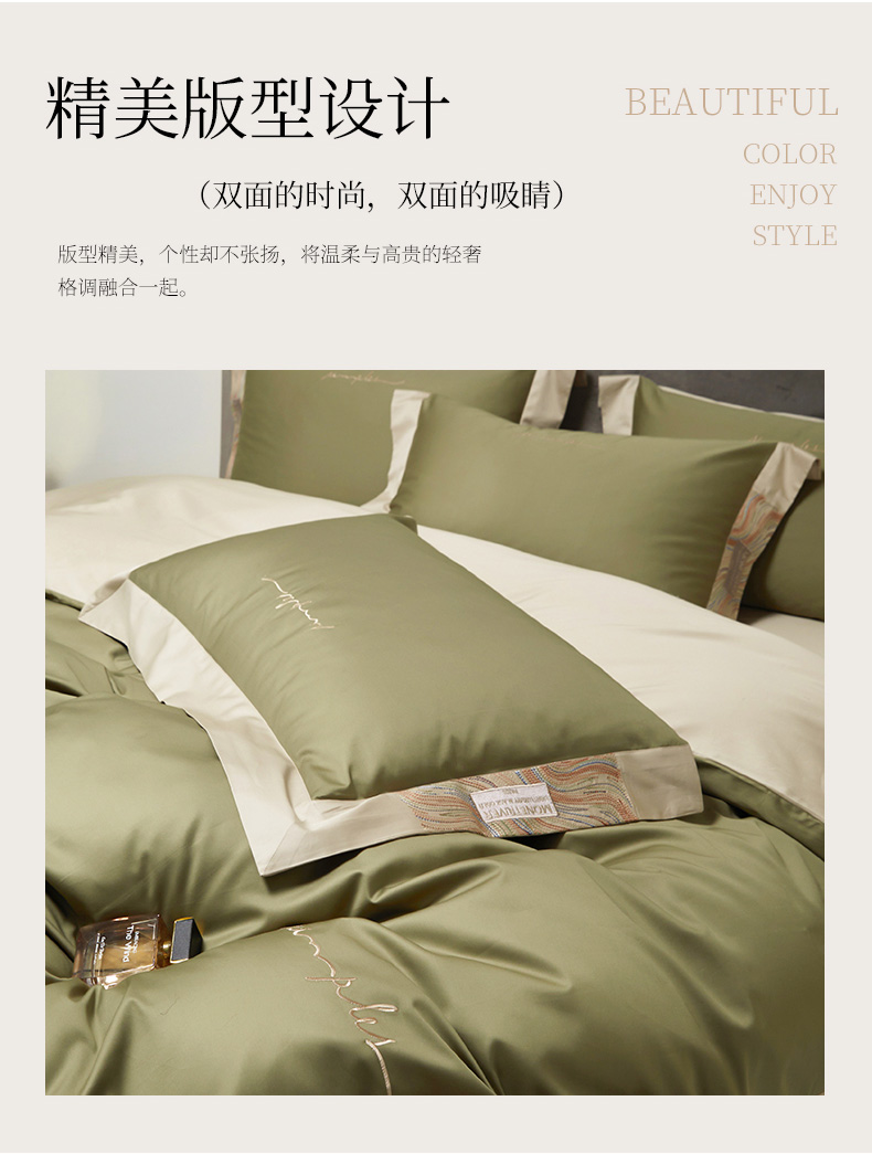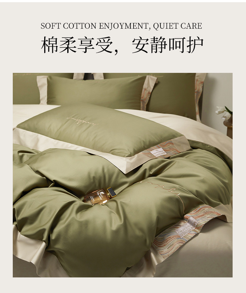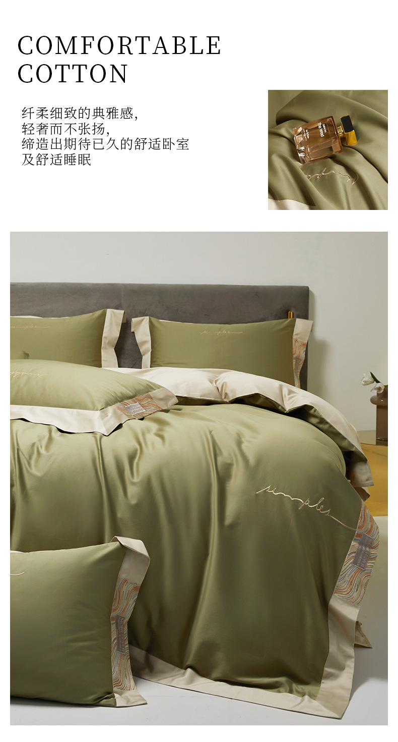 商品名称:爱缦 2023新款极光系列100支澳棉四件套风格二 莫兰绿