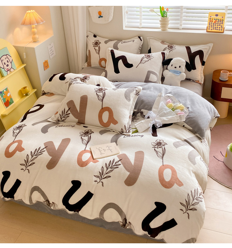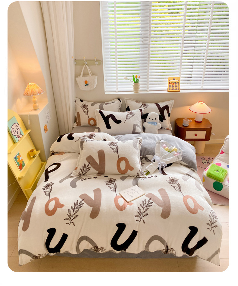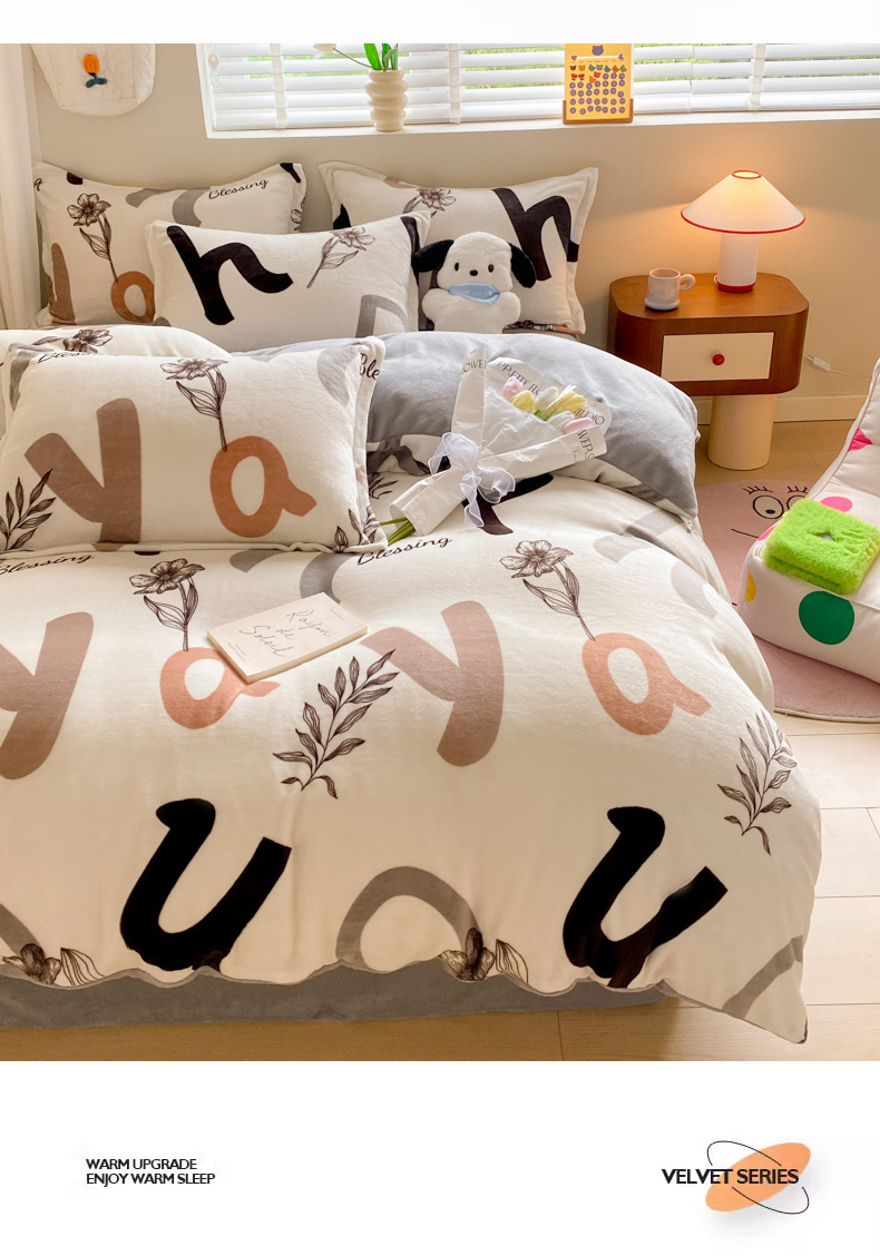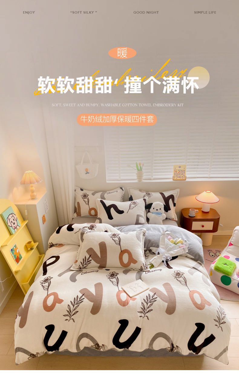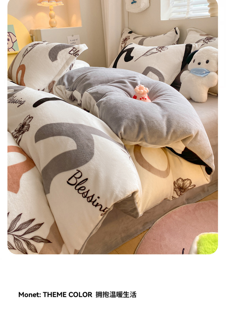 当前位置: 91家纺网 > 商品网购 > 床品套件 > 四件套 > 牛奶绒四件套 > 沐慕 2024新款牛奶绒加厚保暖卡通印花四件套 简约字母