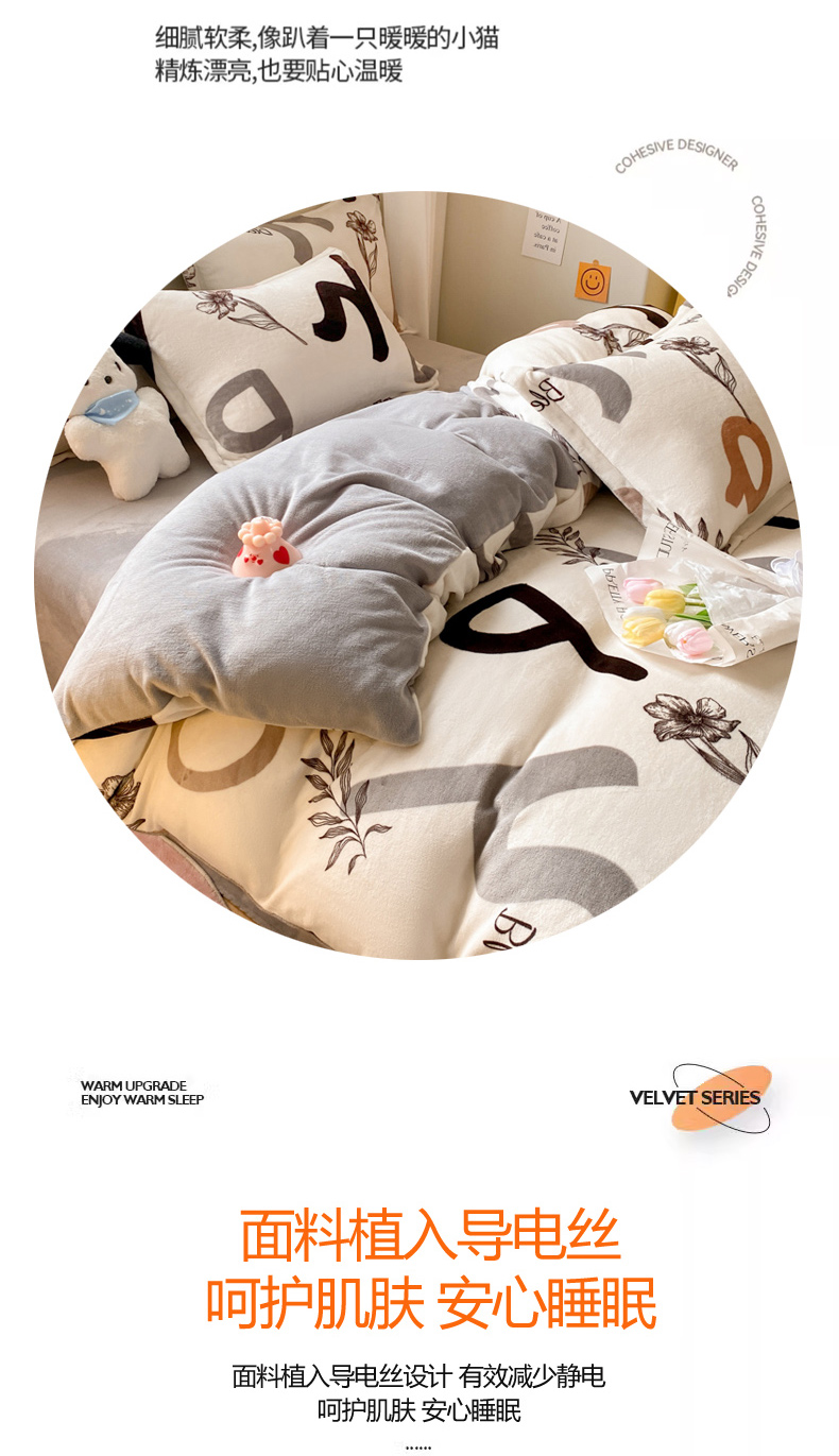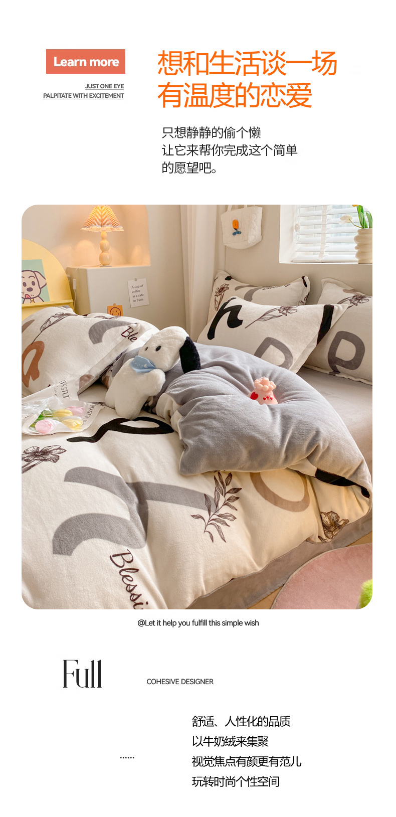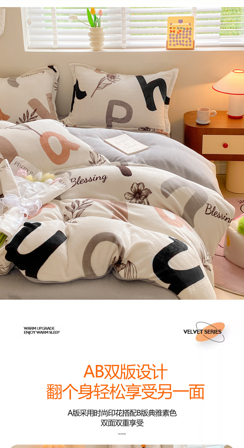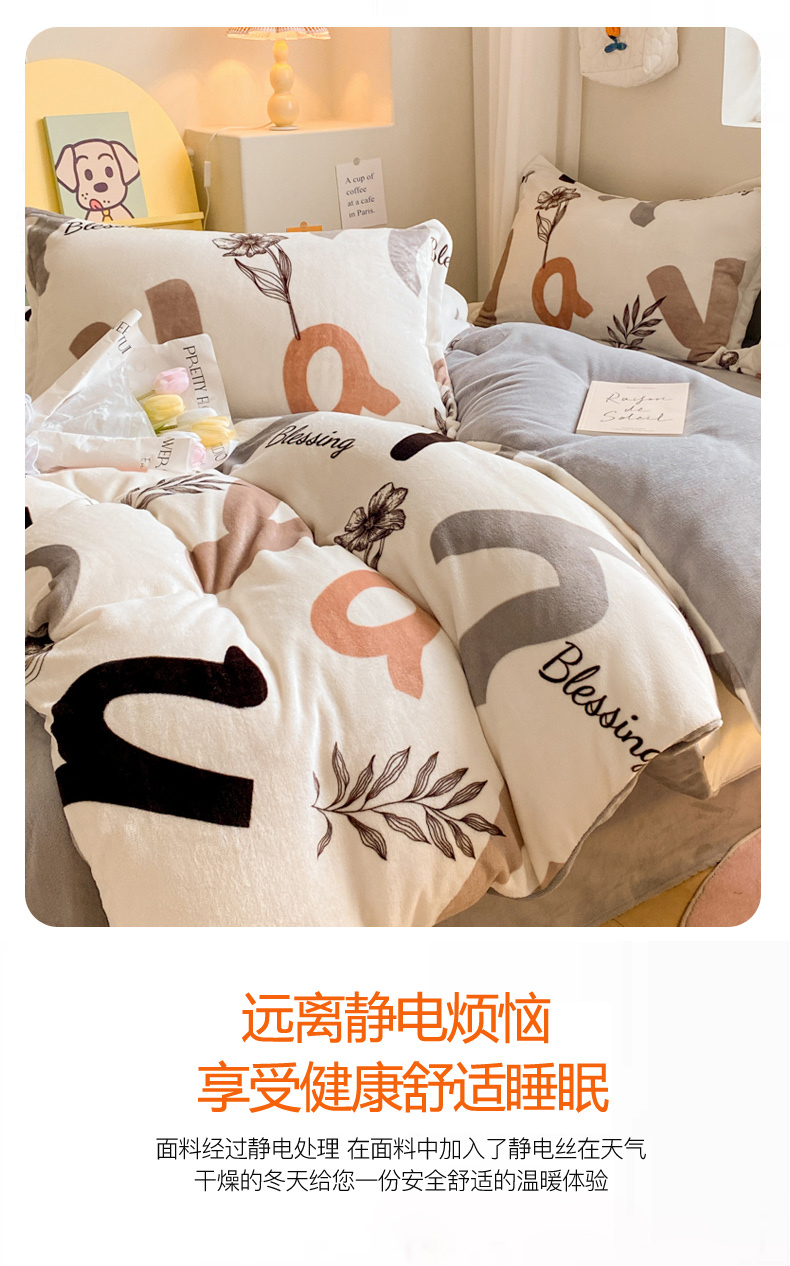 当前位置: 91家纺网 > 商品网购 > 床品套件 > 四件套 > 牛奶绒四件套 > 沐慕 2024新款牛奶绒加厚保暖卡通印花四件套 简约字母