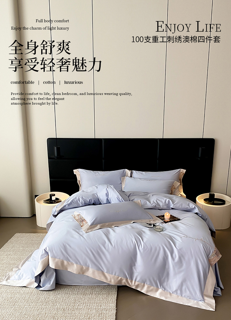 爱缦 2023新款极光系列100支澳棉四件套风格一 迷雾蓝