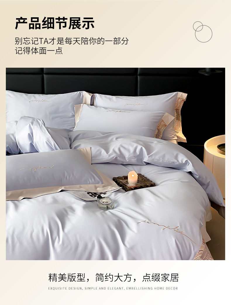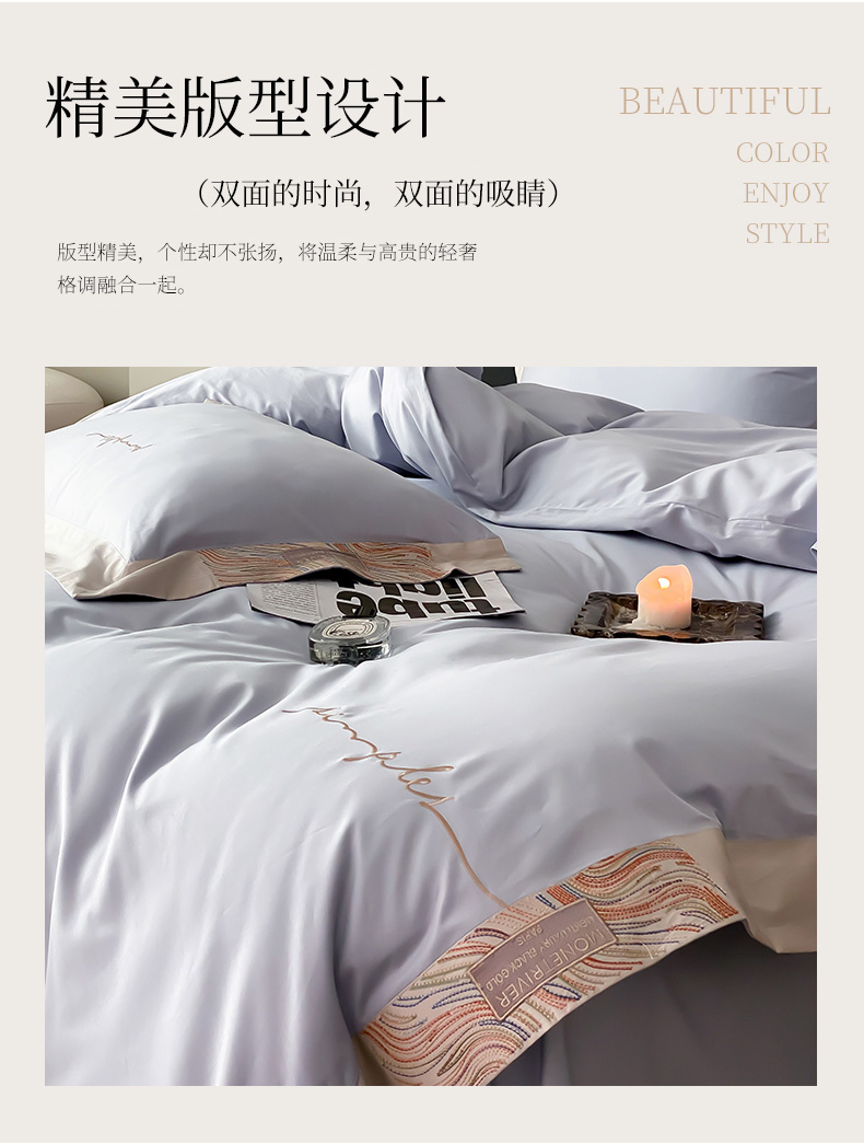 (总)爱缦 新款60支莱赛尔四件套-至真系列,蓝米驼,米白粉,浅紫,玉粉