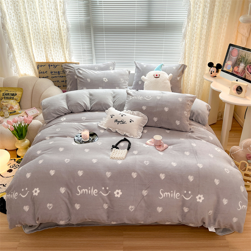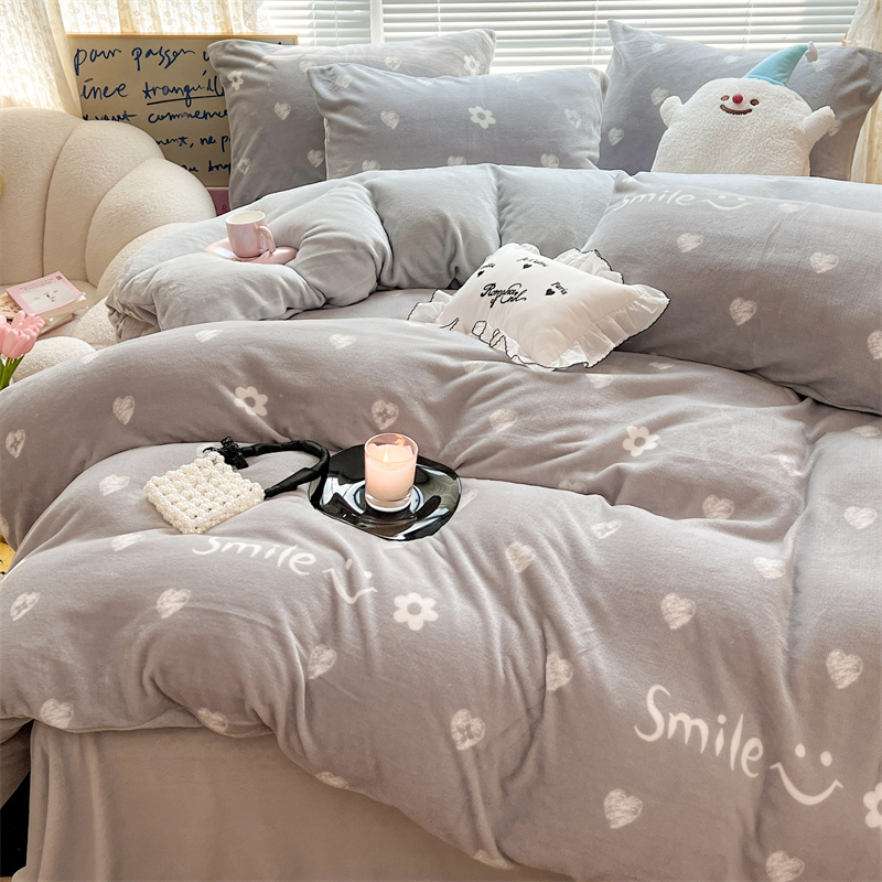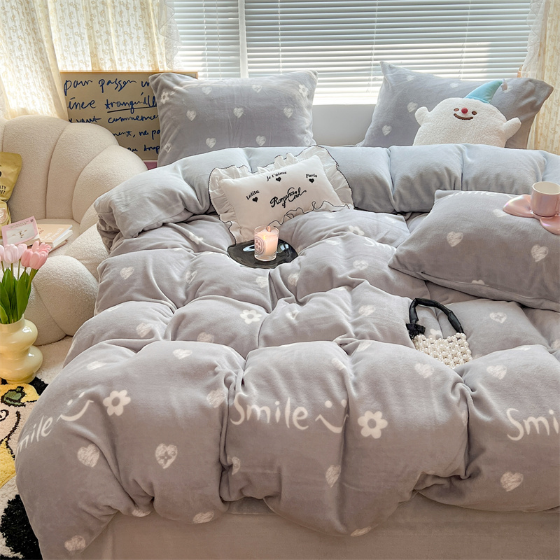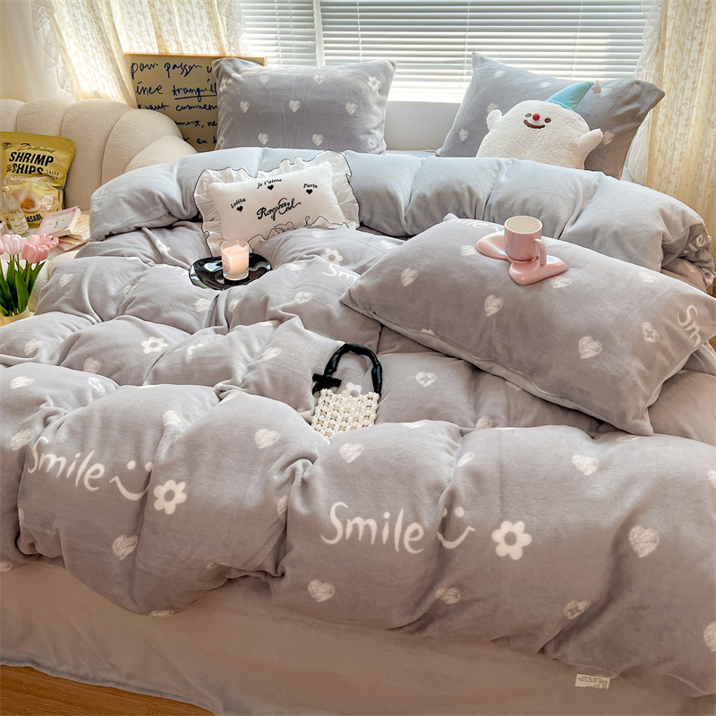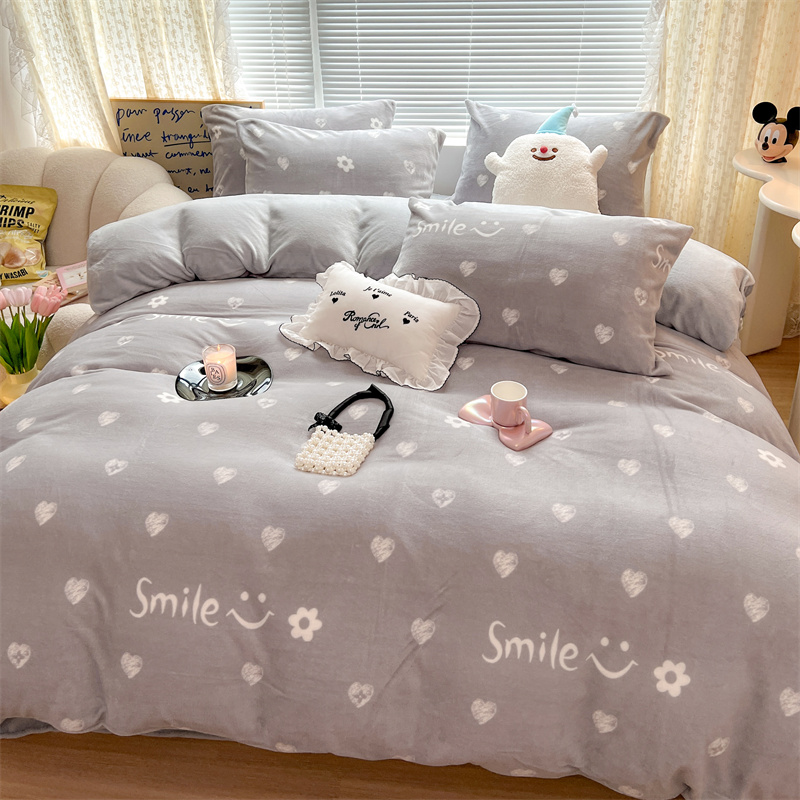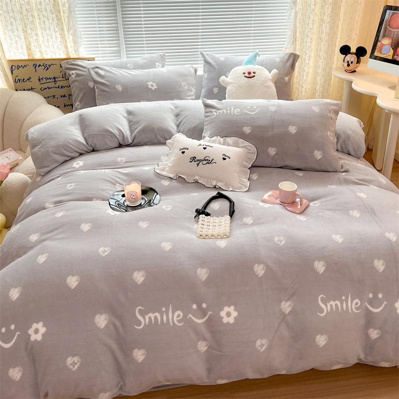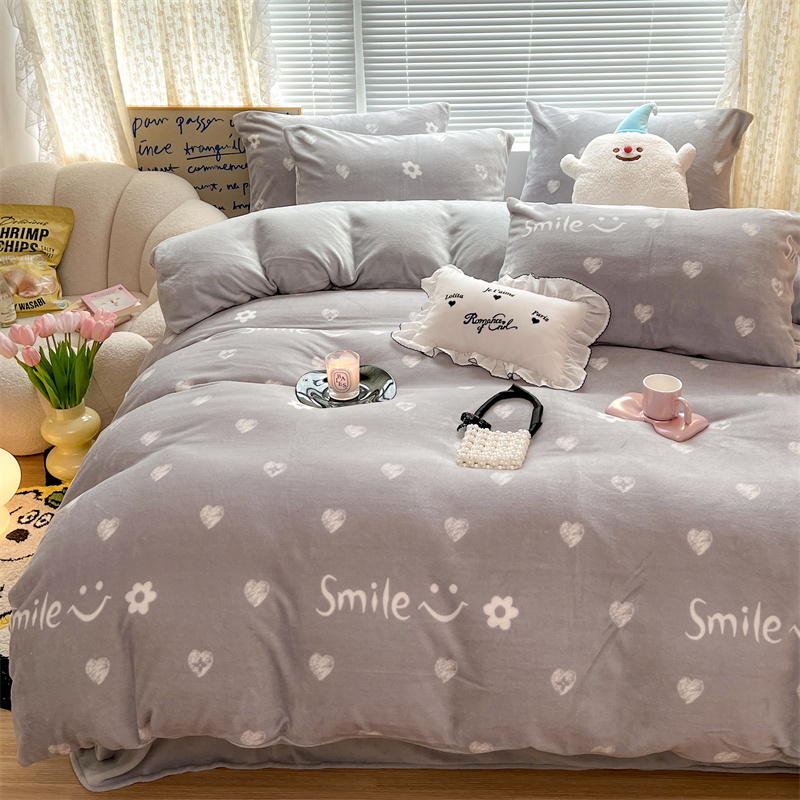 顾里家纺 新款ins少女保暖牛奶绒四件套第二批 笑脸爱心