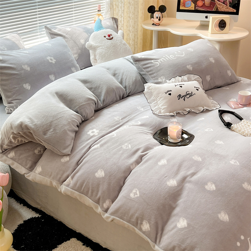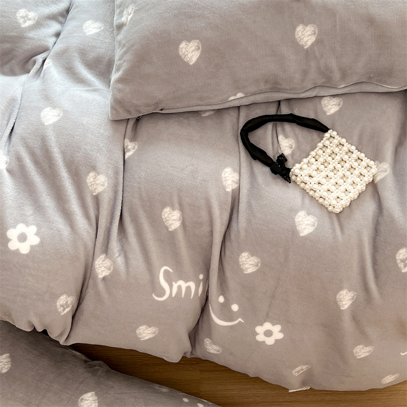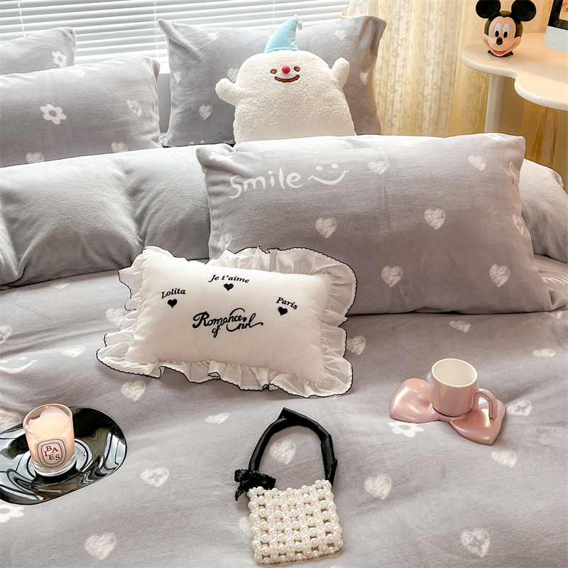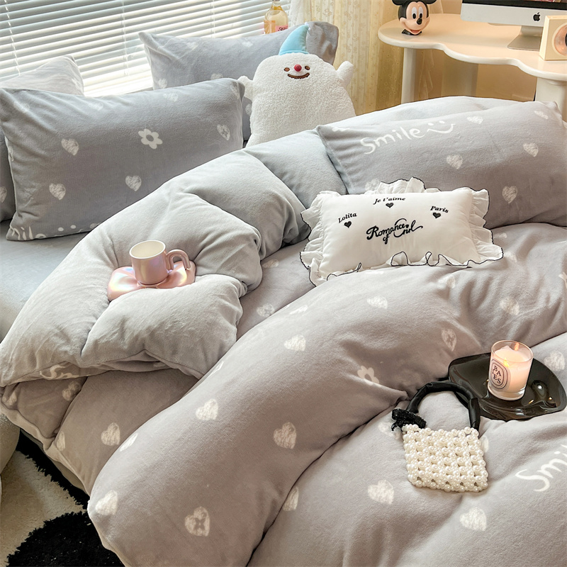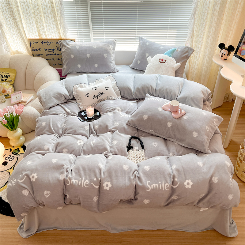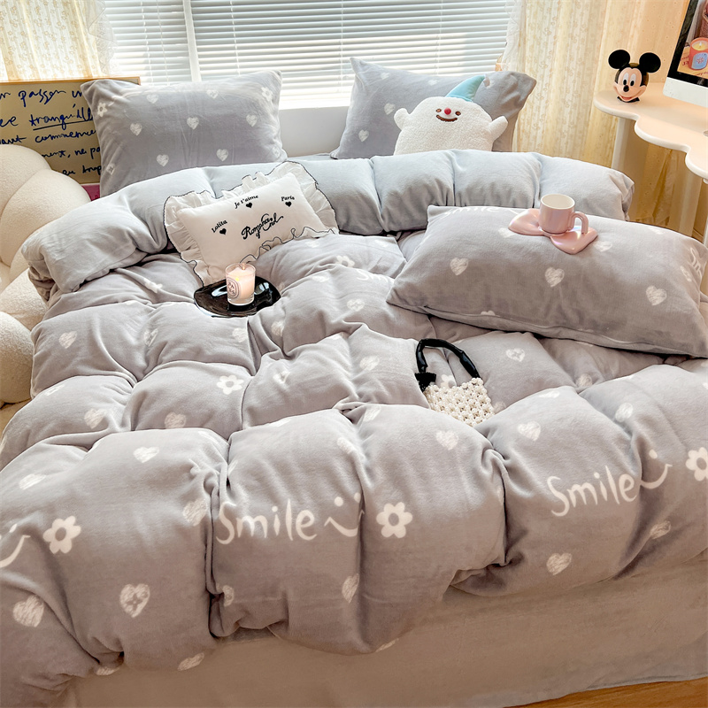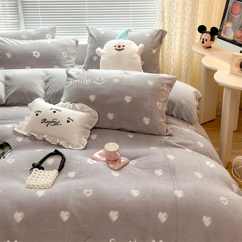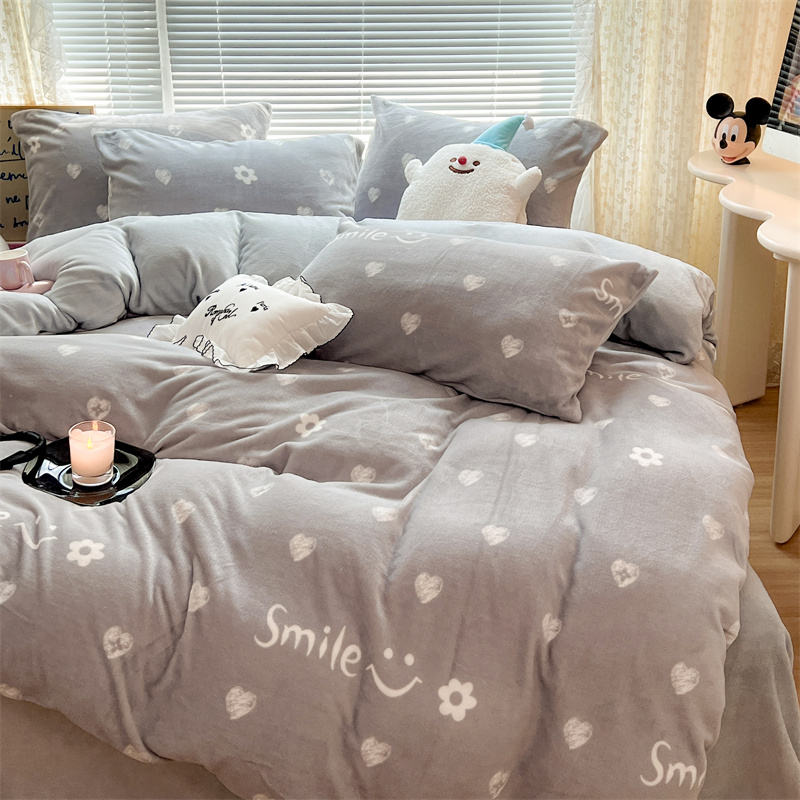 顾里家纺 新款ins少女保暖牛奶绒四件套第二批 笑脸爱心
