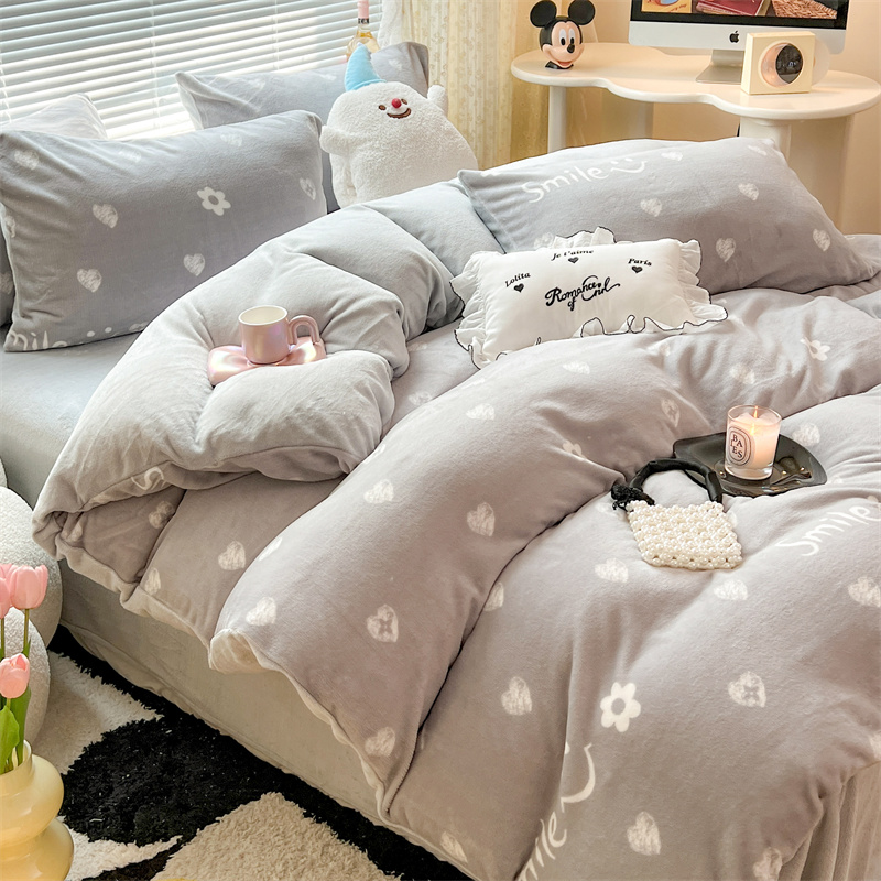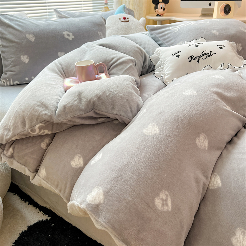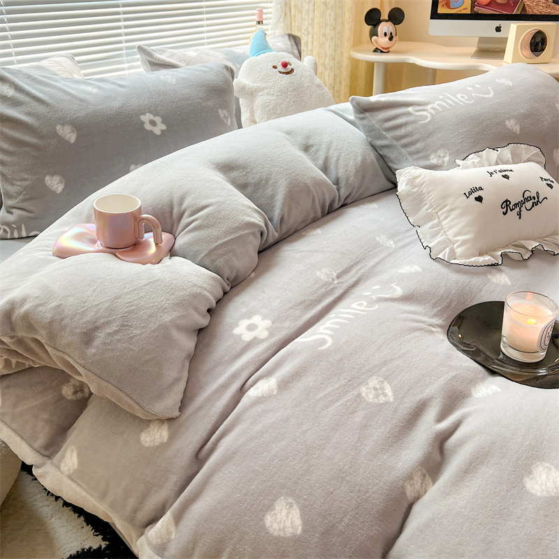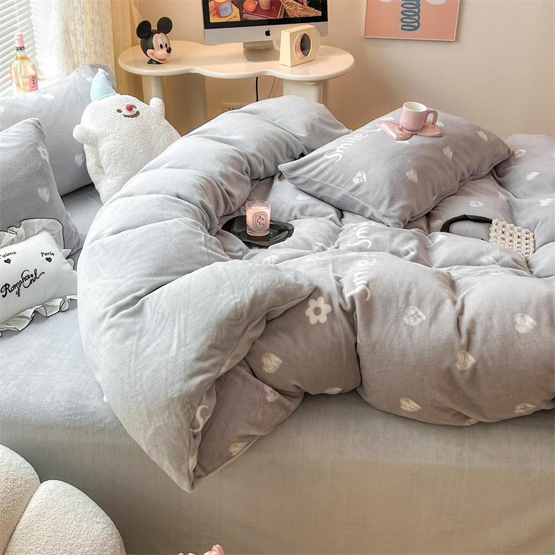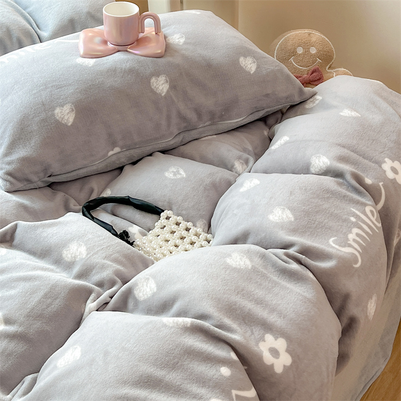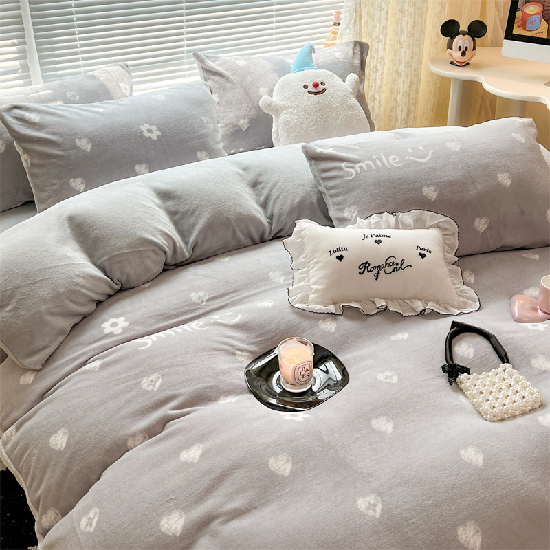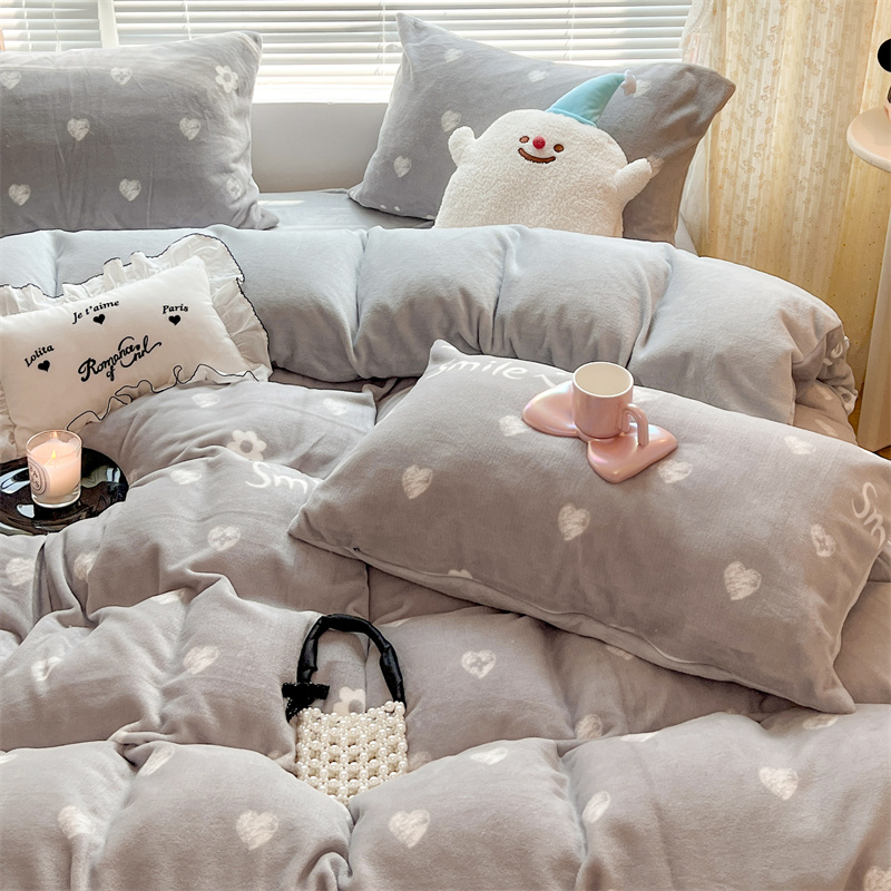 顾里家纺 新款ins少女保暖牛奶绒四件套第二批 笑脸爱心