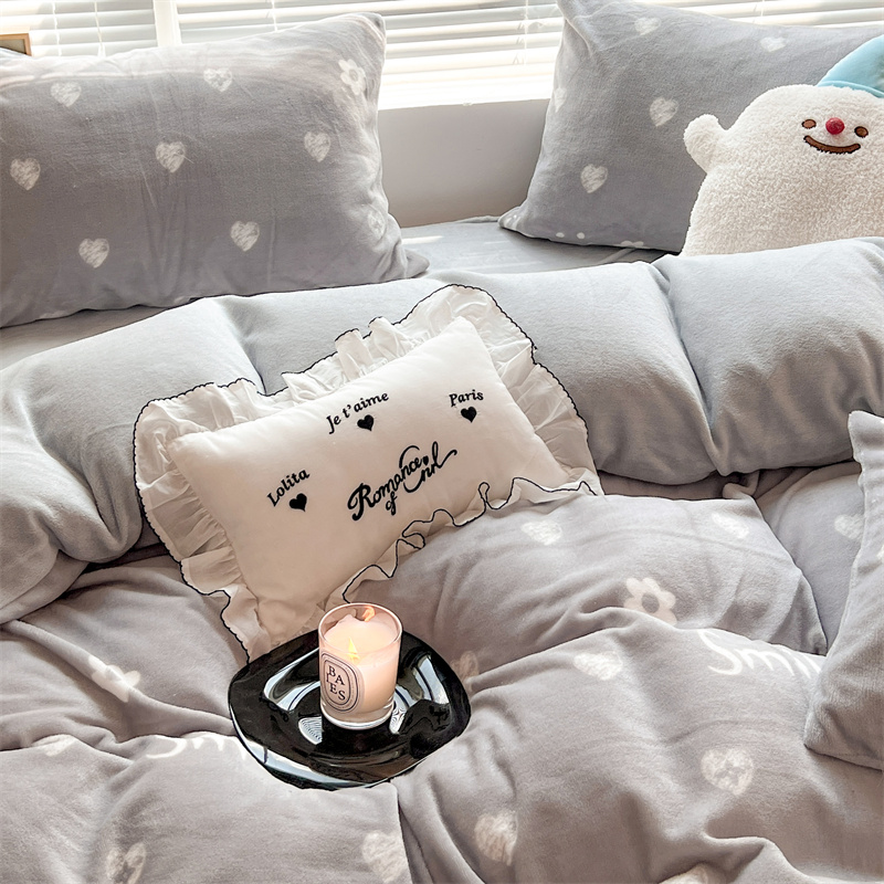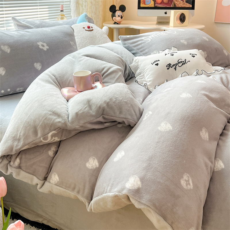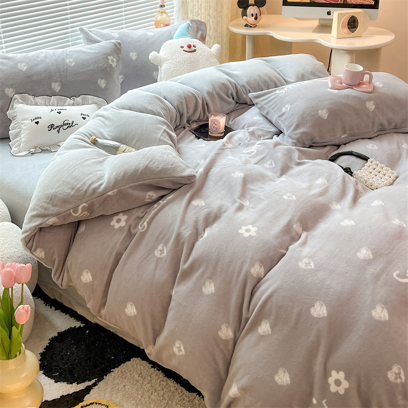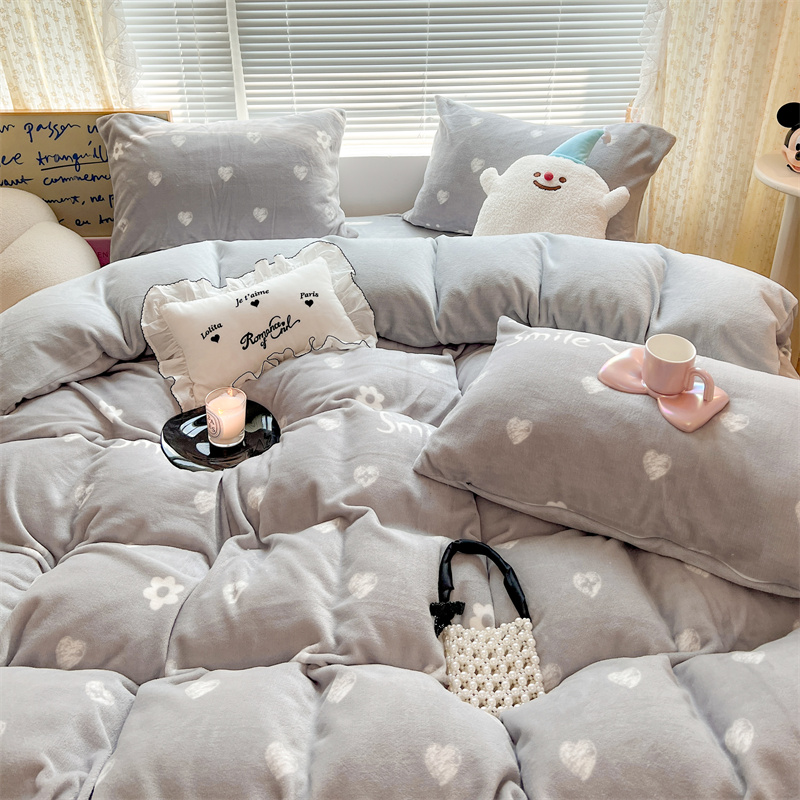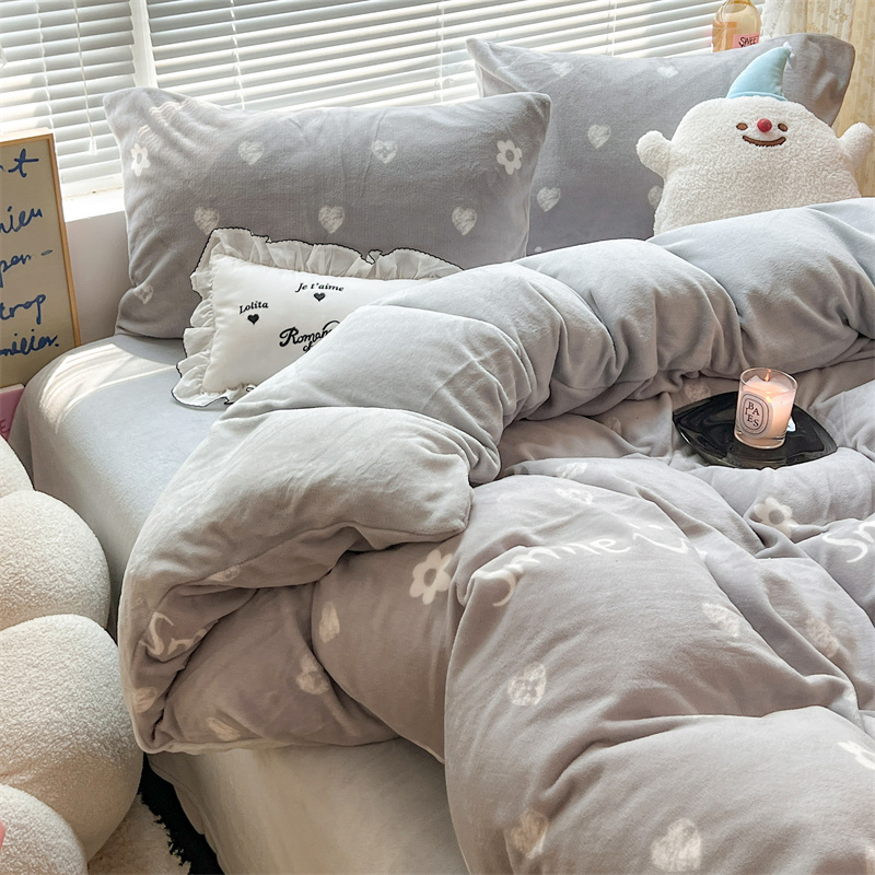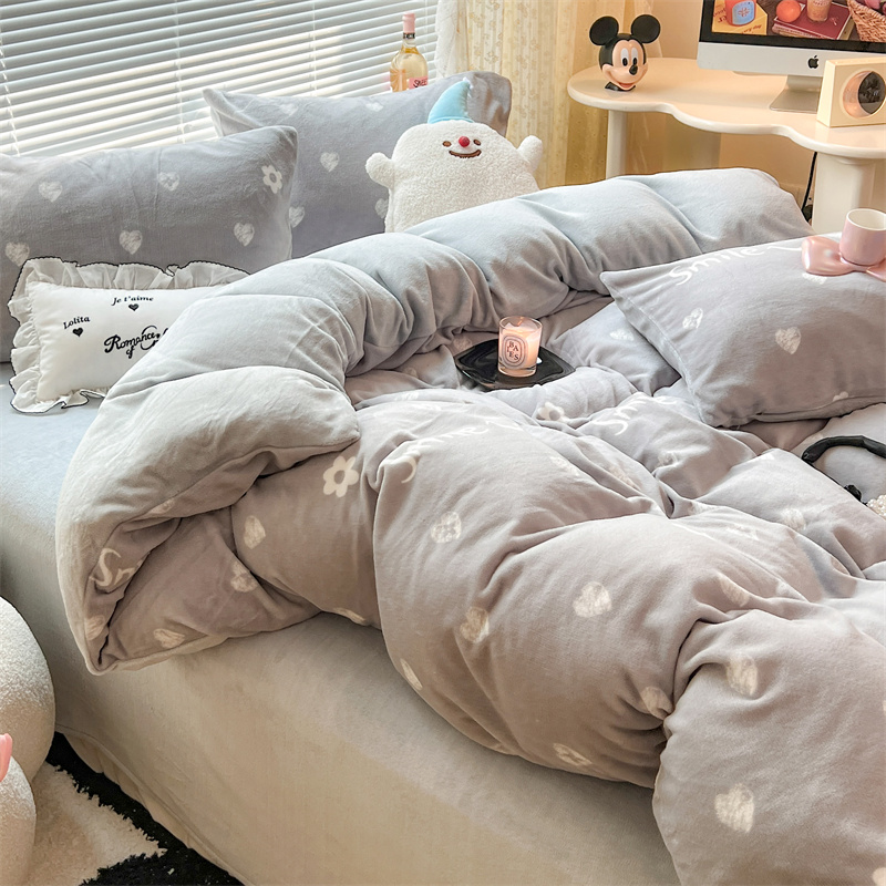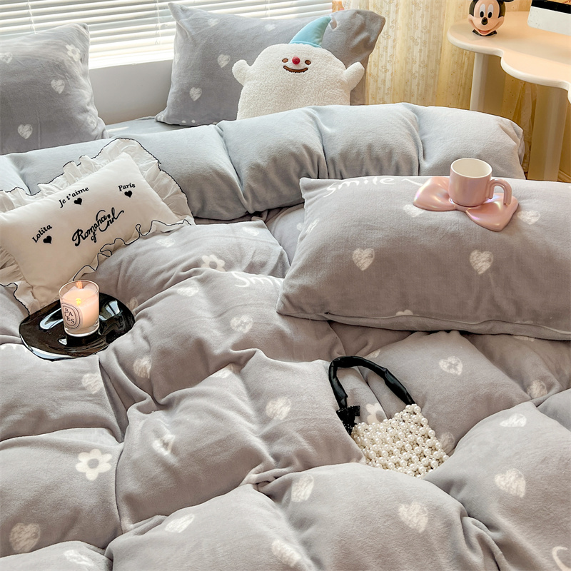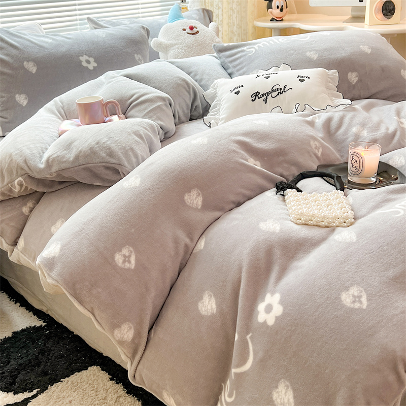 顾里家纺 新款ins少女保暖牛奶绒四件套第二批 笑脸爱心