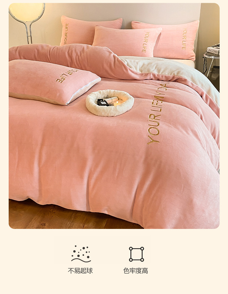 义博 2025新款牛奶绒刺绣四件套-浪漫系列 浪漫-粉白