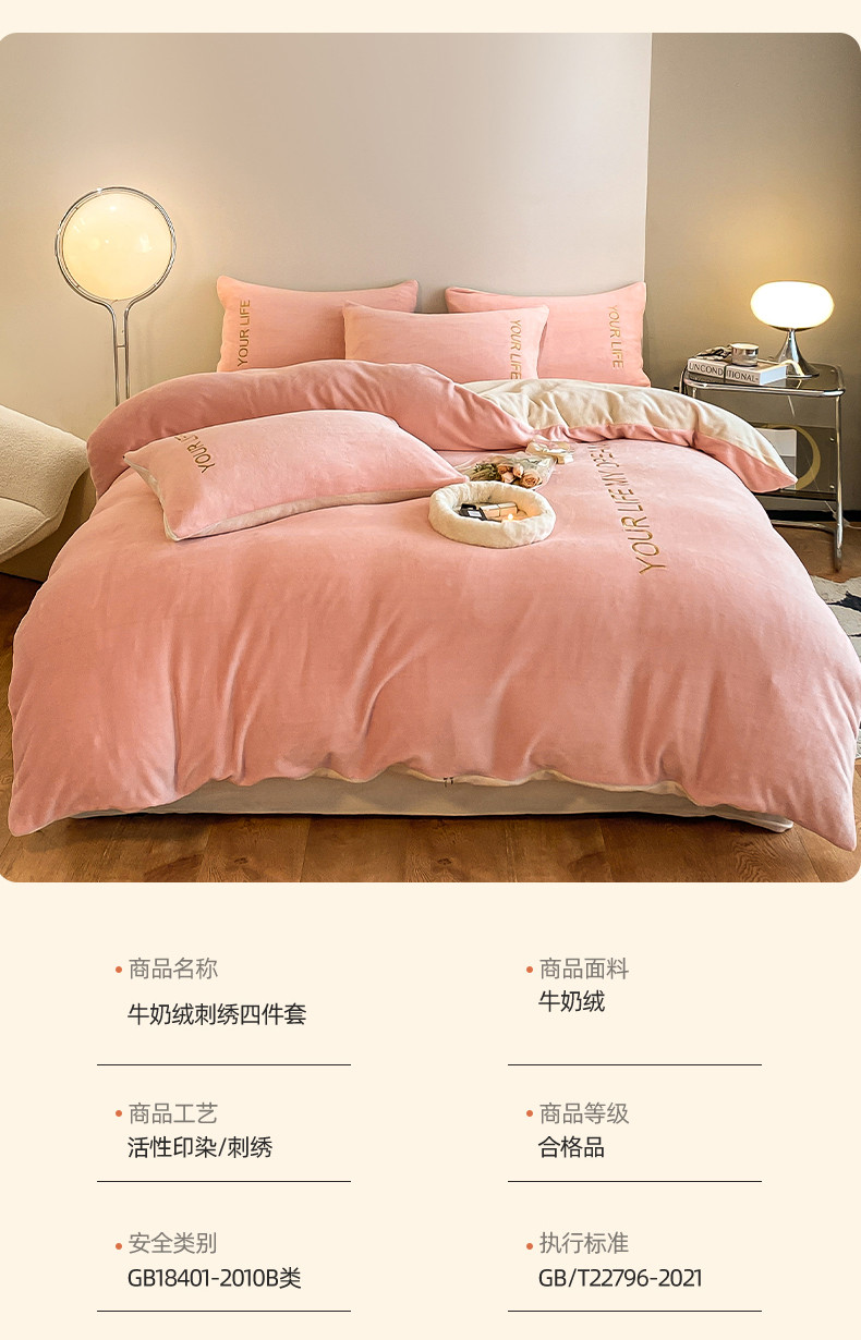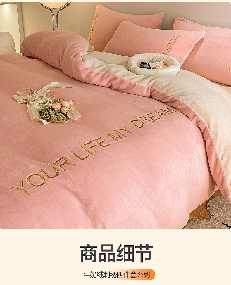 商品名称:义博 2025新款牛奶绒刺绣四件套-浪漫系列 浪漫-粉白