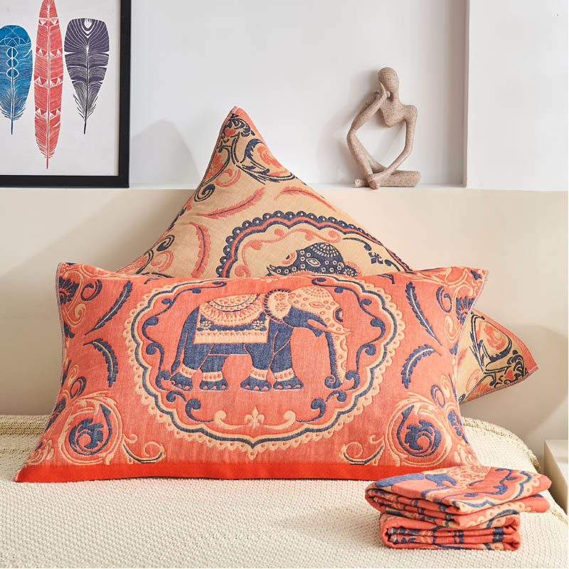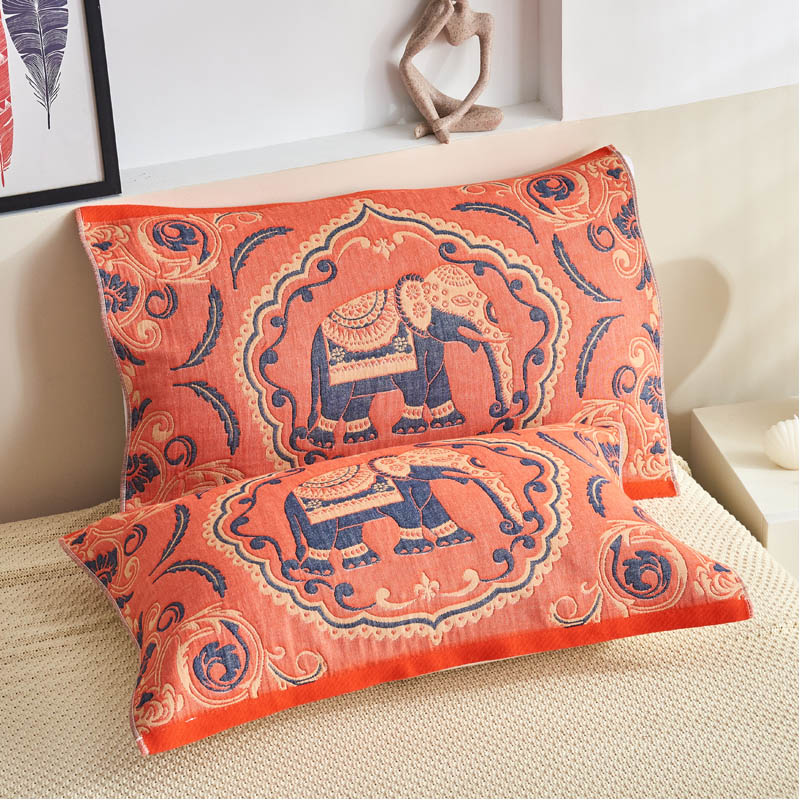 朴尔 2023年民族风彩棉系列四层纱布枕巾 印象派橘