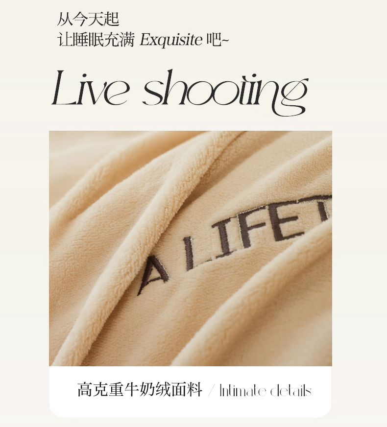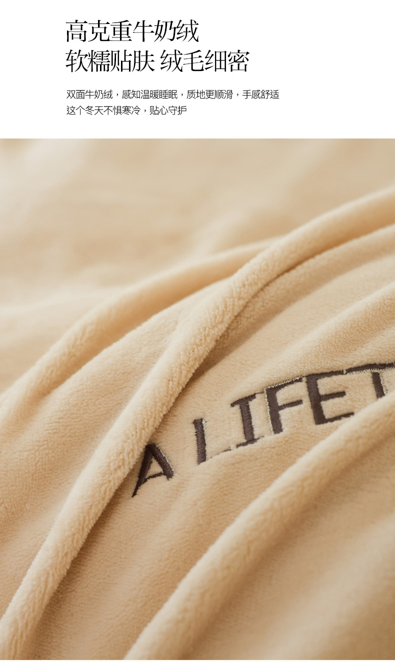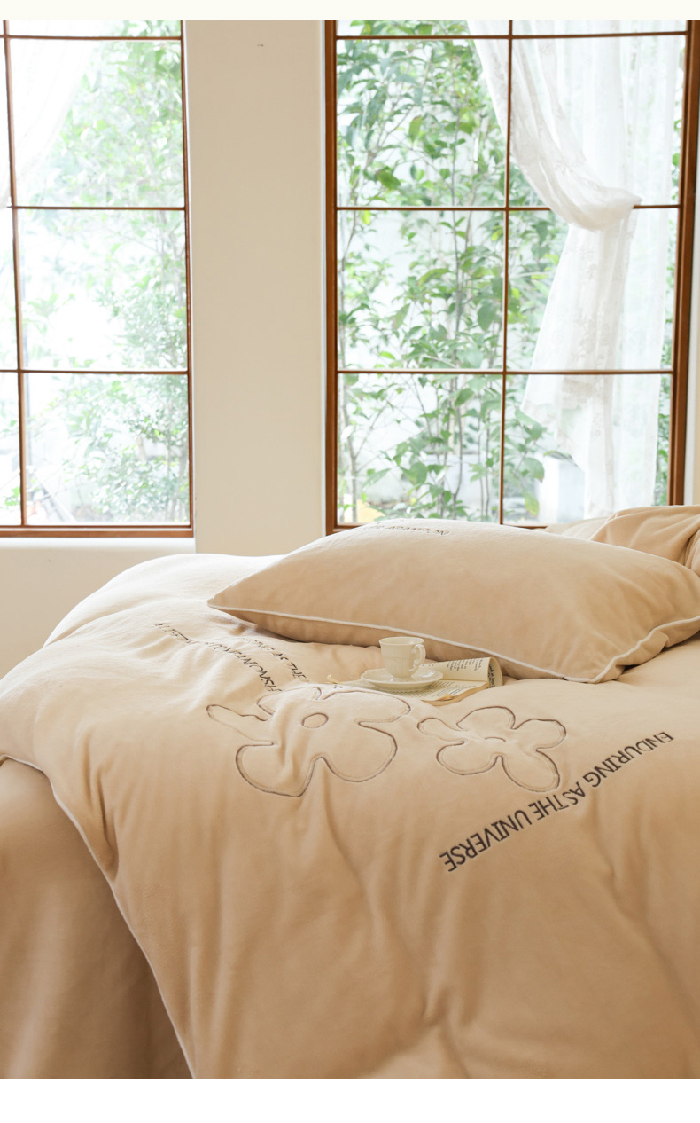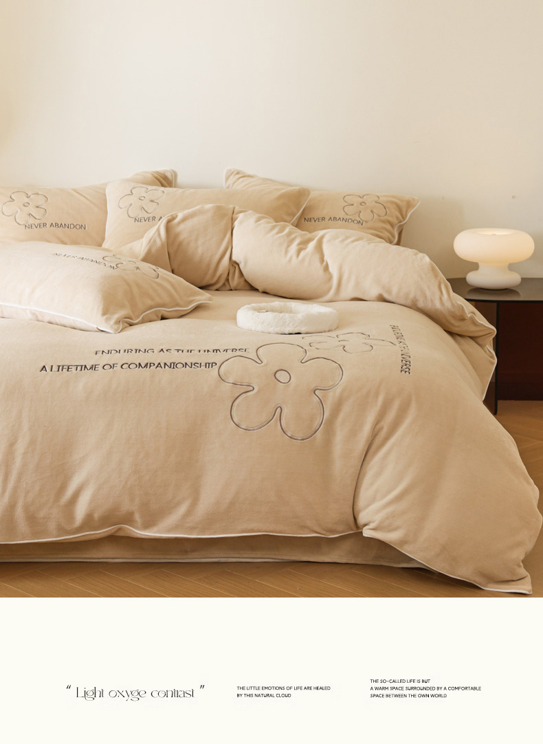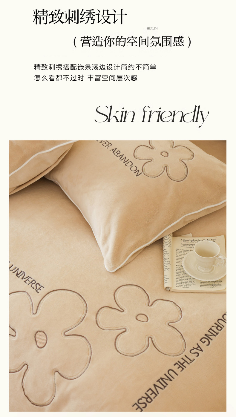 万盛家纺 2025新款牛奶绒简约绣花四件套 杏仁色