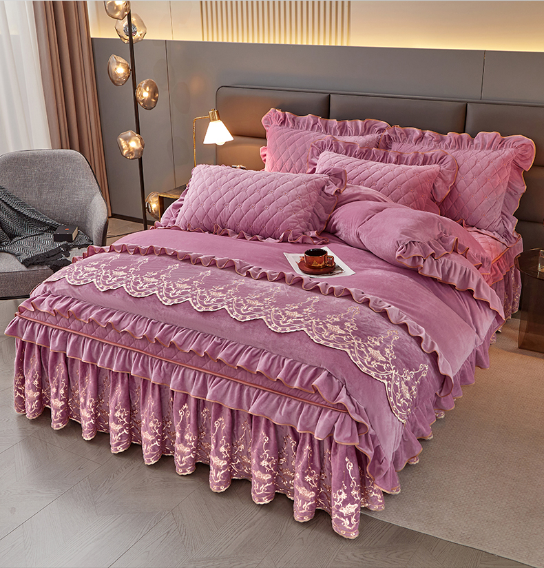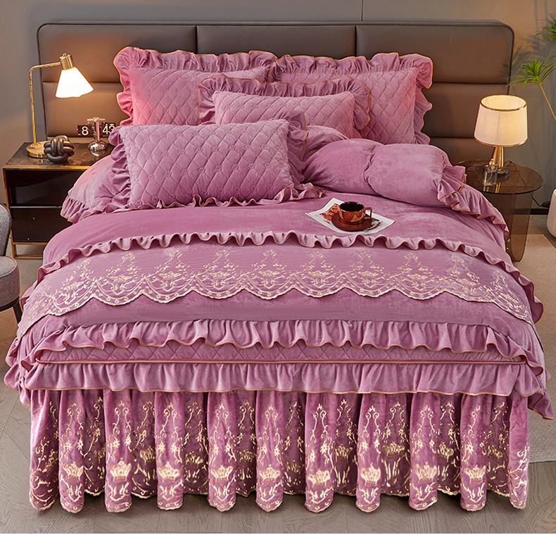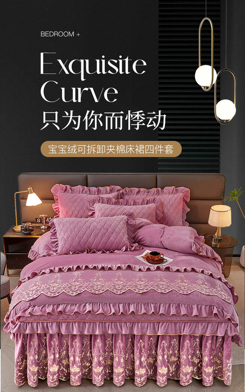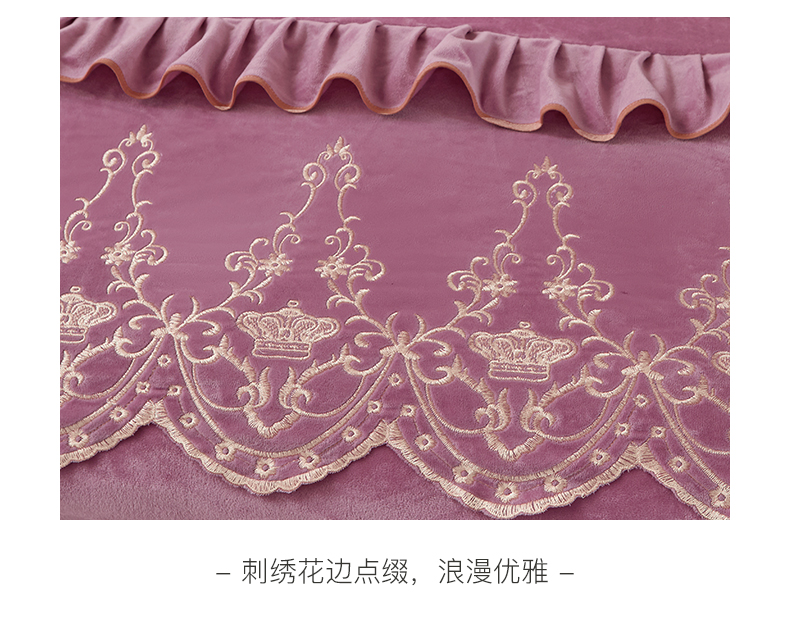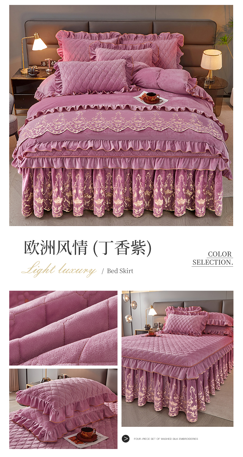 当前位置: 91家纺网 > 商品网购 > 床品套件 > 四件套 > 宝宝绒四件套 > 罗艺轩 2024新款欧洲风情宝宝绒可拆卸夹棉床裙四件套 丁香紫