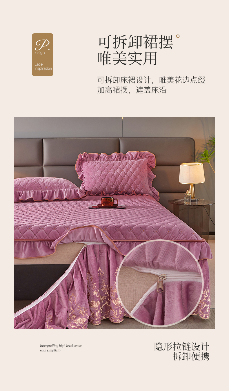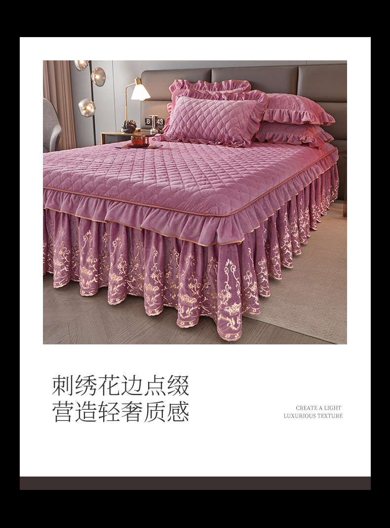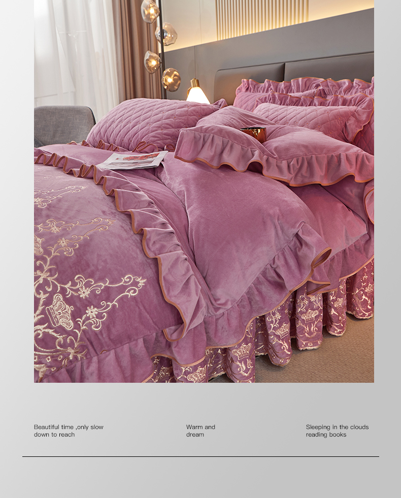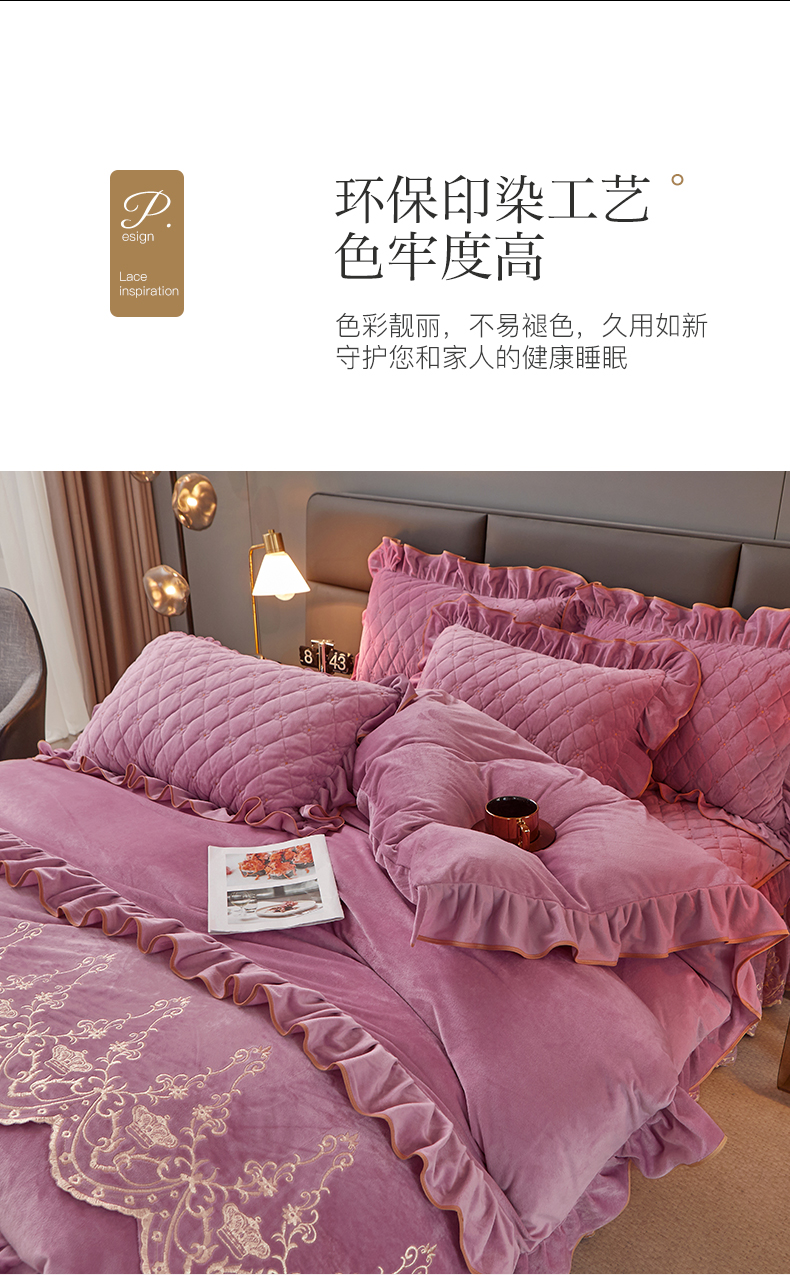 当前位置: 91家纺网 > 商品网购 > 床品套件 > 四件套 > 宝宝绒四件套 > 罗艺轩 2024新款欧洲风情宝宝绒可拆卸夹棉床裙四件套 丁香紫