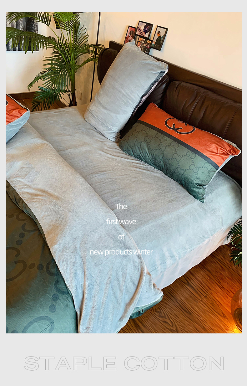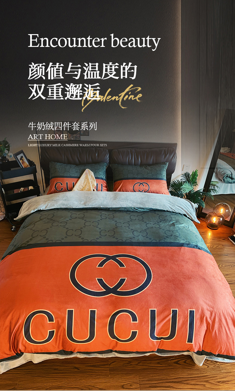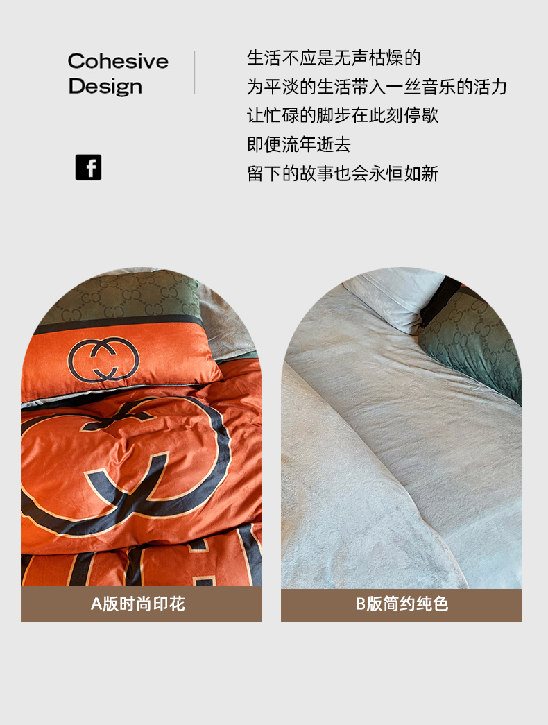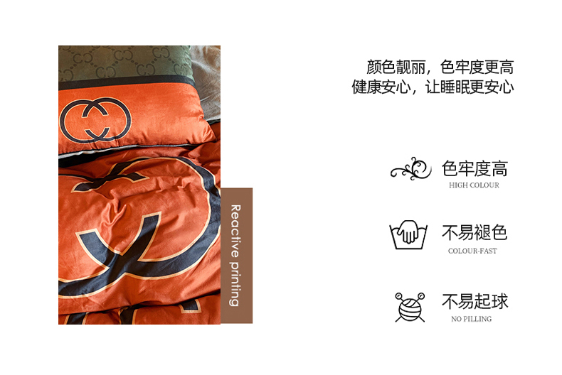 商品名称:色鬼 2023新款潮牌印花牛奶绒四件套直播 橘朵