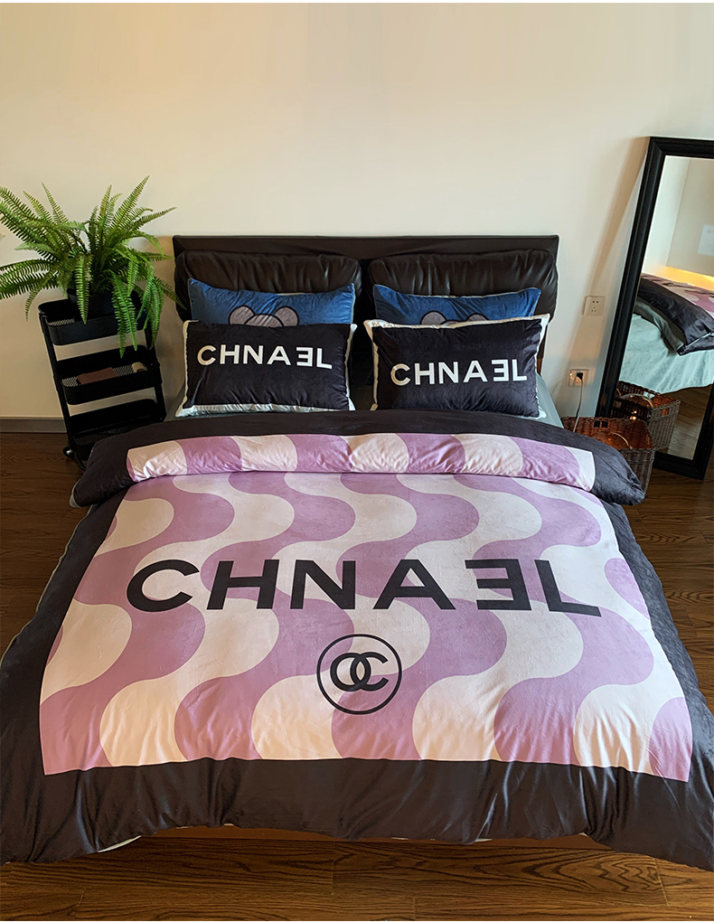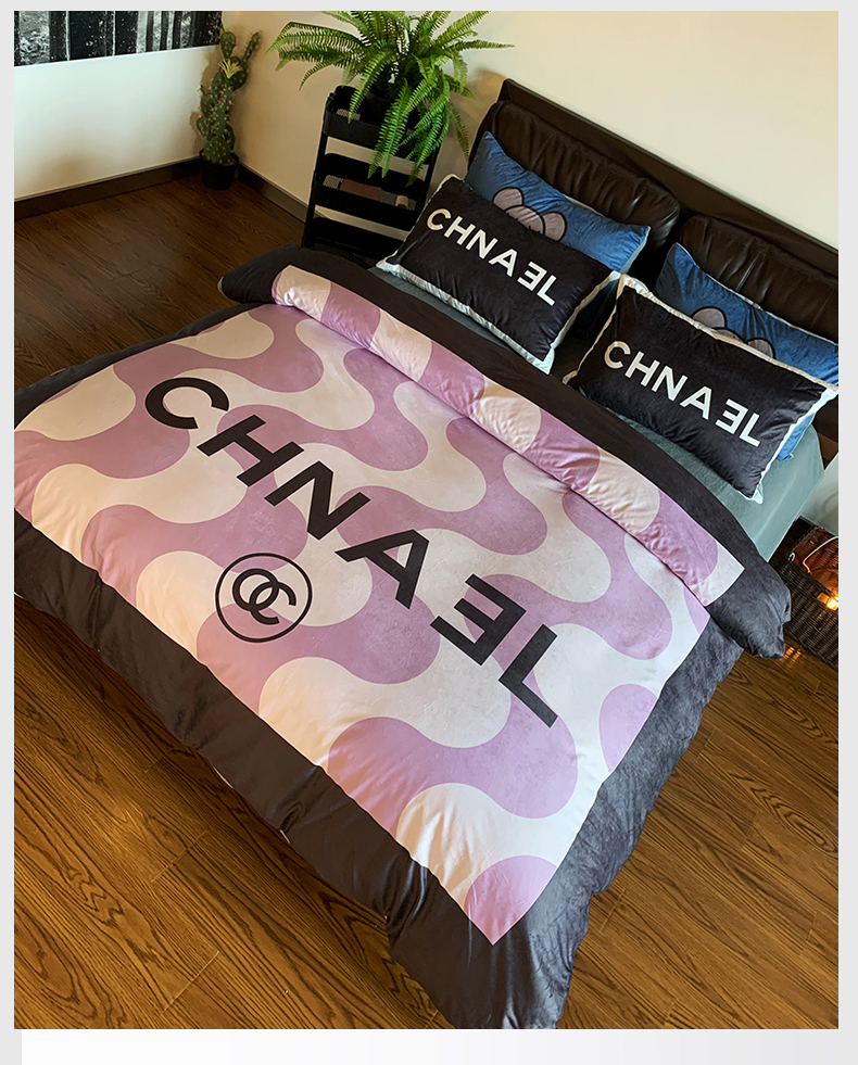 色鬼 2023新款潮牌印花牛奶绒四件套直播 紫藤