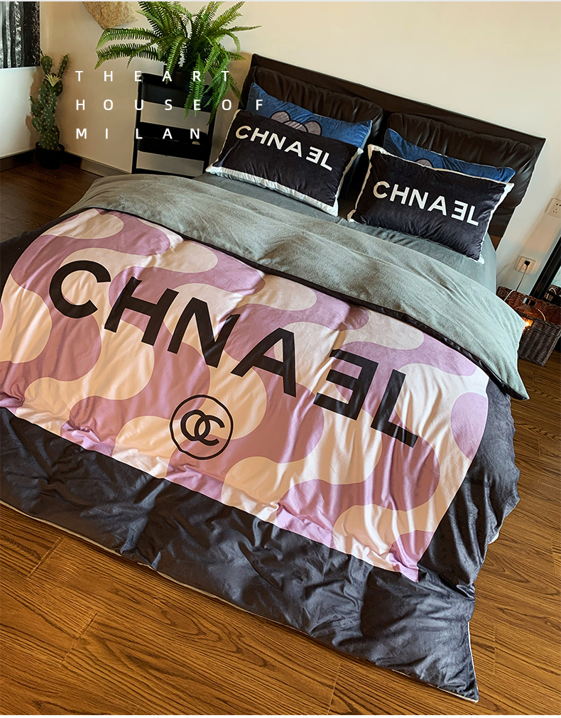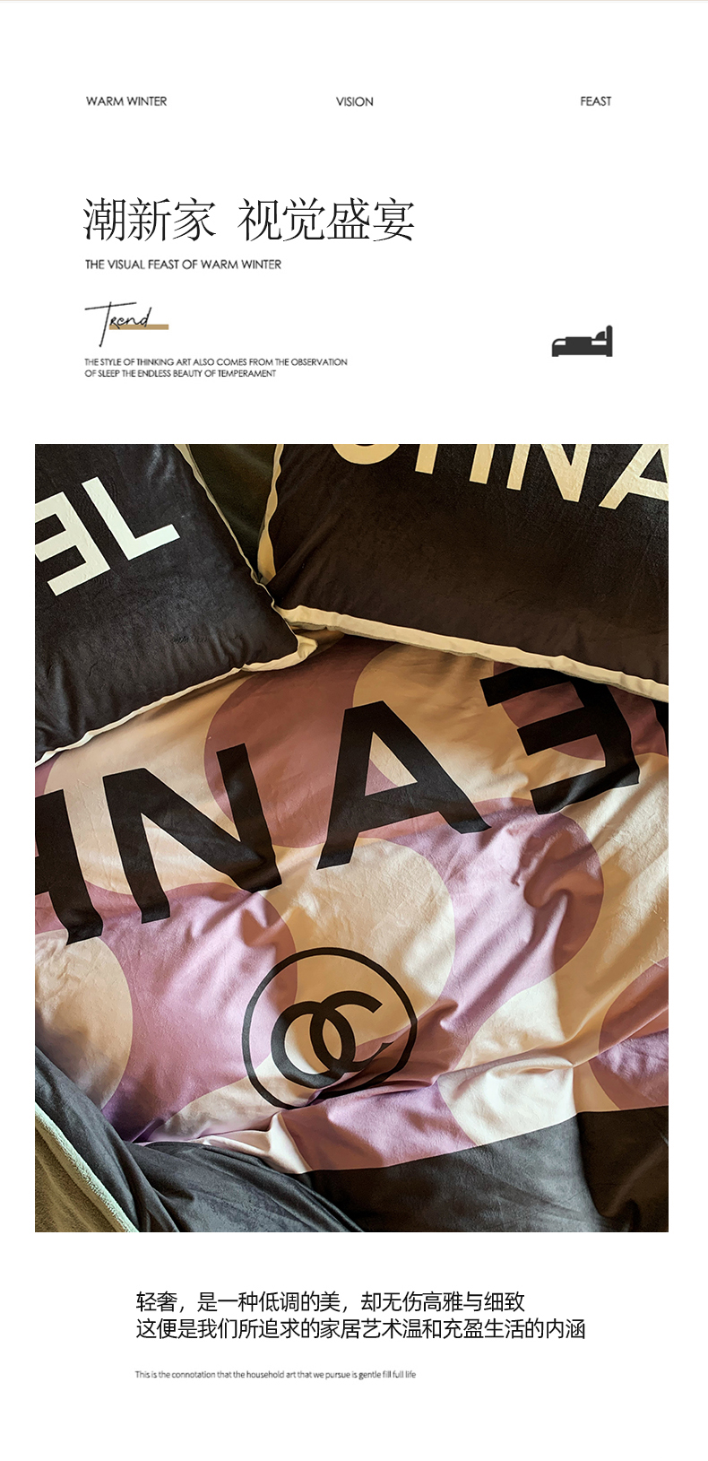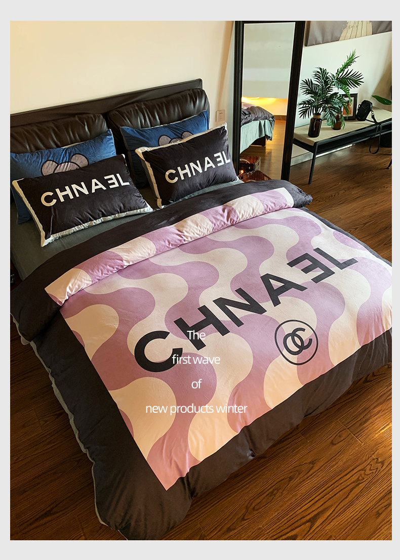 商品名称:色鬼 2023新款潮牌印花牛奶绒四件套直播 紫藤