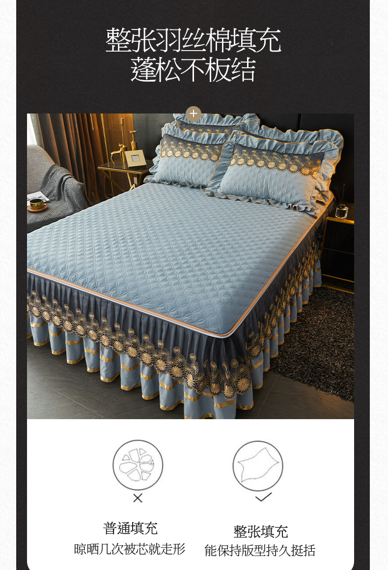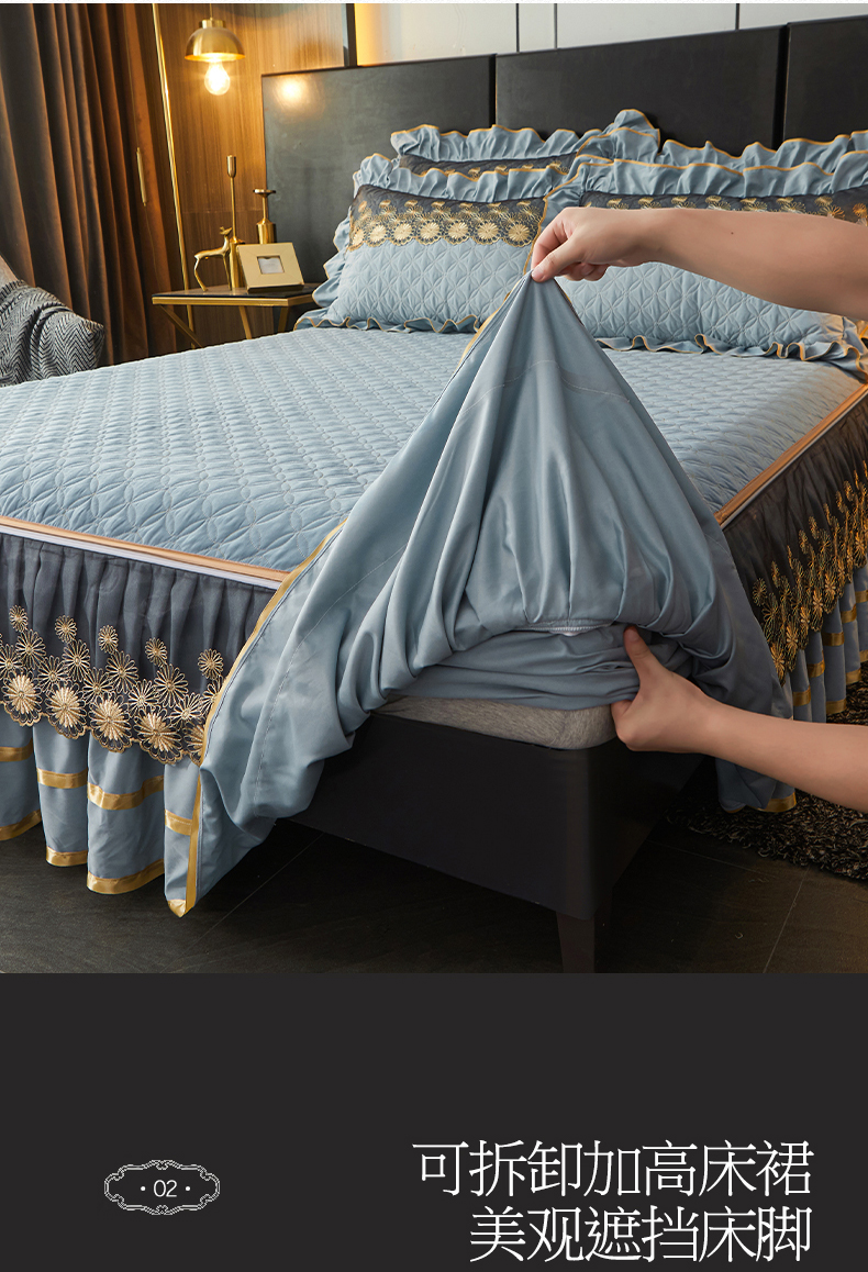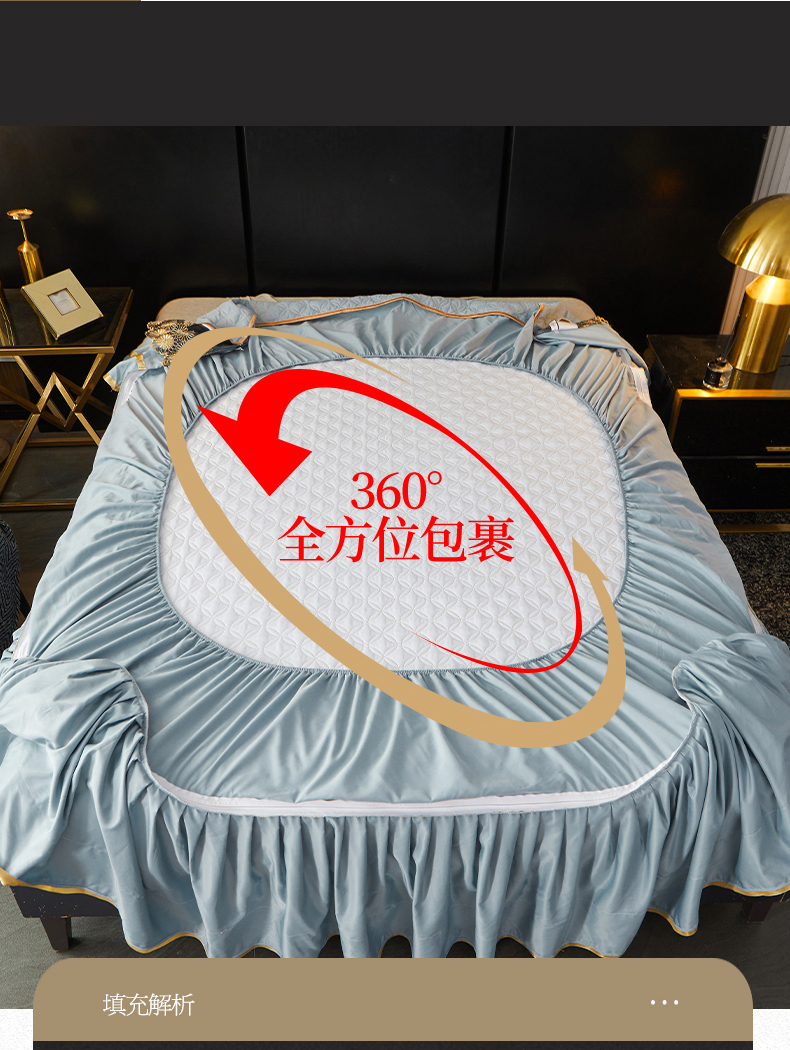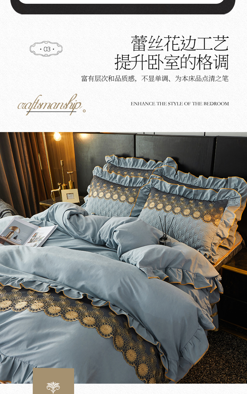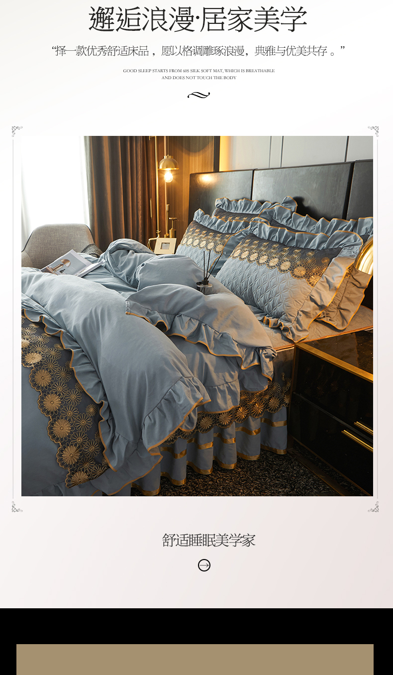 当前位置: 91家纺网 > 商品网购 > 床品套件 > 四件套 > 化纤普通四件套 > 罗艺轩 2024新款A类蛋白棉夹棉床裙四件套-品味人生 品味人生-湖蓝