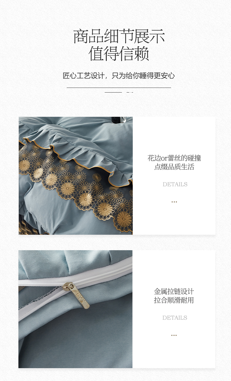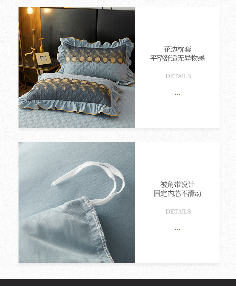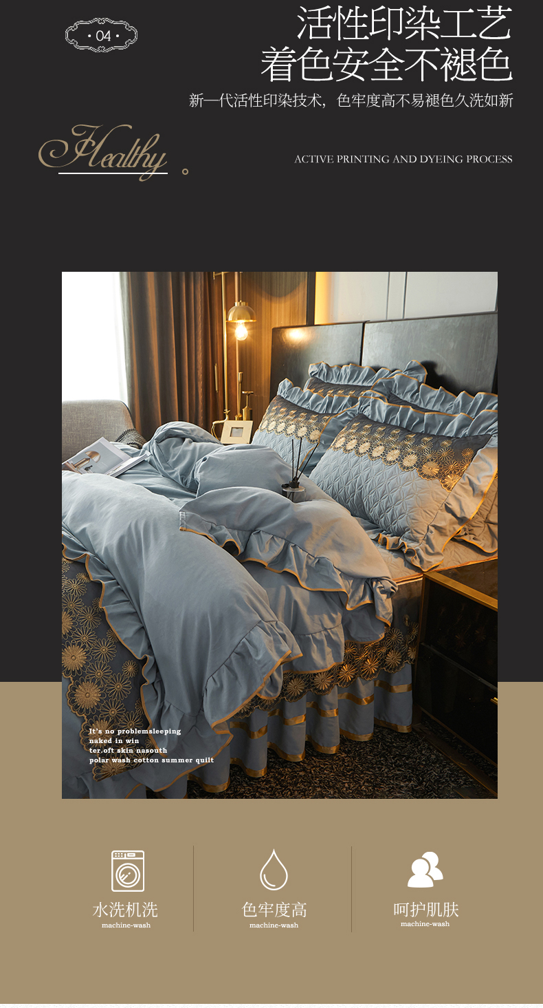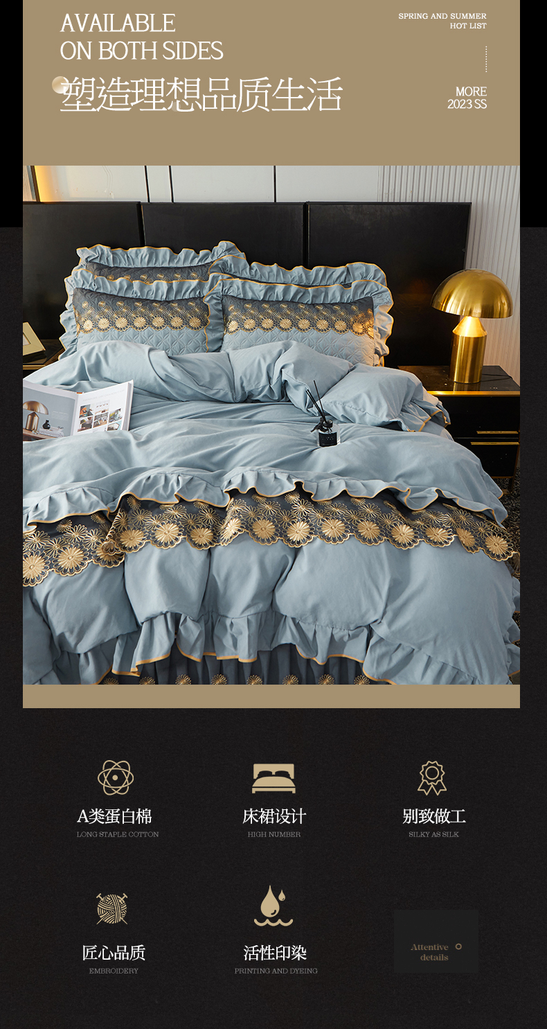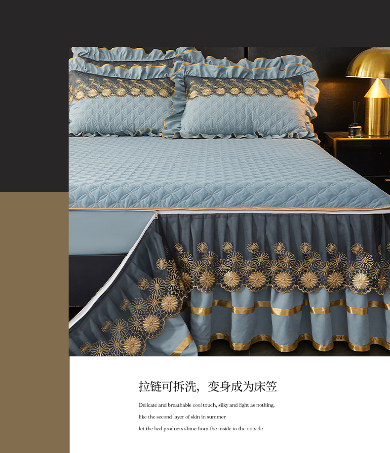 当前位置: 91家纺网 > 商品网购 > 床品套件 > 四件套 > 化纤普通四件套 > 罗艺轩 2024新款A类蛋白棉夹棉床裙四件套-品味人生 品味人生-湖蓝