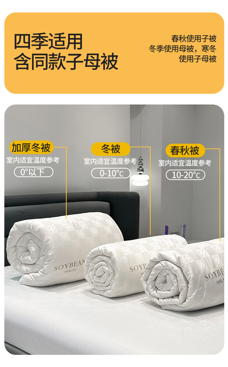 • 填充纤维种类: 大豆蛋白改性聚酯纤维